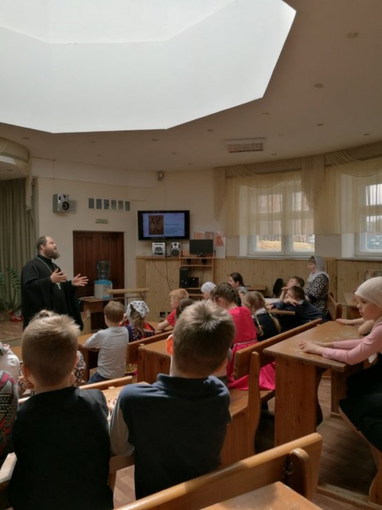 После беседы со священником детям был продемонстрирован документальный фильм телеканала «Союз» «Петровом пост», просмотр которого был подготовлен школьным библиотекарем Набоковой Ларисой Витальевной.