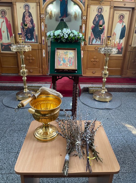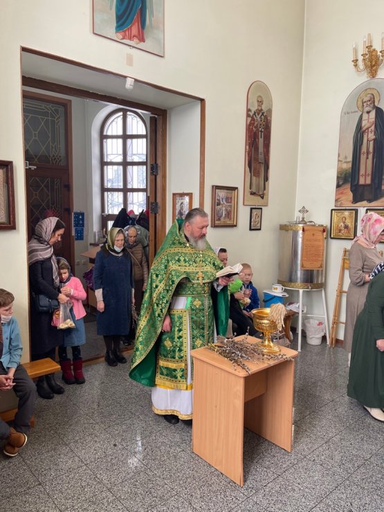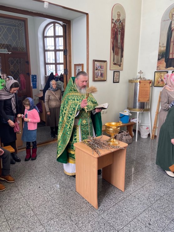 В это светлое воскресное утро, после Таинства Причастия, отец Константин совершил традиционное освящение вербных ветвей.