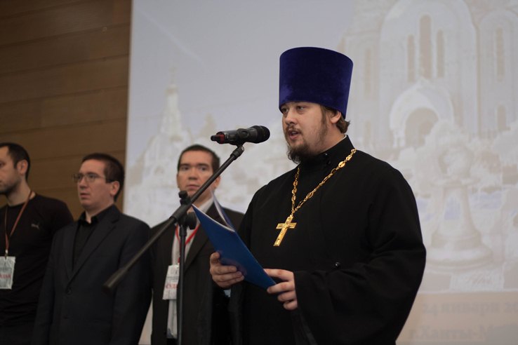Председатель отдела социального служения и благотворительности Ханты-Мансийской епархии иерей Леонид Бартков поздравил всех с рождественским праздником и передал послание митрополита Ханты-Мансийского и Сургутского Павла участникам шахматного турнира.