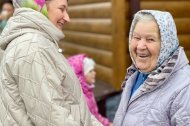 После богослужения в преддверии Международного дня пожилого человека волонтерами Православного гуманитарного центра «Твори Добро» и сестрами милосердия Православного сестричества г. Ханты-Мансийска на территории храма было организовано чаепитие с пирогами, ватрушками и сладостями.