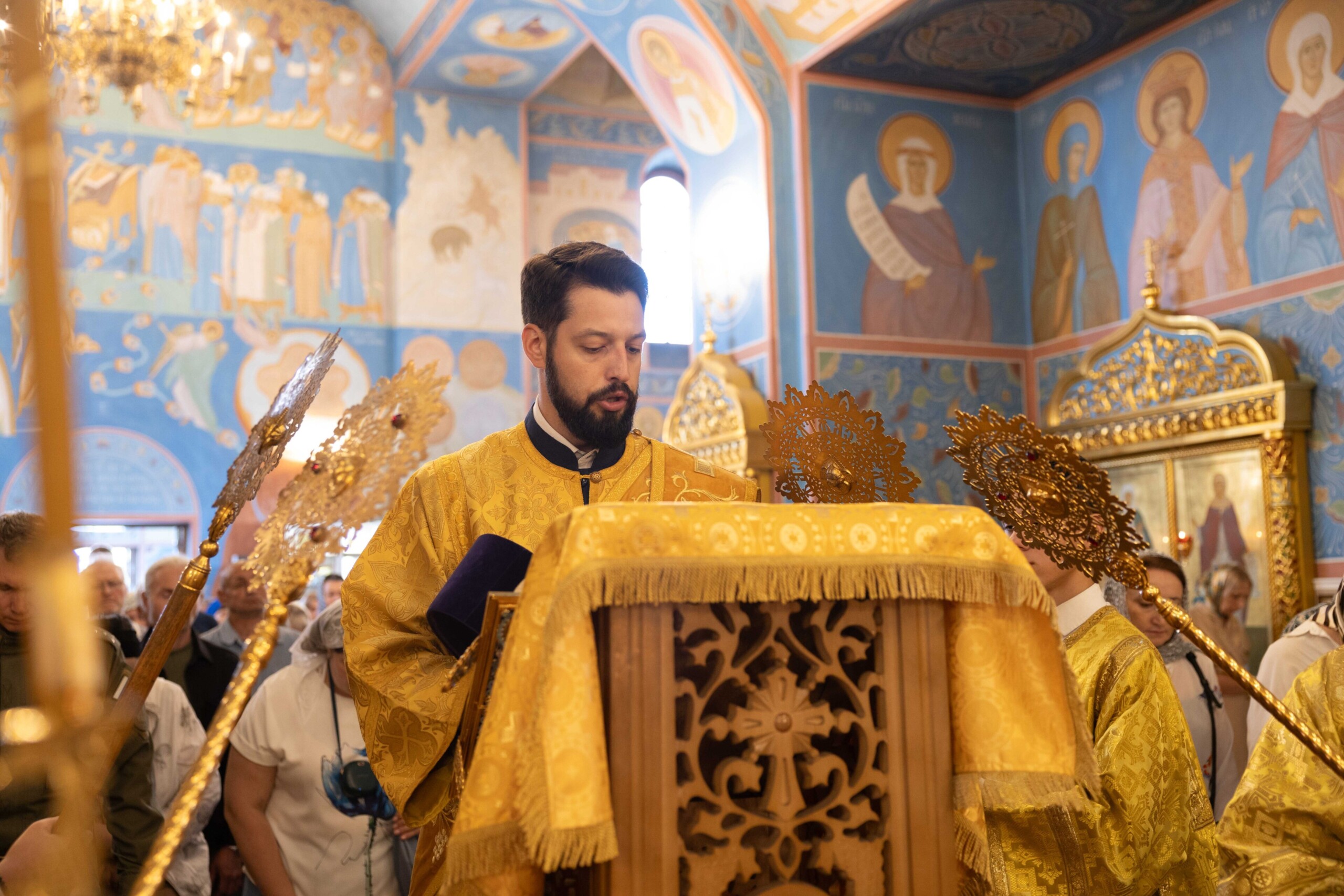д) наблюдает за течением епархиальной жизни;
