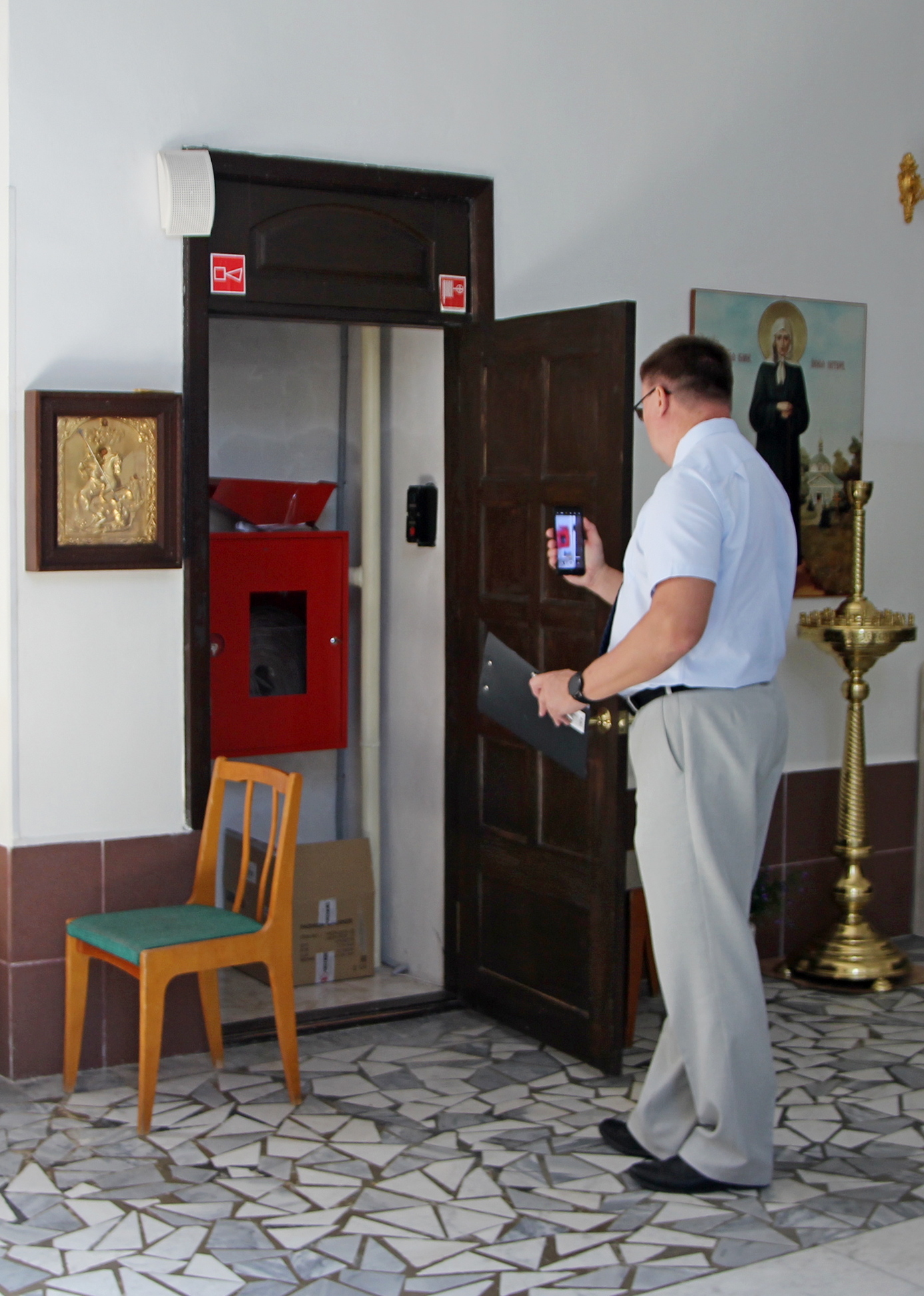 Именно с этой целью Приход и надзорные организации ежегодно проводят проверки готовности проведения мероприятий с массовым присутствием людей. Татьяна Николаевна вместе с настоятелем Прихода иереем Иоанном Дарием и ответственными за соблюдение норм ТБ проверили помещения, эвакуационные пути и выходы на их соответствие требованиям пожарной безопасности, убедились в наличии и исправности первичных средств пожаротушения, связи и пожарной сигнализации, проведена тренировочная эвакуация.