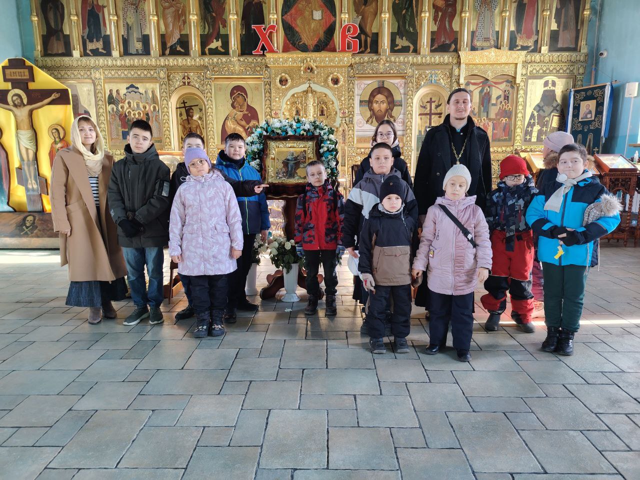 Особым, благодатным событием стало посещение одного из древнейших храмов Югорской земли — храма Покрова Божией Матери. Его история уходит корнями в 1640 год! Ребята с трепетом приложились к великим святыням, которые бережно хранятся здесь: