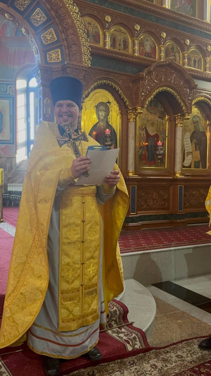 Богослужение возглавил благочинный Лангепасского благочиния иерей Евгений Чебыкин, в сослужении настоятеля храма иерея Димитрия Галицкого и клирика Прихода храма в честь великомученика Феодора Стратилата пгт. Федоровский иерея Богдана Черныша.