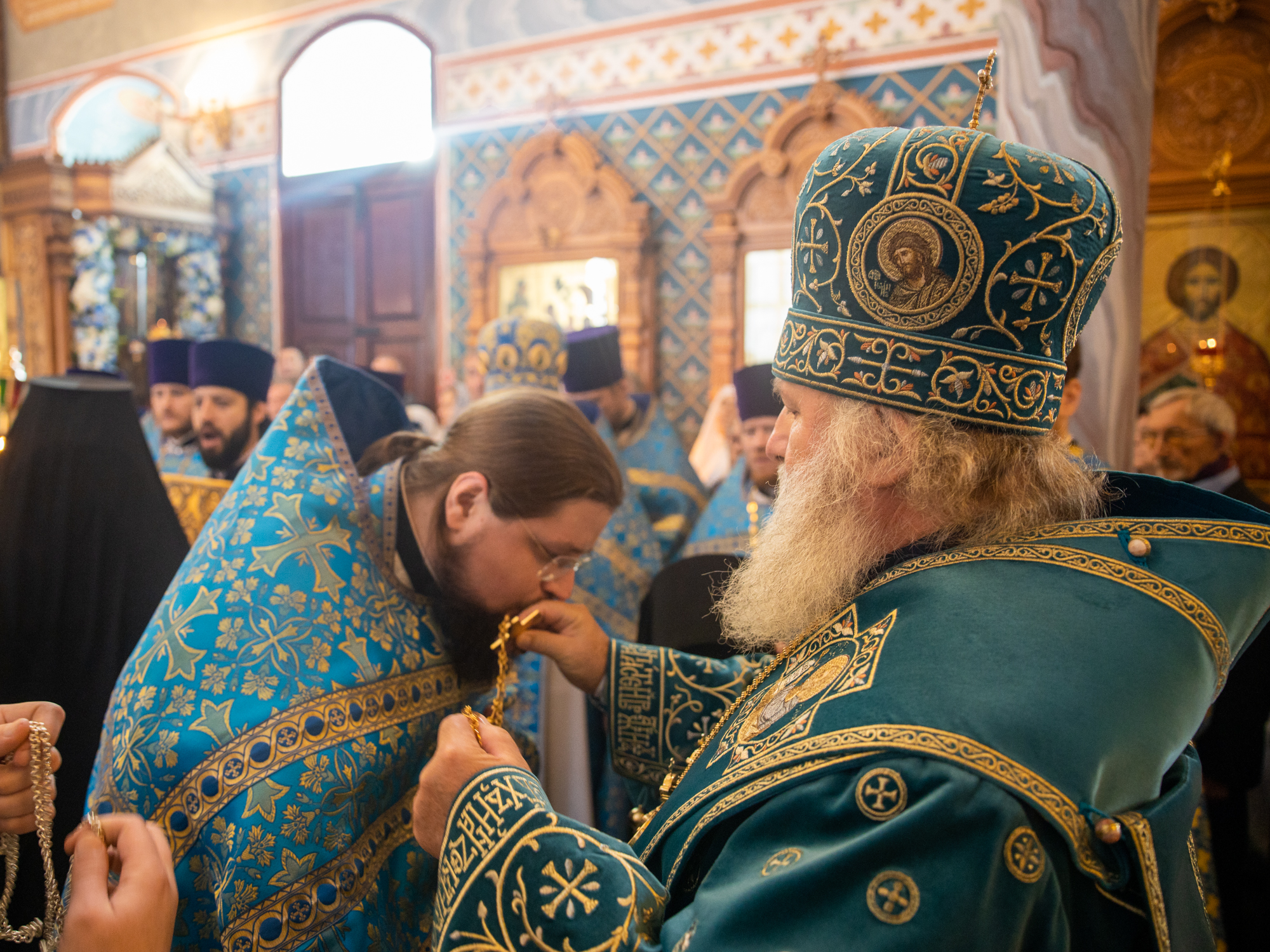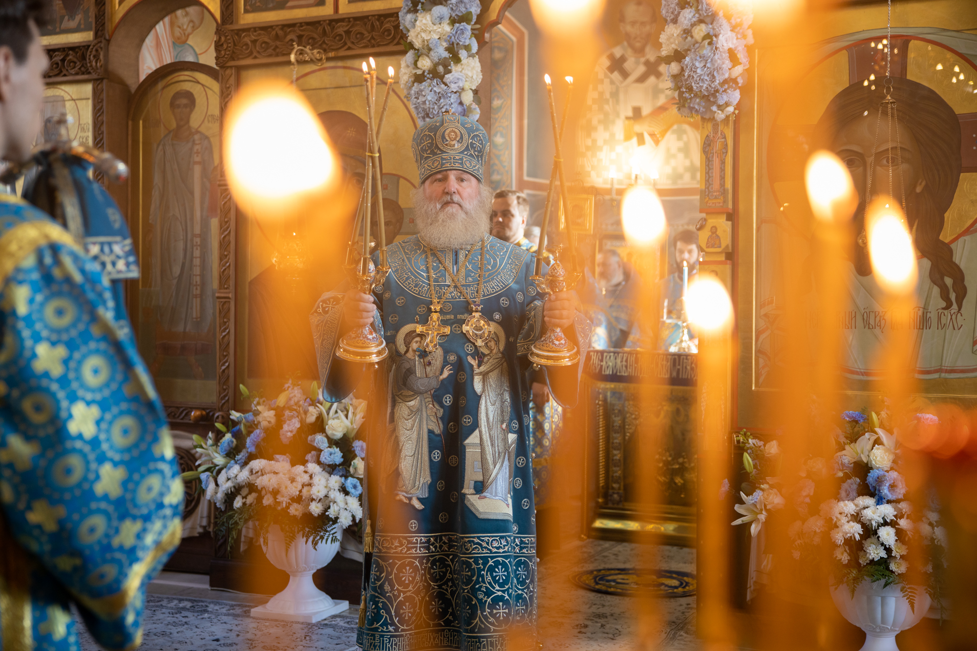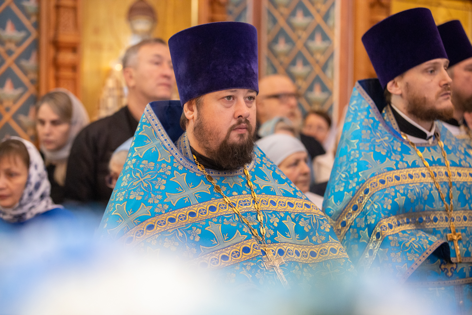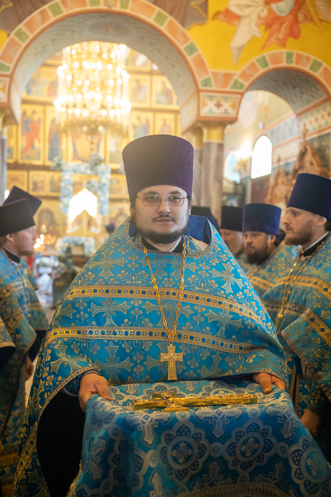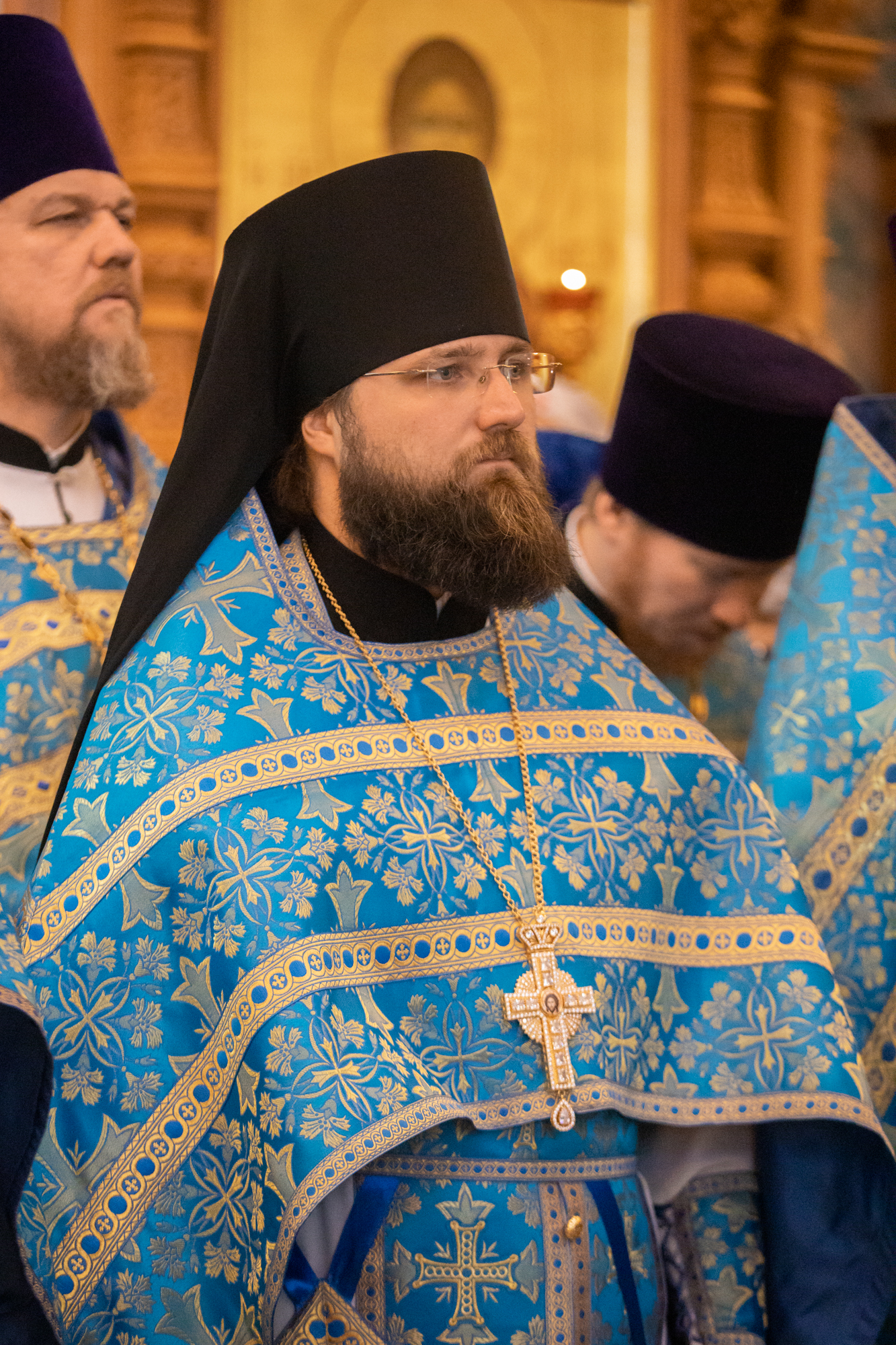 Его Высокопреосвященству сослужили: секретарь Ханты-Мансийской епархии игумен Антоний (Кирпичев), секретарь Югорской епархии иерей Николай Щерба, настоятель храм в честь Рождества Пресвятой Богородицы г. Урай протоиерей Иоанн Юрцун, настоятель храма иерей Леонид Бартков, духовенство города Ханты-Мансийска. Диаконский чин возглавил диакон Даниил Матвеев.