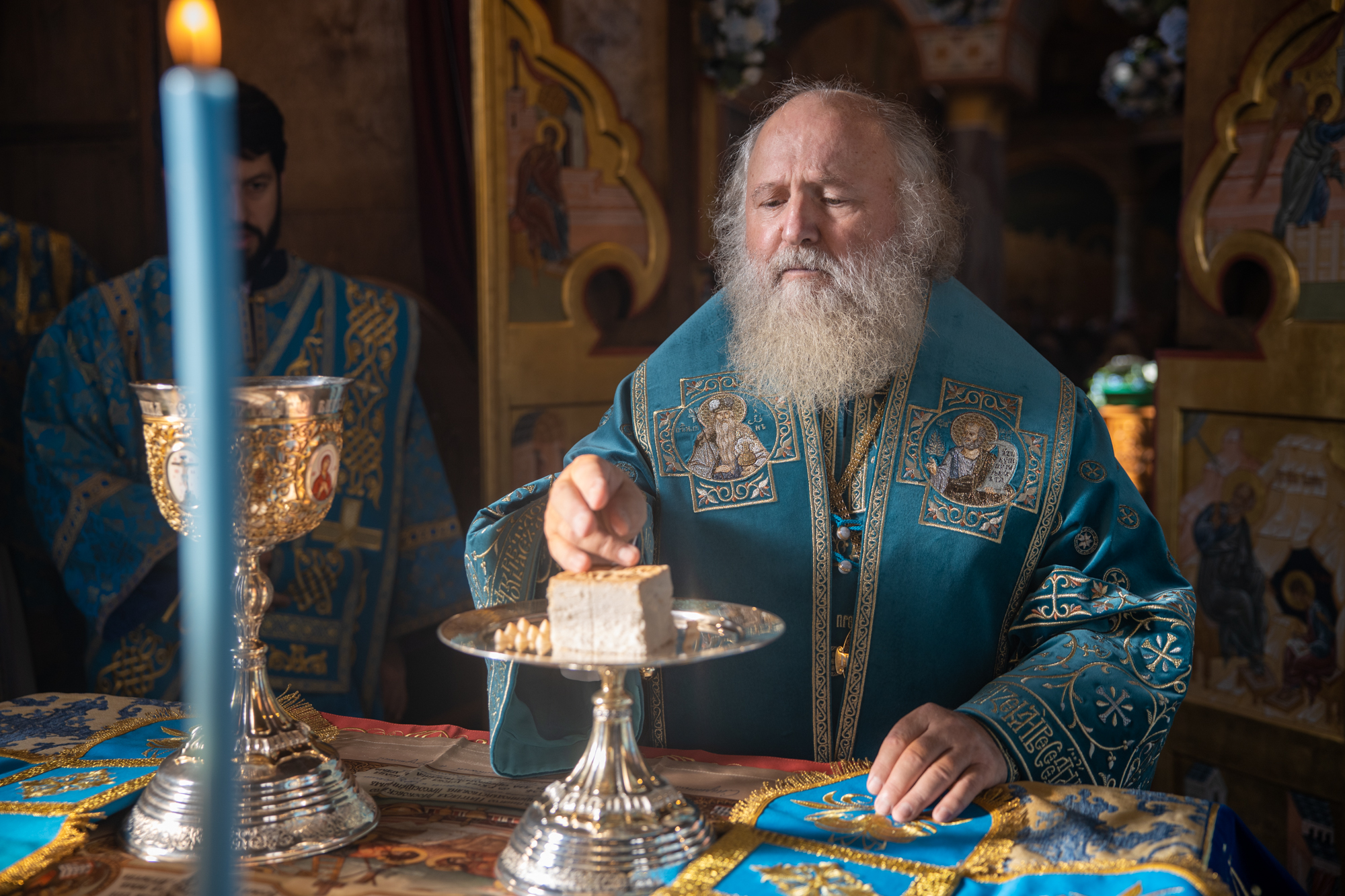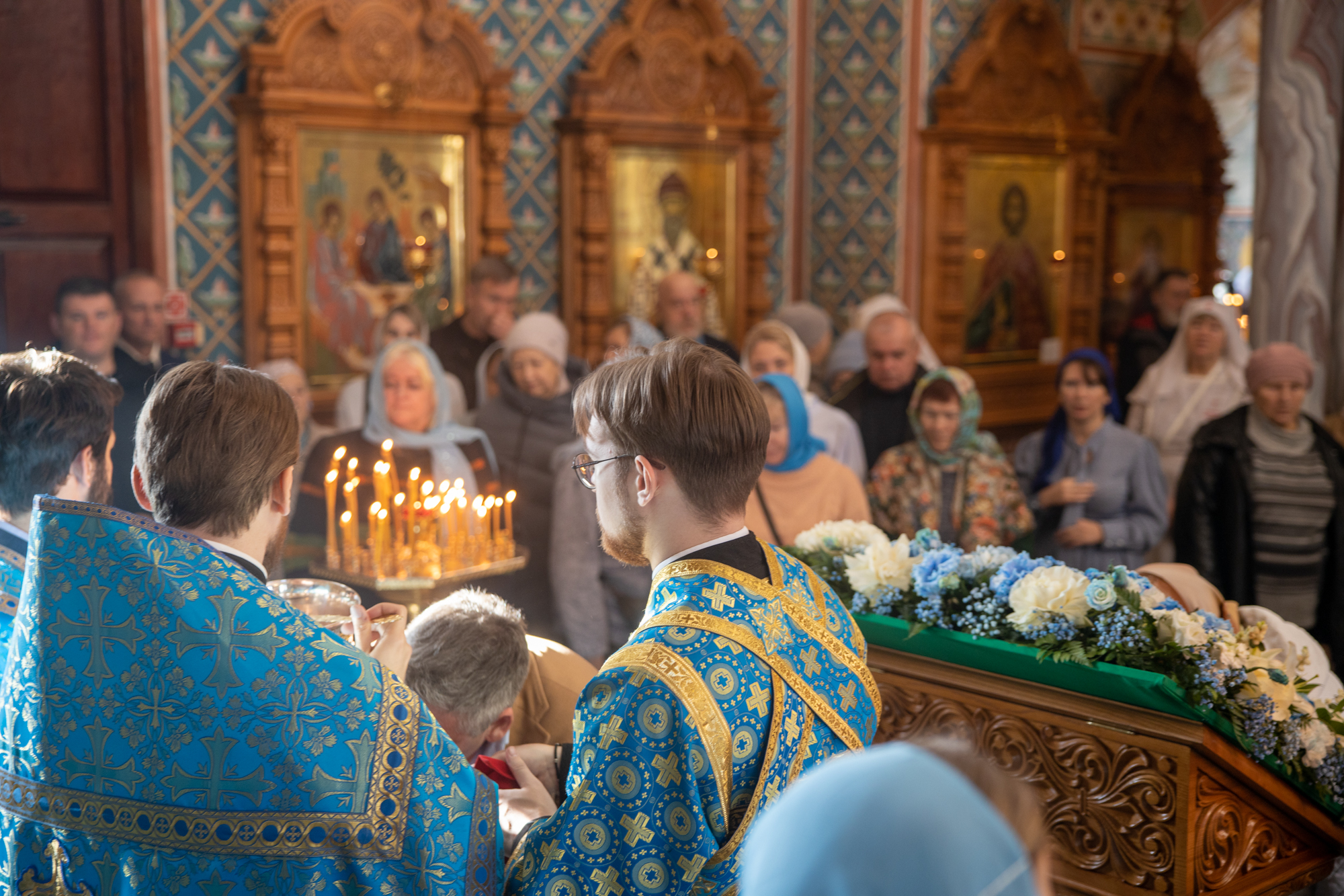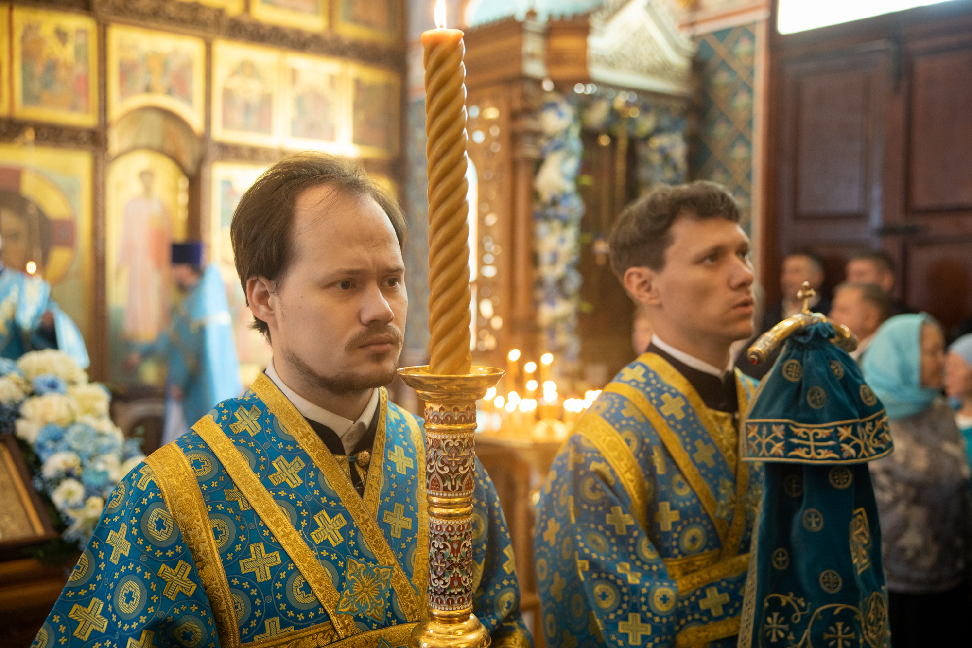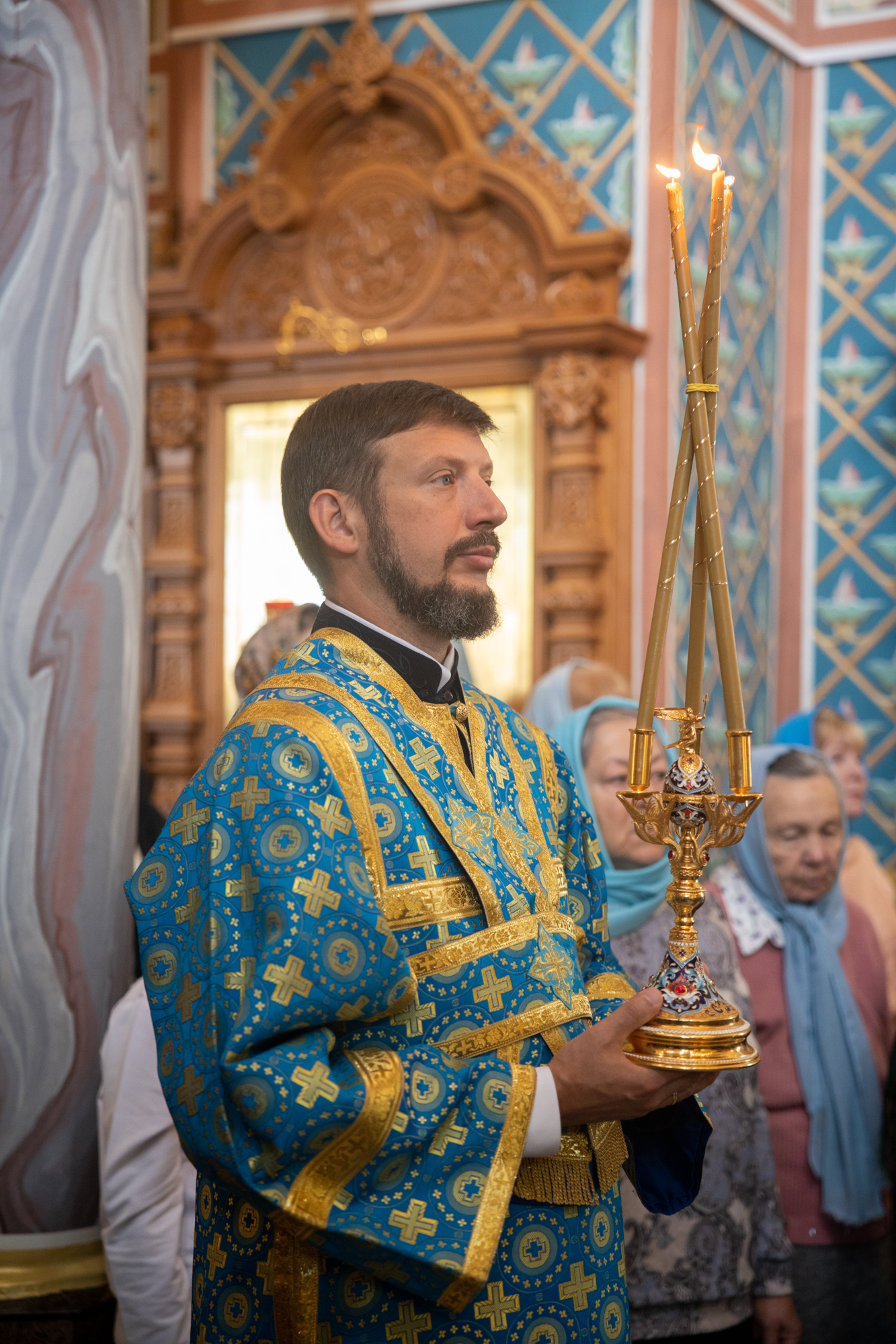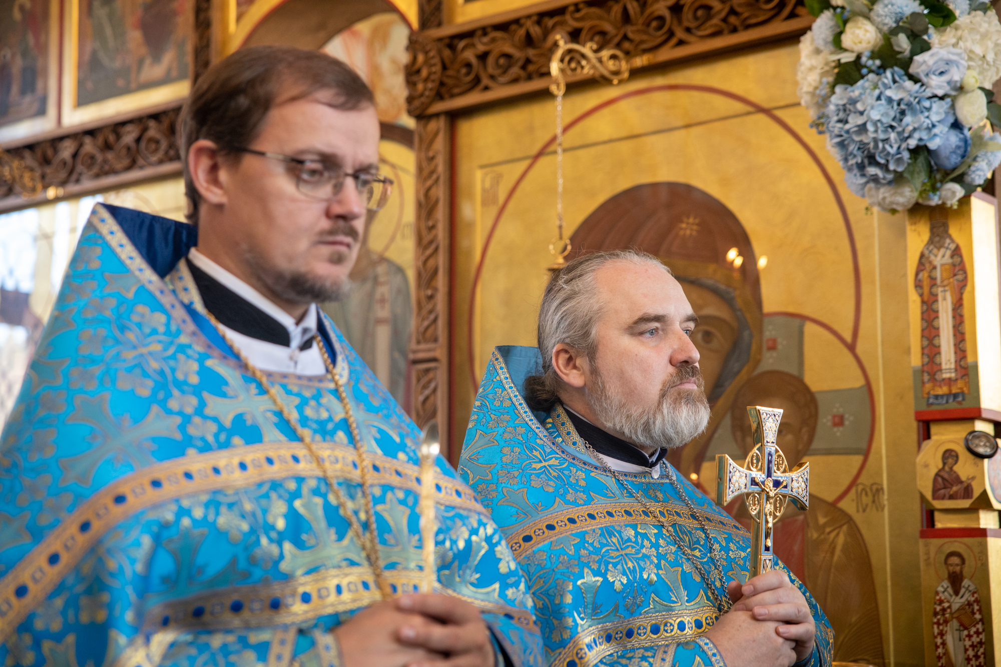 Его Высокопреосвященству сослужили: секретарь Ханты-Мансийской епархии игумен Антоний (Кирпичев), секретарь Югорской епархии иерей Николай Щерба, настоятель храм в честь Рождества Пресвятой Богородицы г. Урай протоиерей Иоанн Юрцун, настоятель храма иерей Леонид Бартков, духовенство города Ханты-Мансийска. Диаконский чин возглавил диакон Даниил Матвеев.