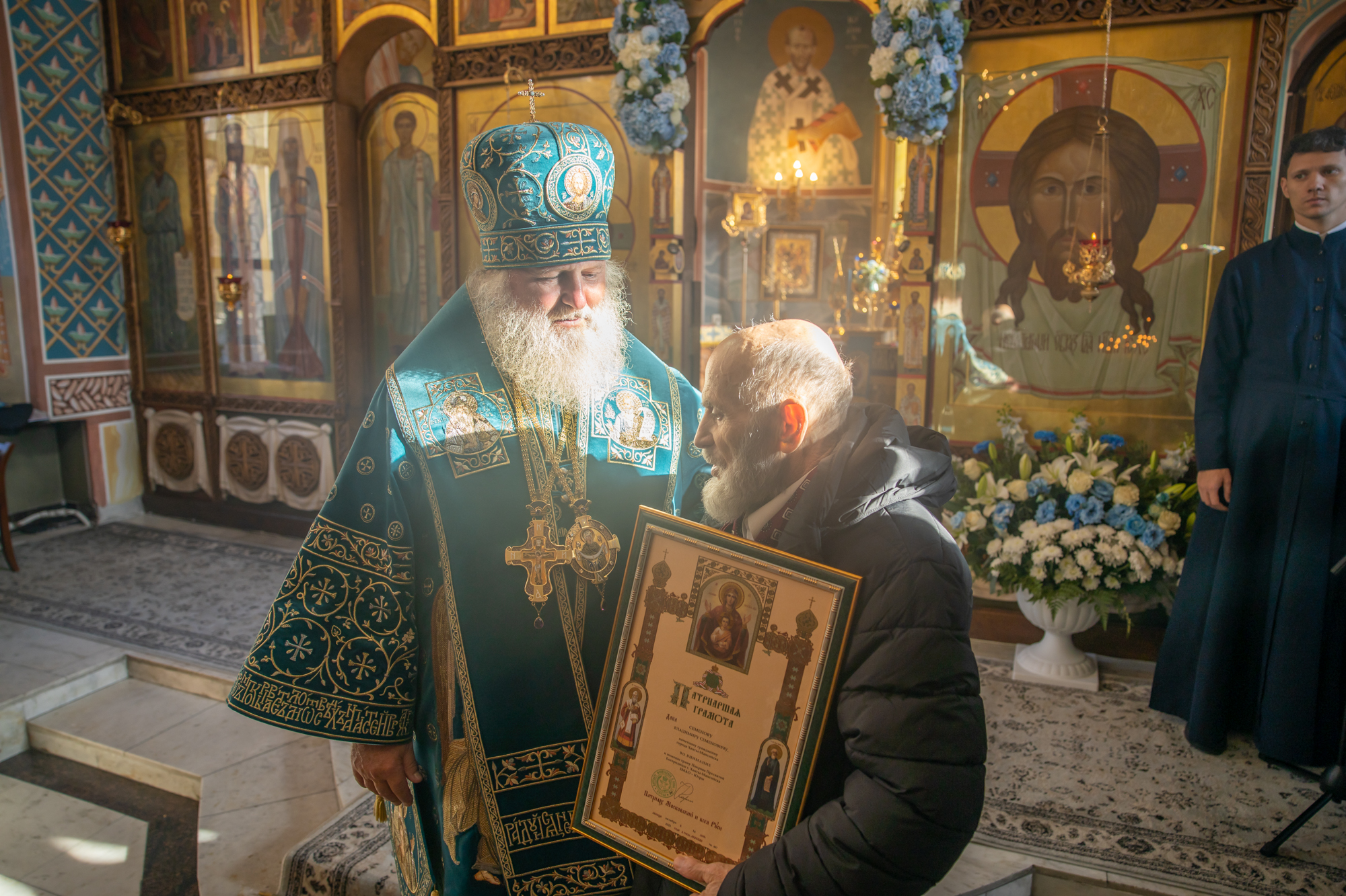 «Дорогие отцы, братья и сестры, позвольте от сердца души поблагодарить всех за общие молитвы и поздравить с престольным днём! Сегодня мы отмечаем память иконы Божьей Матери «Знамение». Храму, который посвящен Царице Небесной, исполнилось 30 лет со дня образования. Я всех сердечно поздравляю с этим юбилеем, с праздником Царицы Небесной. Хотел в знак нашего сегодняшнего богослужения, подарить Евангелие для этого храма на молитвенную память!»