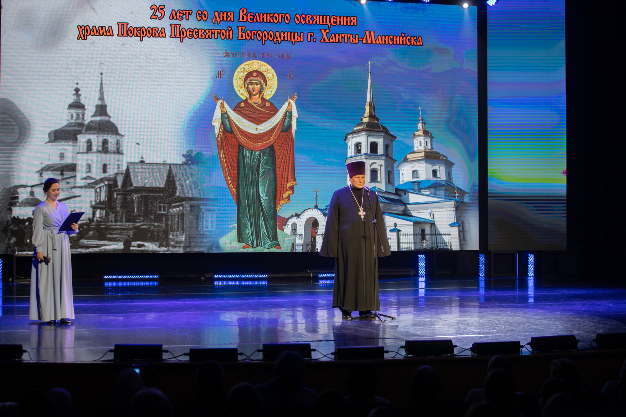 «Многоуважаемый Руслан Николаевич, дорогие отцы, братья и сестры, мы собрались сегодня в святом этом храме, чтобы поблагодарить Господа Бога за все Его благодеяния нашей земле. Сегодня мы отмечаем день образования нашего автономного округа, день рождения Югры.