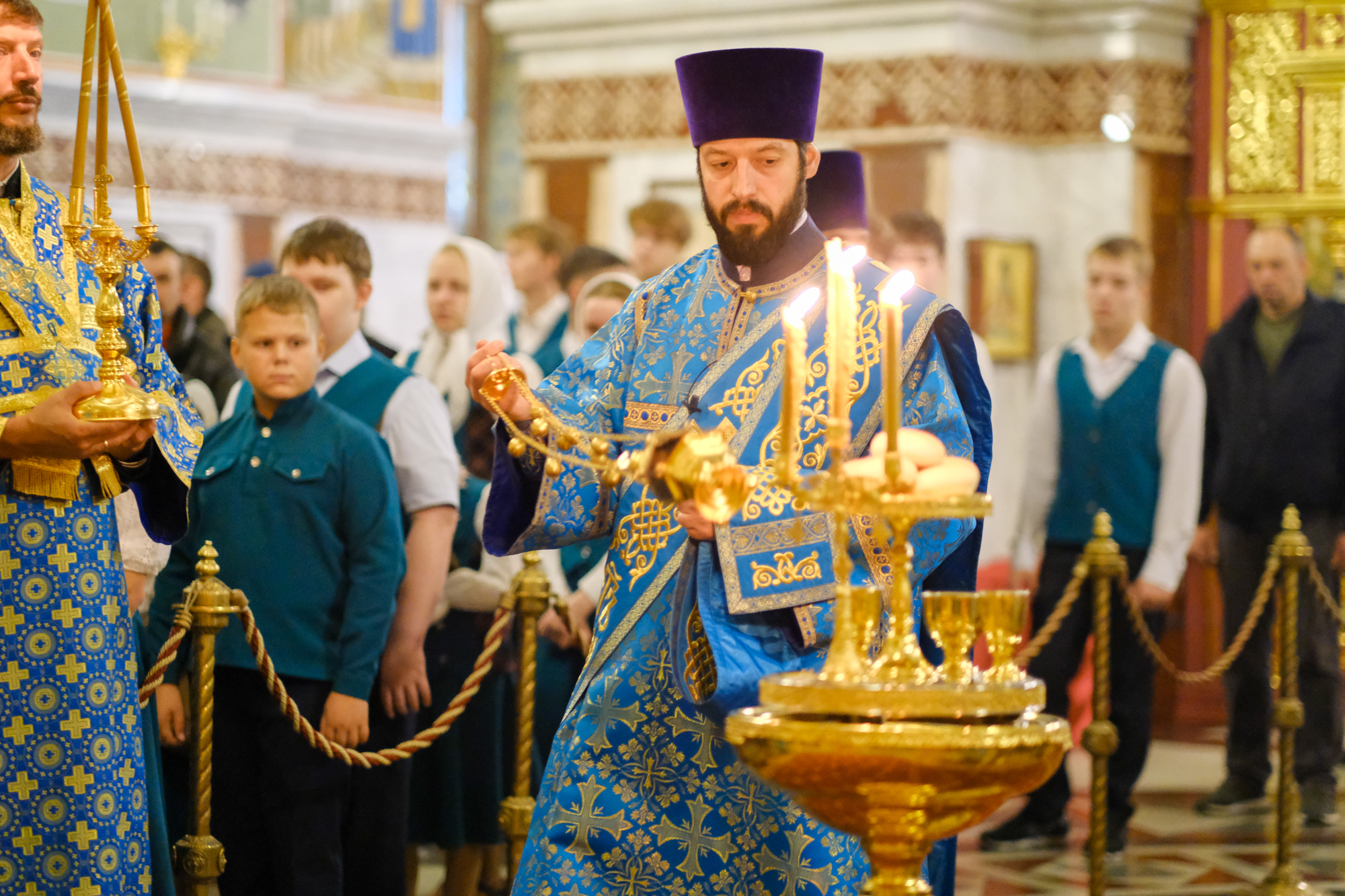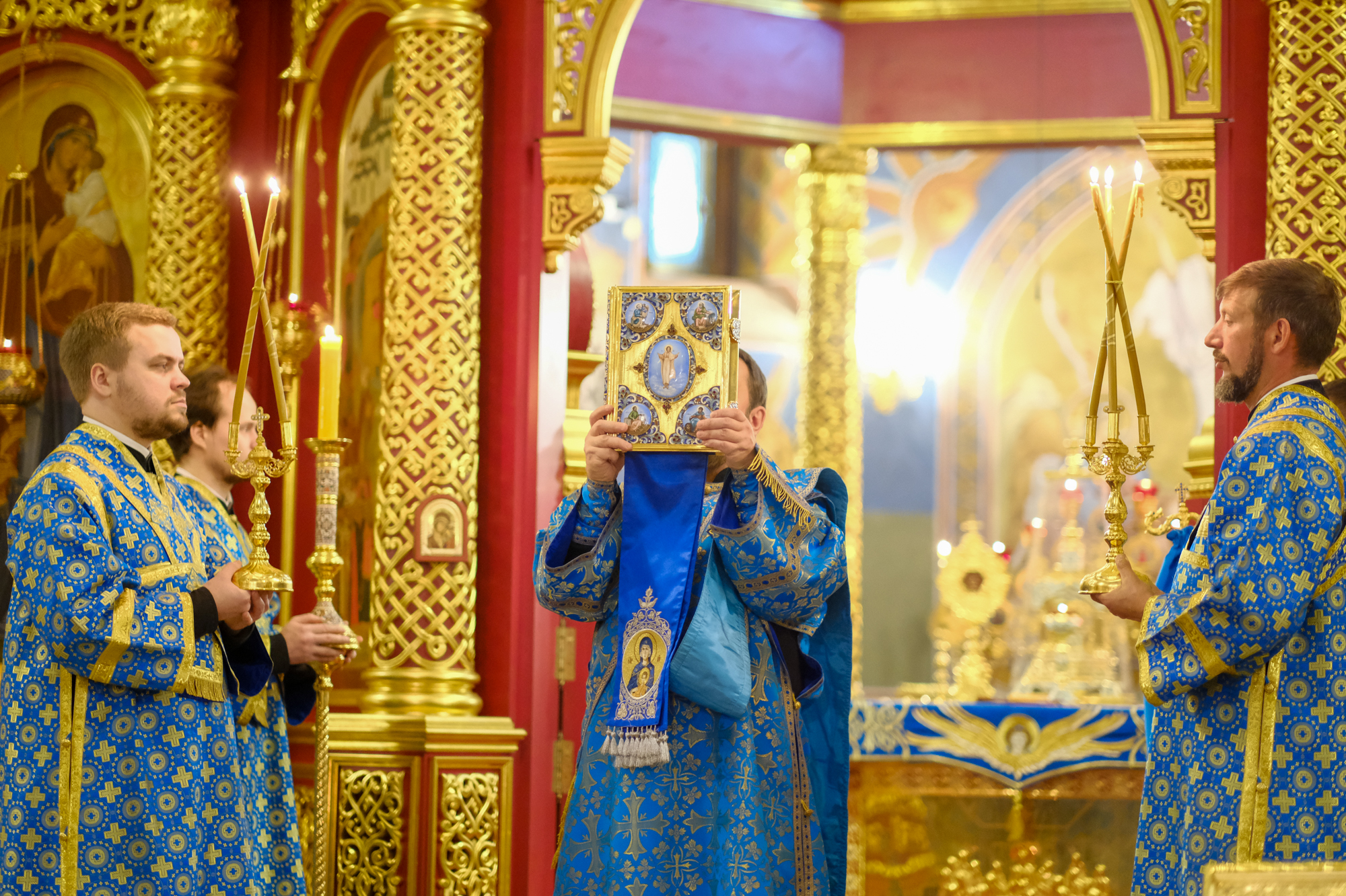 Его Высокопреосвященству сослужили: благочинный Ханты-Мансийского благочиния иерей Димитрий Губанищев, ключарь собора иерей Александр Петюр, духовенство собора.