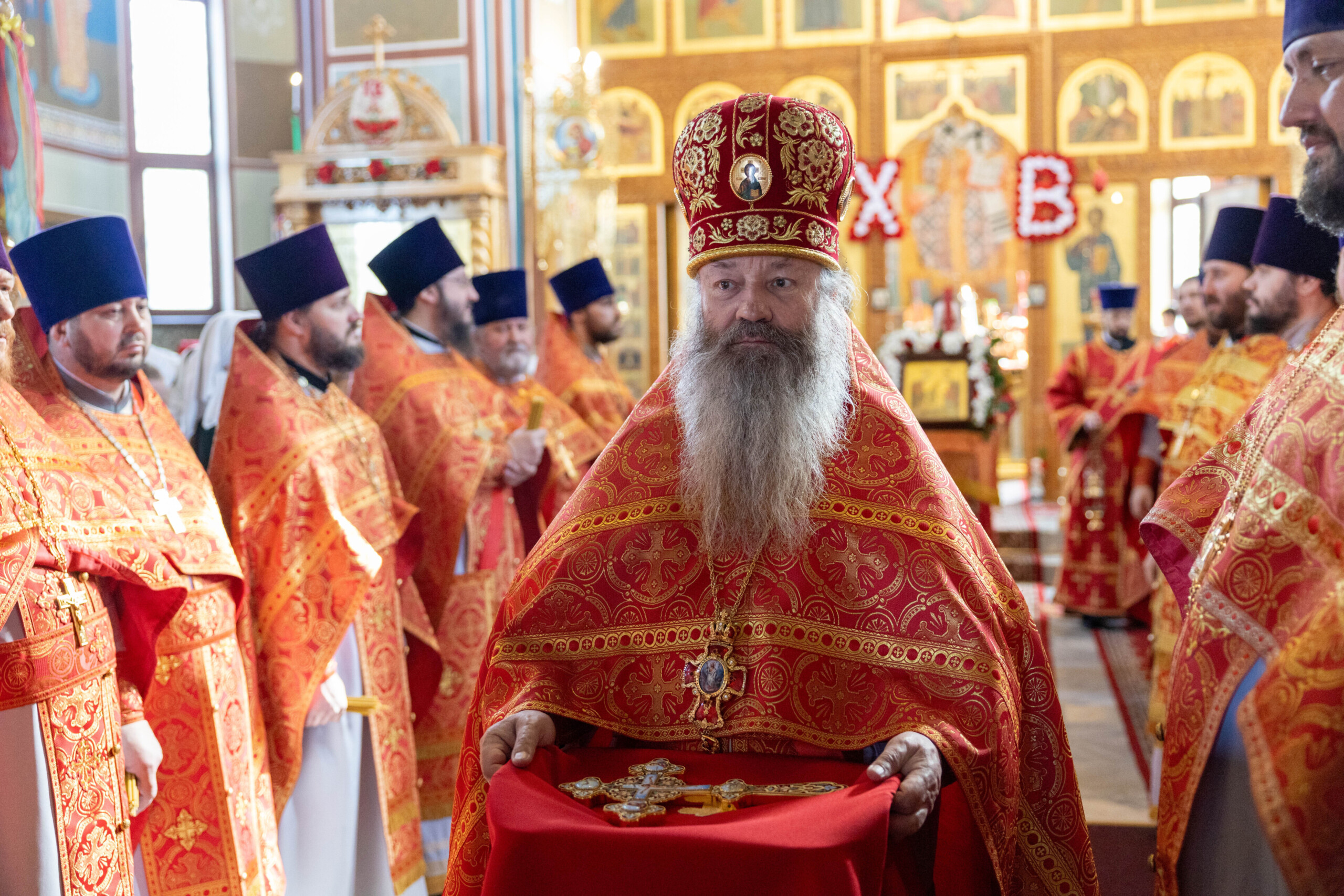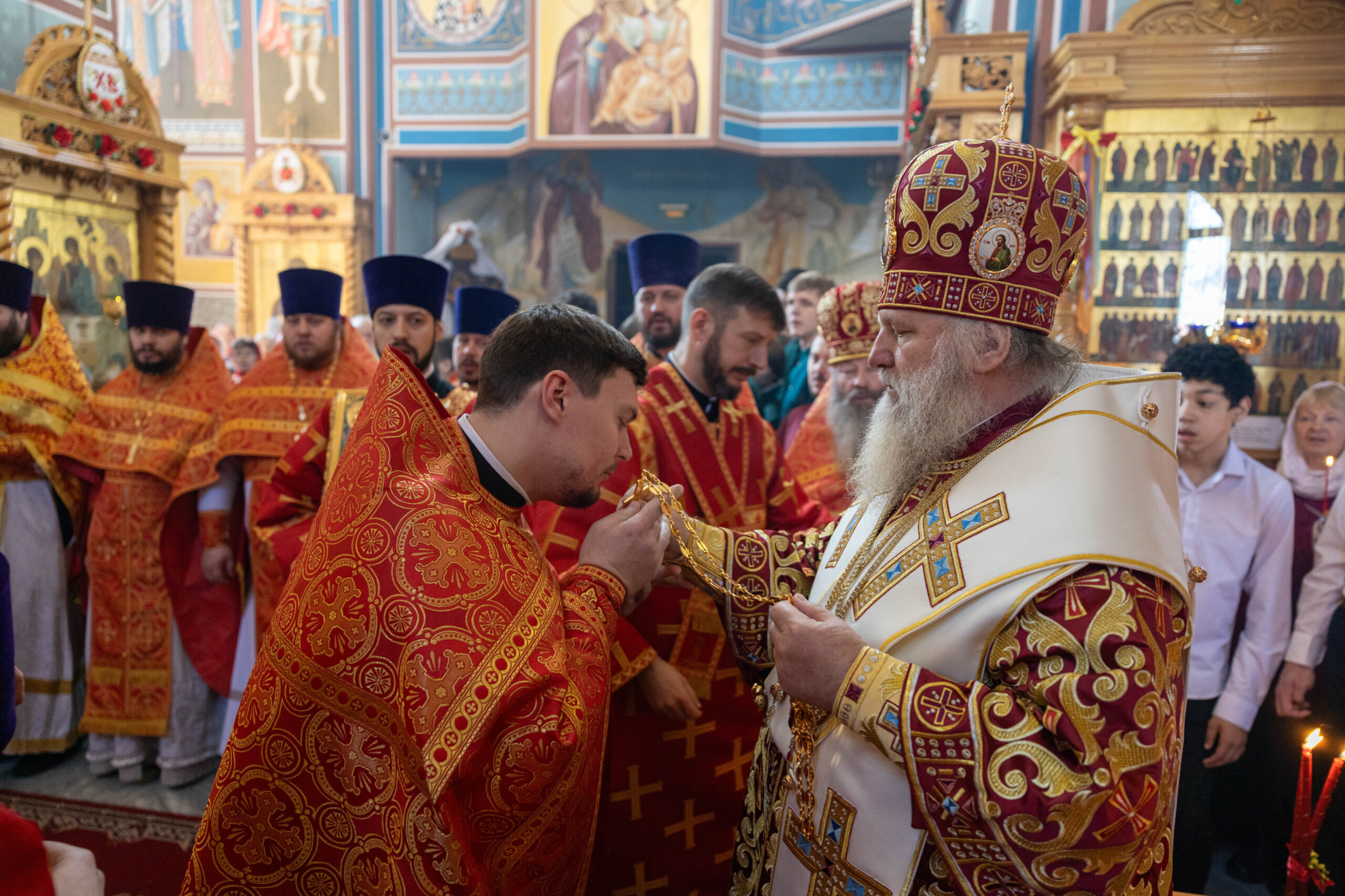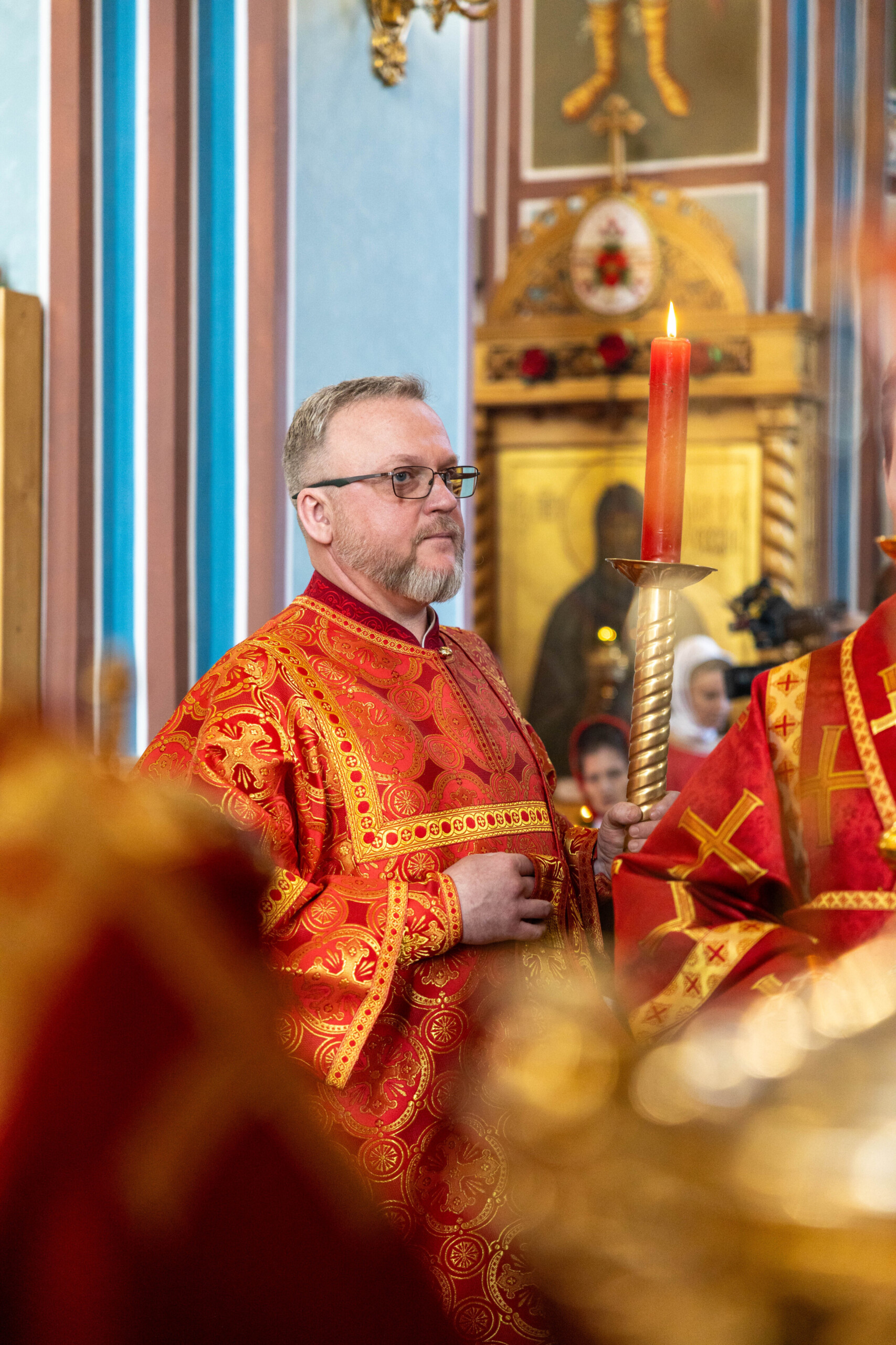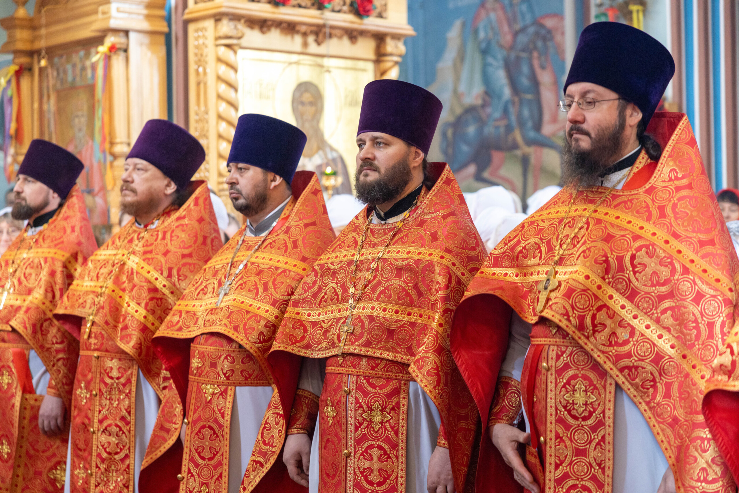 Его Высокопреосвященству сослужили: благочинный Ханты-Мансийского благочиния иерей Димитрий Губанищев, ключарь собора иерей Александр Петюр, духовенство собора.