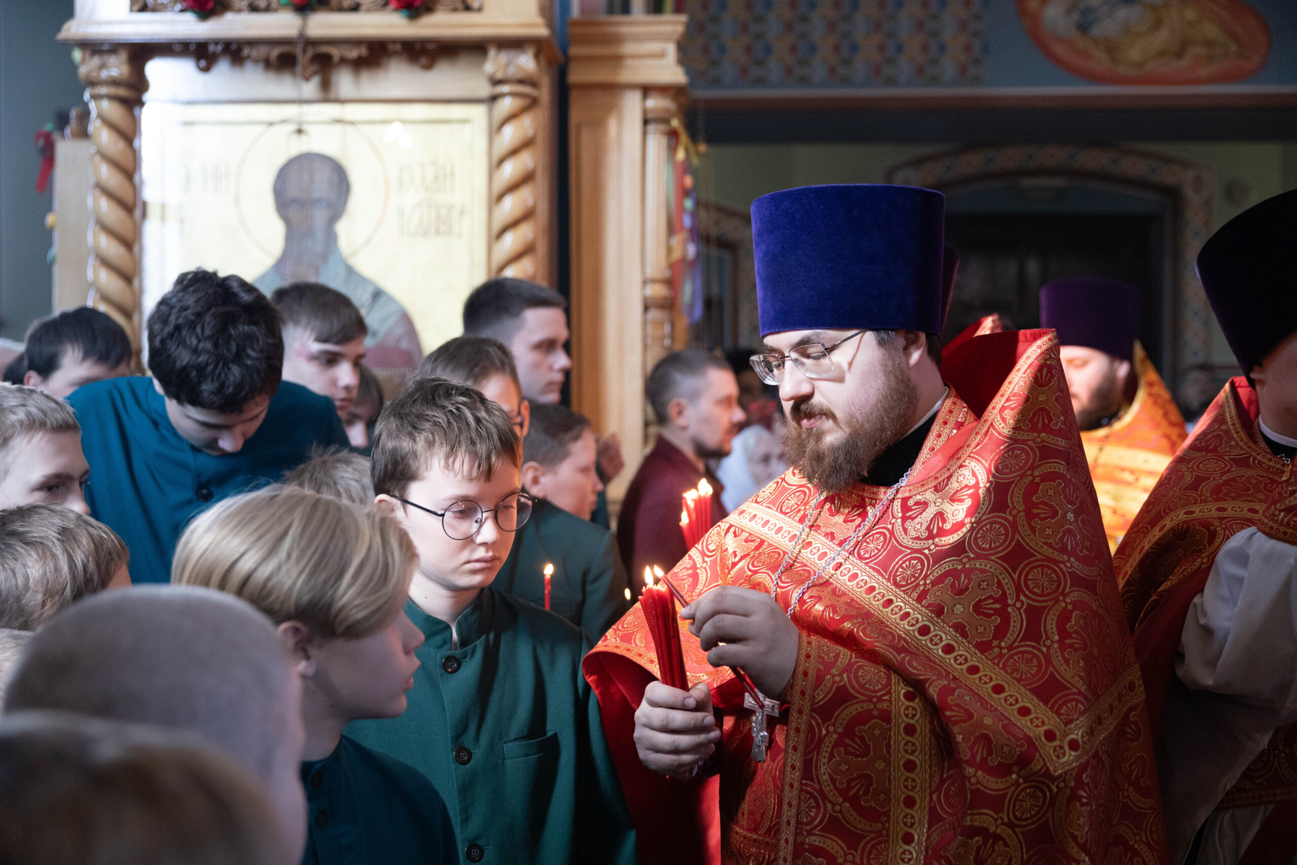 Утро для воспитанников православной гимназии Нижневартовска началось с общей молитвы за Божественной литургией в храме Рождества Христова. Это было не просто посещение храма, а полноценное участие: подготовив свои сердца в Таинстве Исповеди, гимназисты сподобились причаститься Святых Христовых Таин.