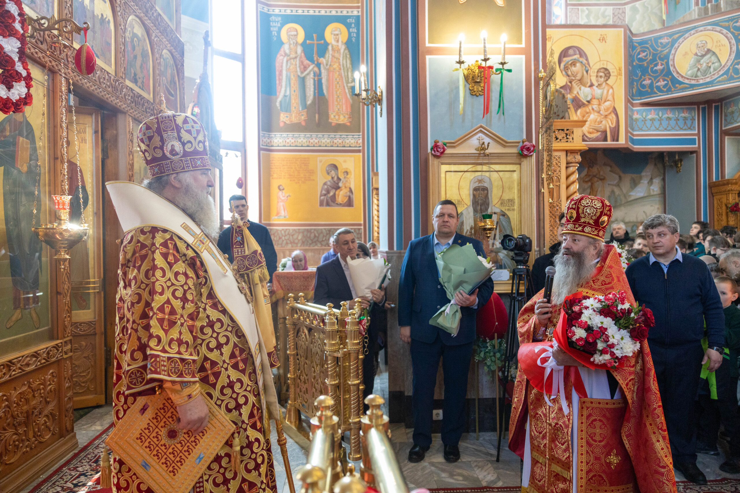 «Дорогие отцы, братья и сестры, позвольте от сердца, от души всех поблагодарить за общие молитвы и поздравить с престольным праздником нашего собора, один из приделов которого посвящен великому угоднику Божьему, святому благоверному князю Александру Невскому.