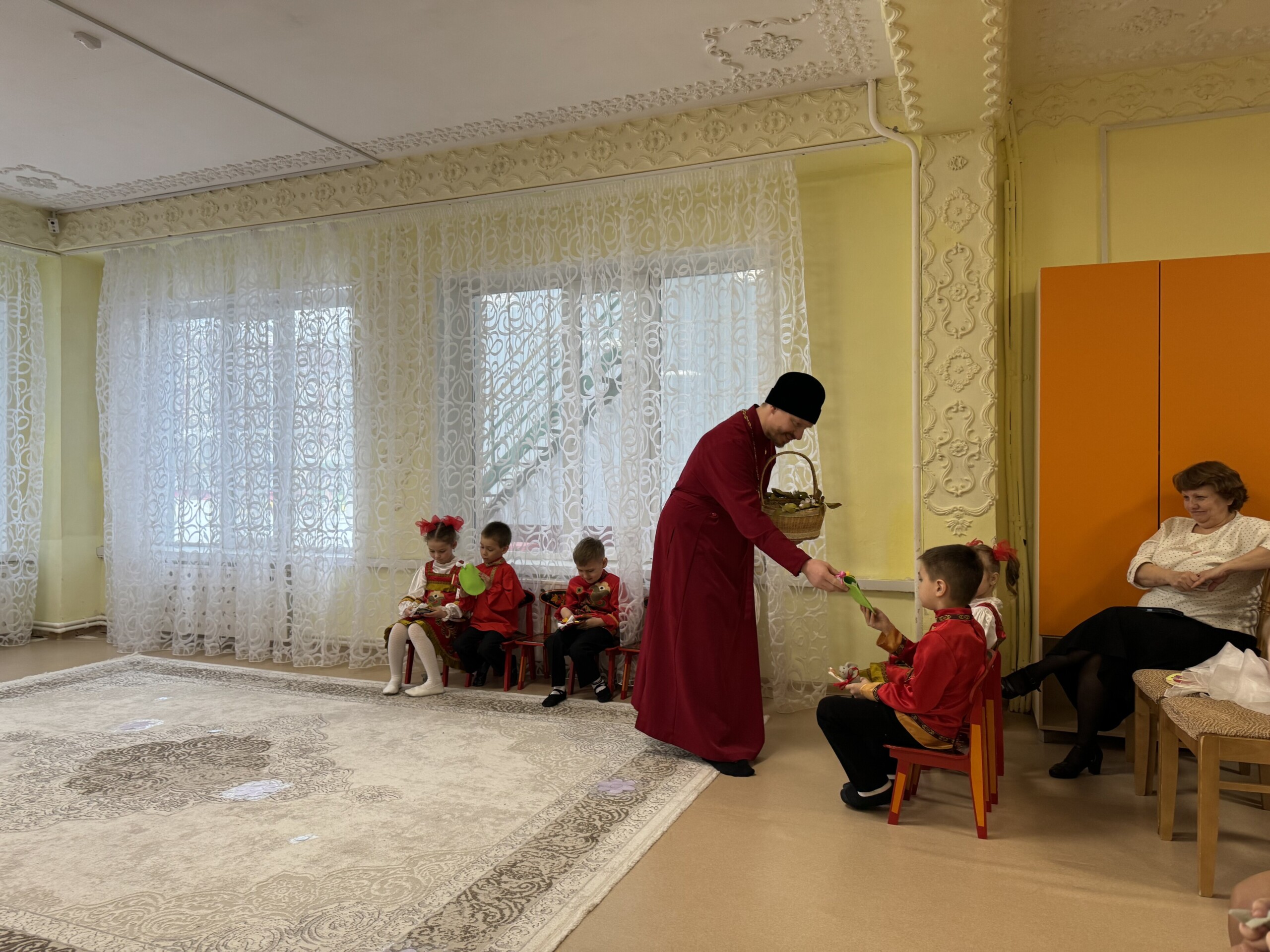 4 декабря, в день праздника Введения во храм Пресвятой Богородицы, воспитанники группы «Затейники» детского сада «Ручеек» вместе с воспитателем Н.В. Ивановой посетили храм равноапостольного великого князя Владимира. Настоятель храма отец Иоанн Власуков провел интересную беседу с детьми, рассказав о значении праздника и традициях православной церкви.