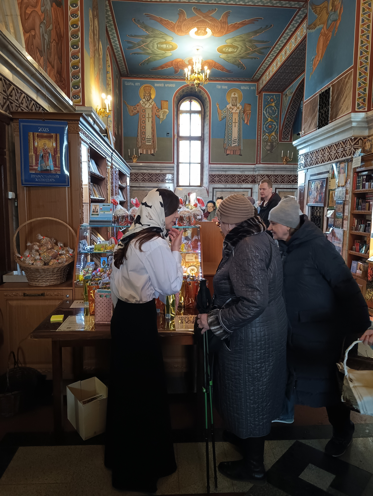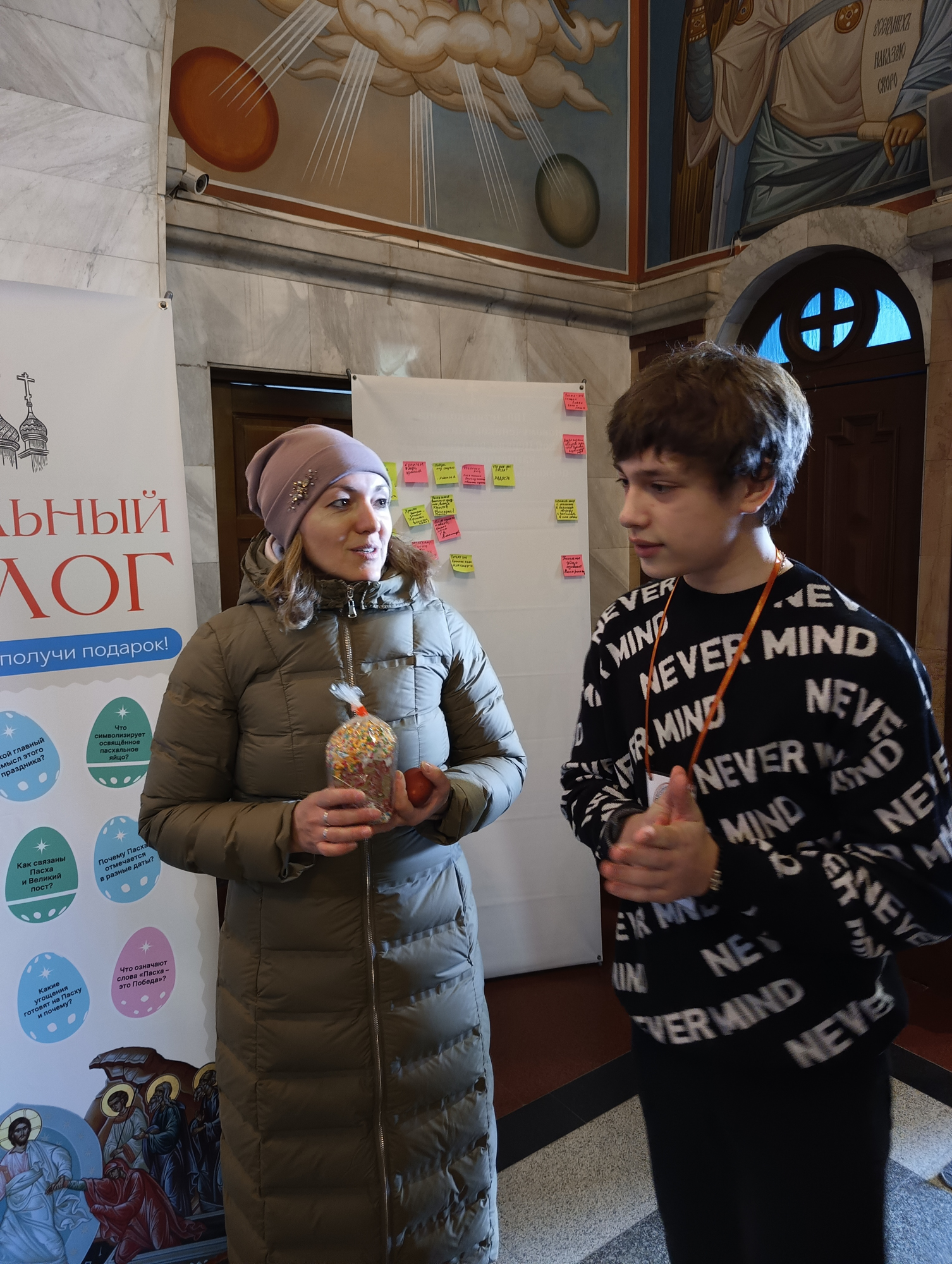 Особенное внимание привлекли рассказы о двух важных элементах православной традиции — освящённых хлебцах-просфорах и большом праздничном хлебе Артосе. Отец Иоанн объяснил, что просфора используется в богослужениях и символизирует жертвенность и единство верующих, а Артос готовят и освящают на Пасху, раздавая потом людям как символ воскрешения Христа и духовного братства.