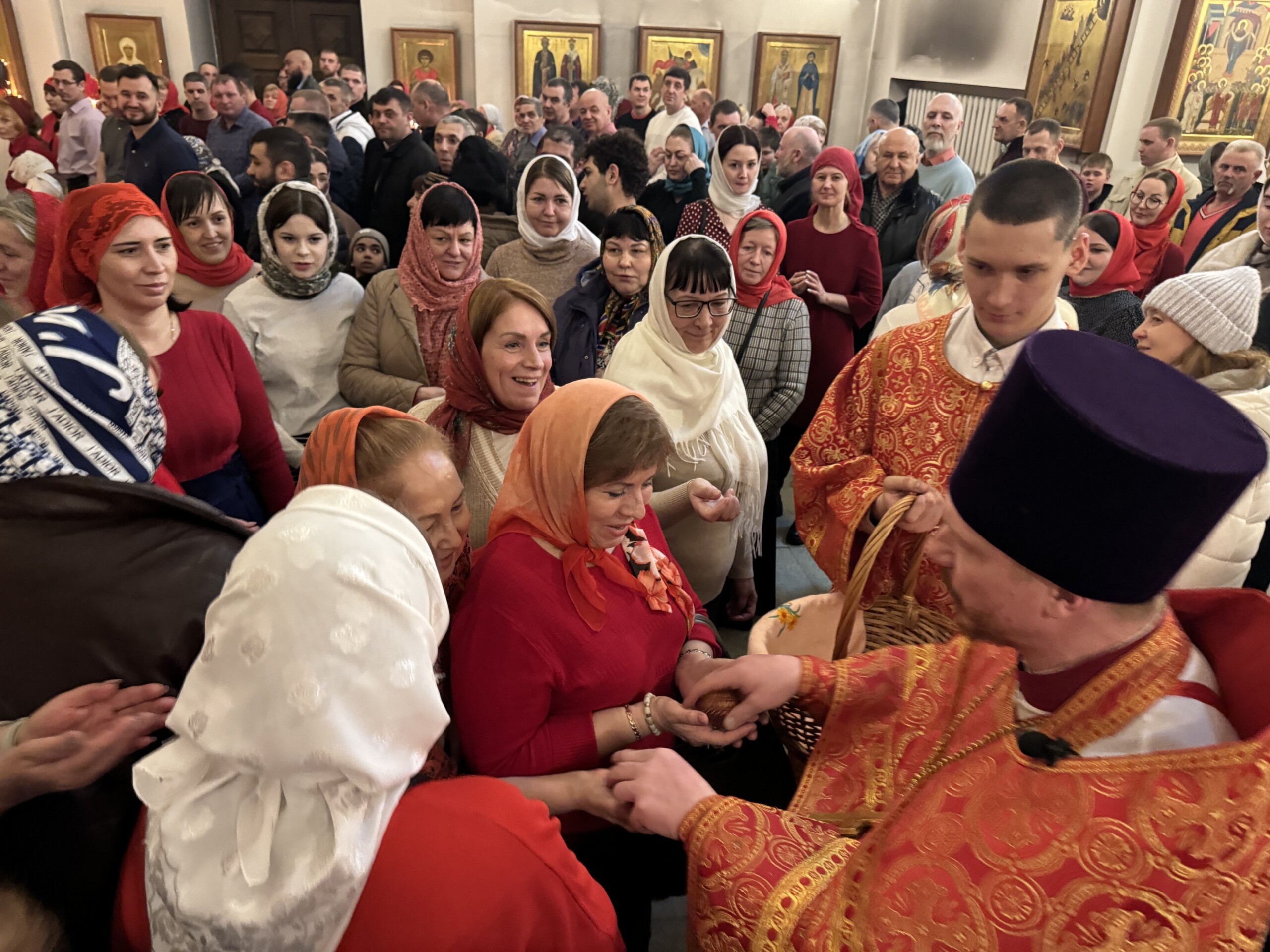30 ноября на приходе храма в честь иконы Божией Матери «Всех скорбящих Радость» г.Лангепаса после Божественной литургии настоятель храма, благочинный Лангепасского благочиния иерей Евгений Чебыкин поздравил прихожанок-мам и бабушек.