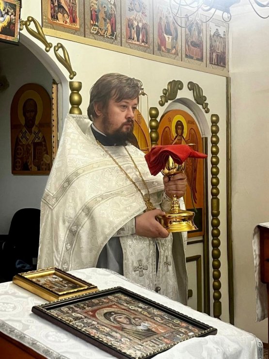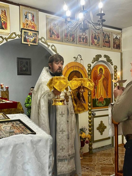 После Божественной литургии в храме иконы Божией Матери «Всех скорбящих радость» п. Выкатной отец Леонид совершил заочное отпевание убиенного воина Игоря.