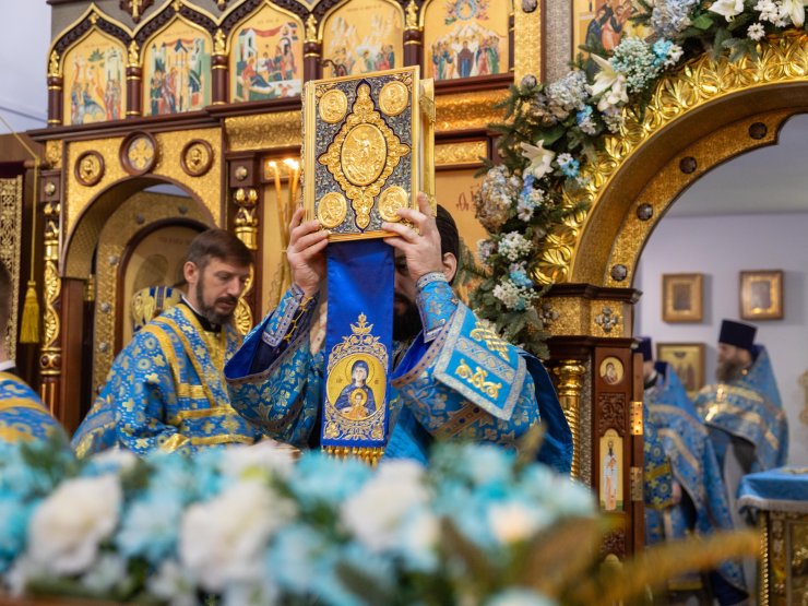После богослужения митрополит Павел обратился к собравшимся с архипастырским словом: «Дорогие отцы, братья и сестры, позвольте от сердца души поблагодарить всех за общие молитвы и поздравить с престольным днём! Сегодня мы отмечаем память иконы Божьей Матери «Знамение». Храму, который посвящен Царице Небесной, исполнилось 30 лет со дня образования. Я всех сердечно поздравляю с этим юбилеем, с праздником Царицы Небесной. Хотел в знак нашего сегодняшнего богослужения, подарить Евангелие для этого храма на молитвенную память!»