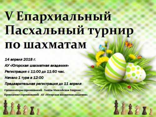 14 апреля 2018 года в Ханты-Мансийске состоится V Пасхальный шахматный турнир