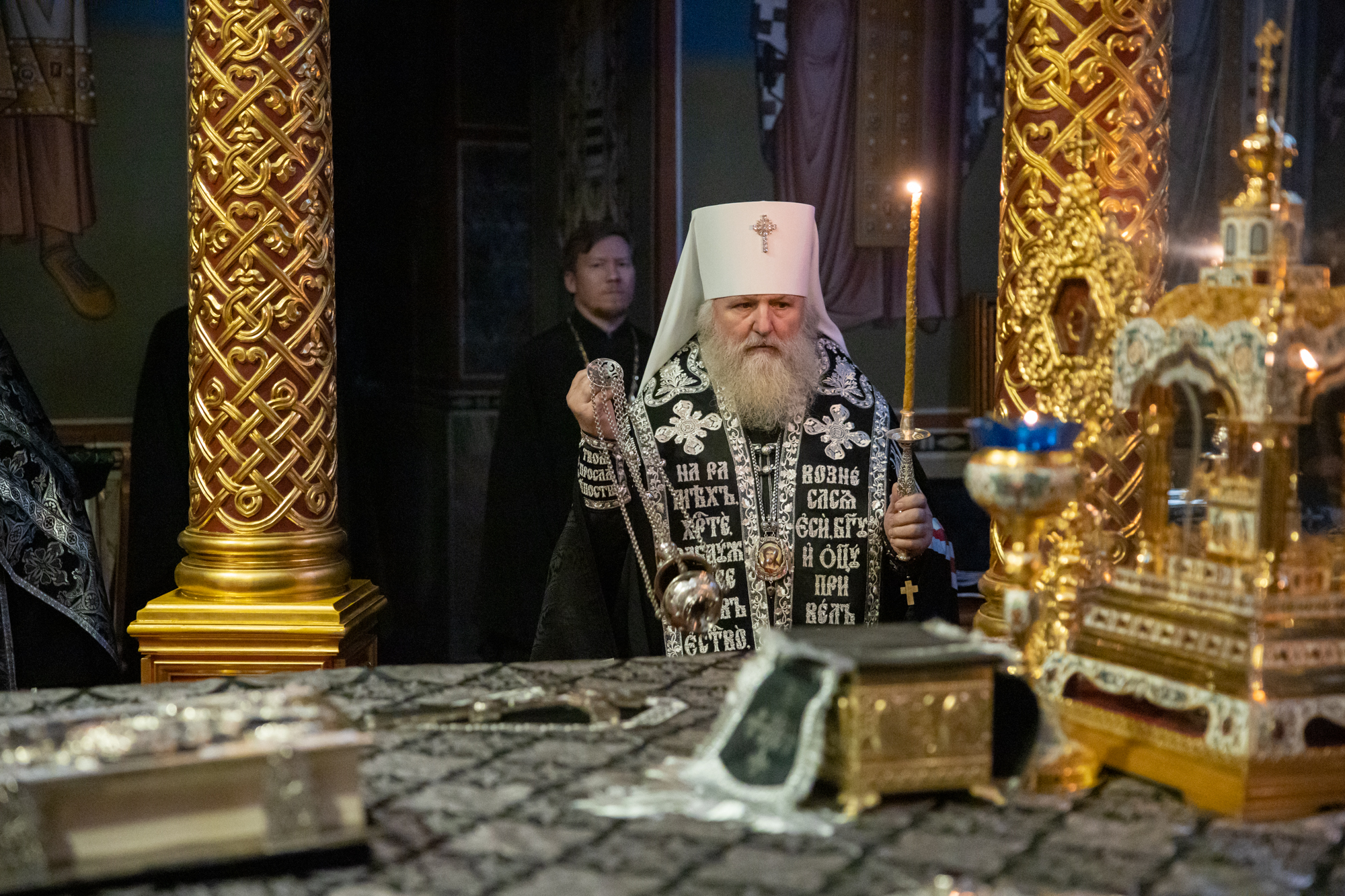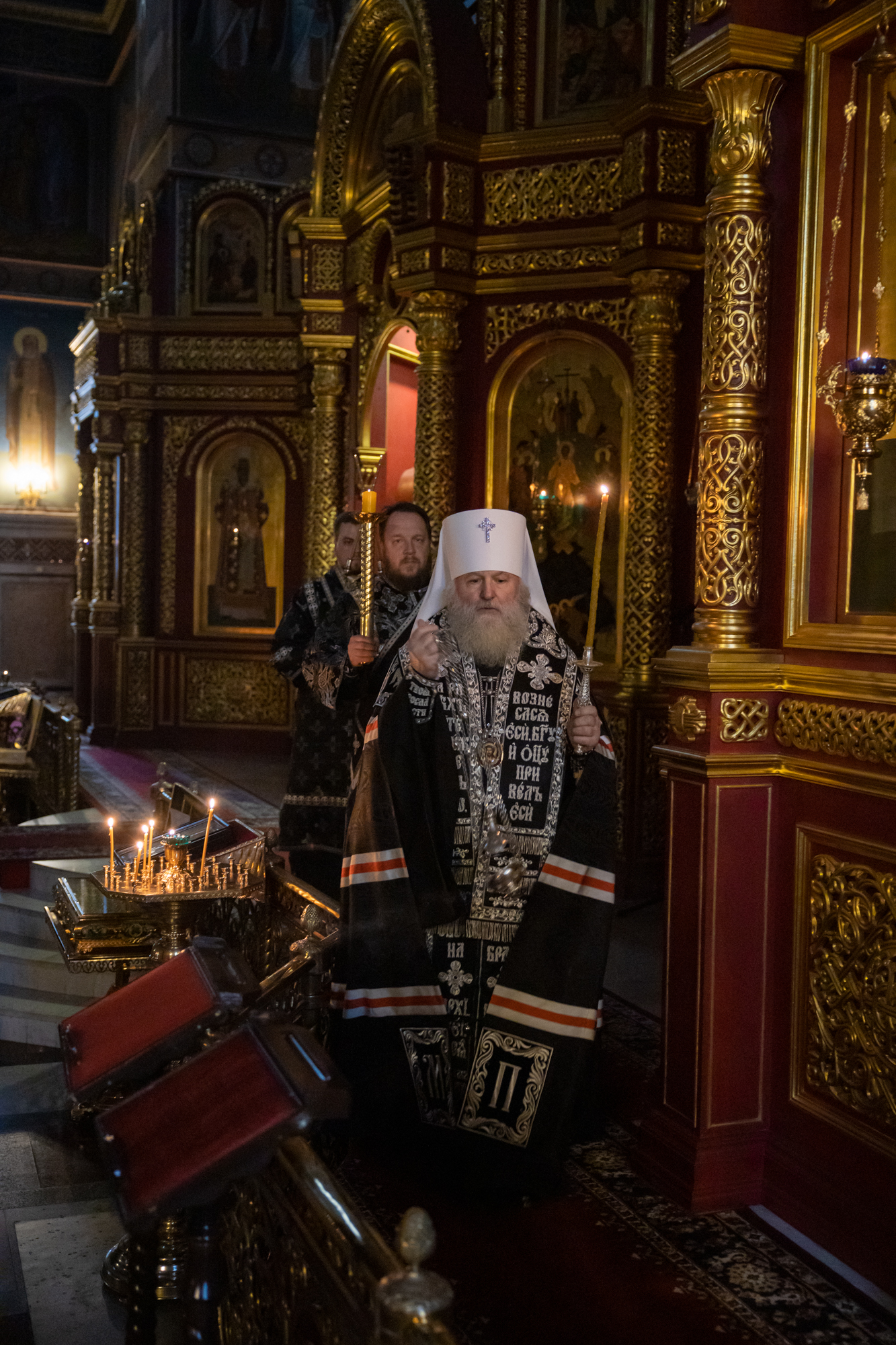 Его Высокопреосвященству сослужили: благочинный Ханты-Мансийского благочиния иерей Димитрий Губанищев, духовенство собора.
