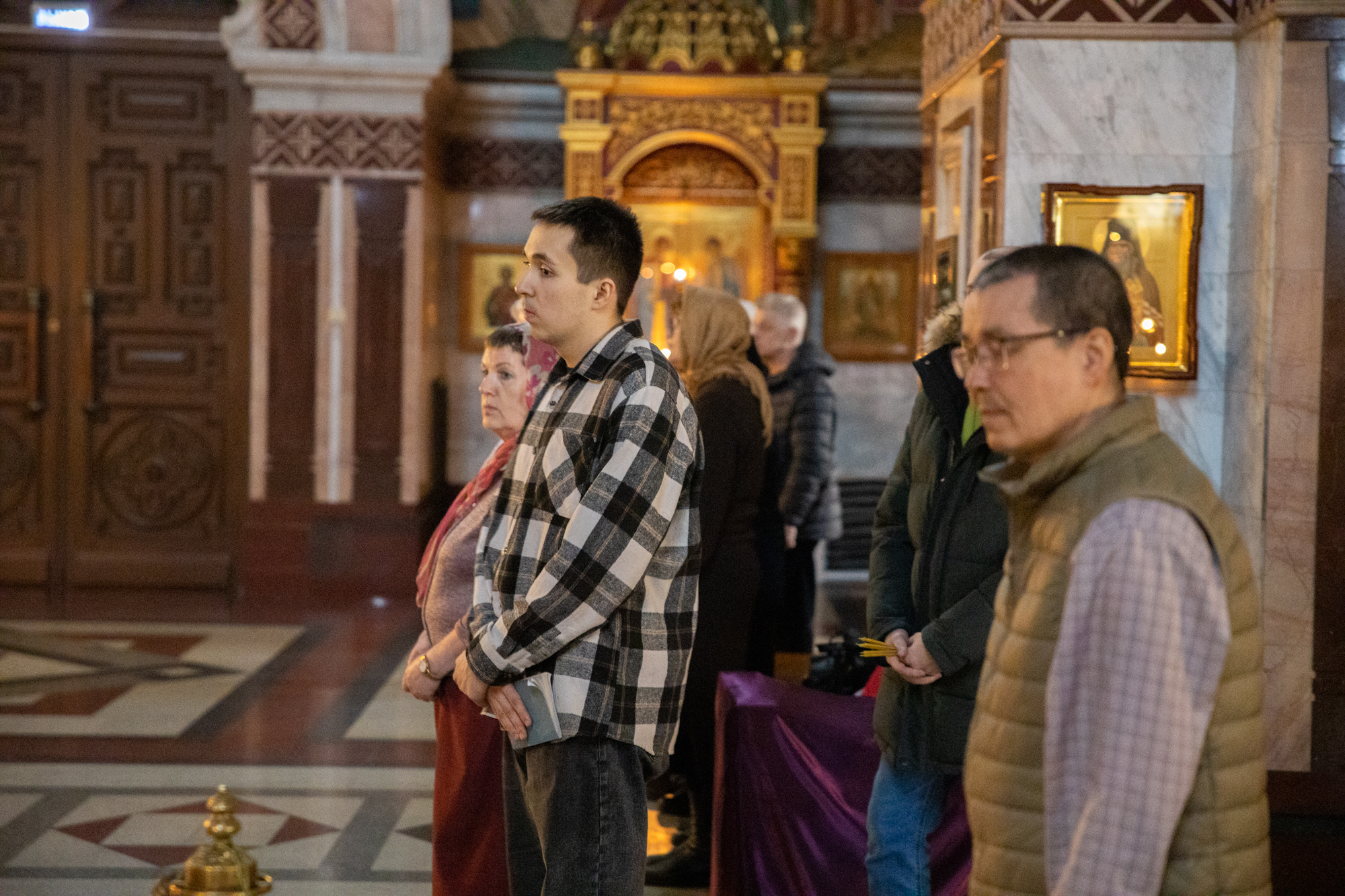 В храм пришло множество людей, которые держали в руках букетики с вербами для освящения. Присутствующие в храме были наполнены радостным предвкушением скорой Пасхи, чувством облегчения от приближающегося завершения Великого поста. Верующие