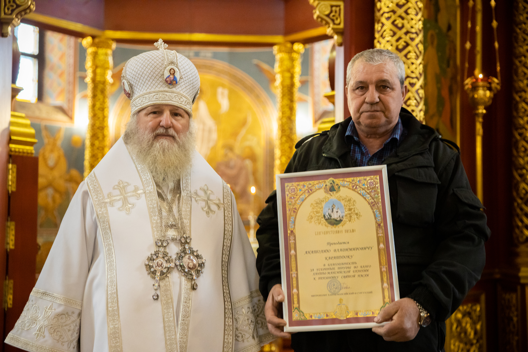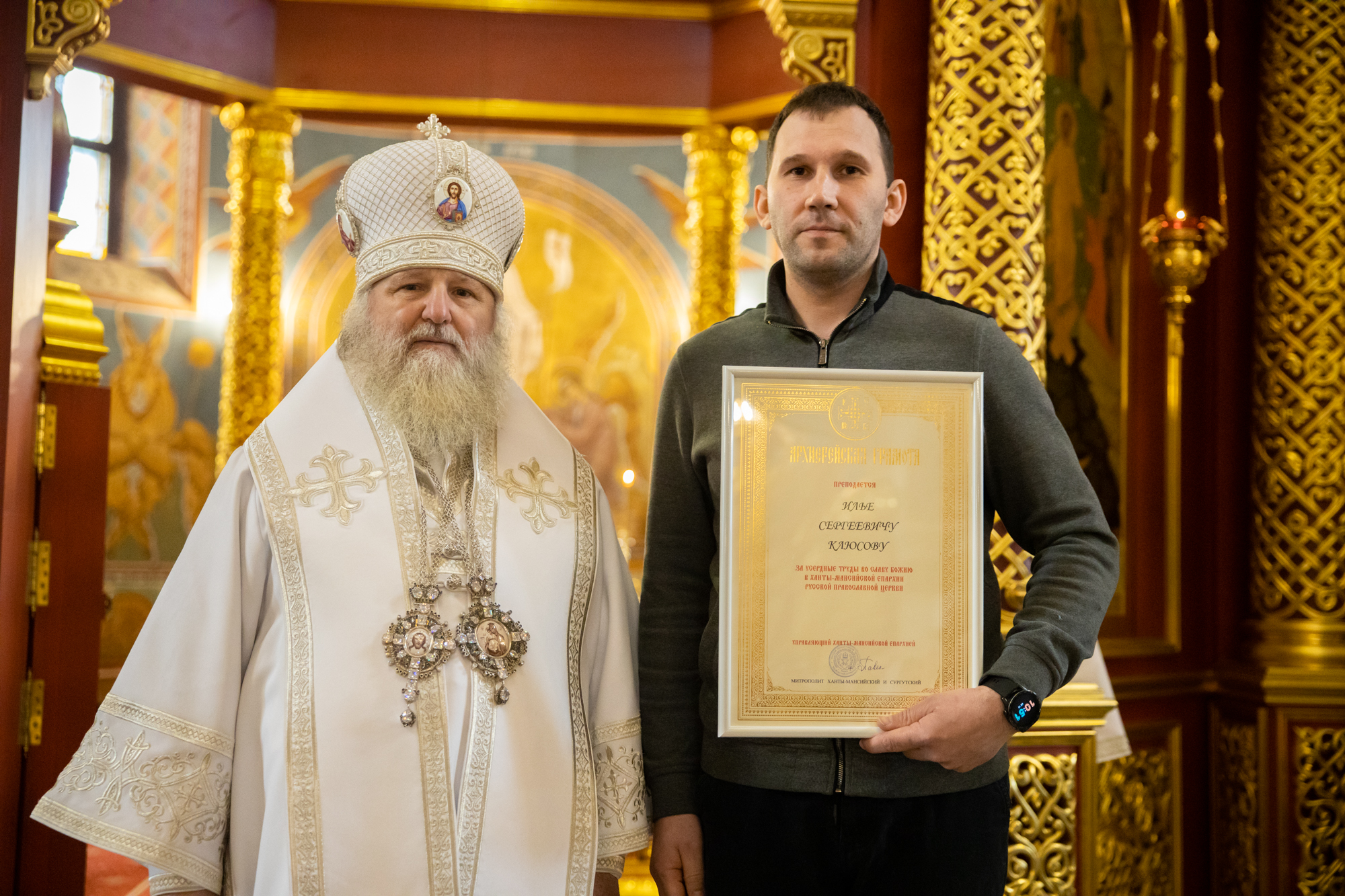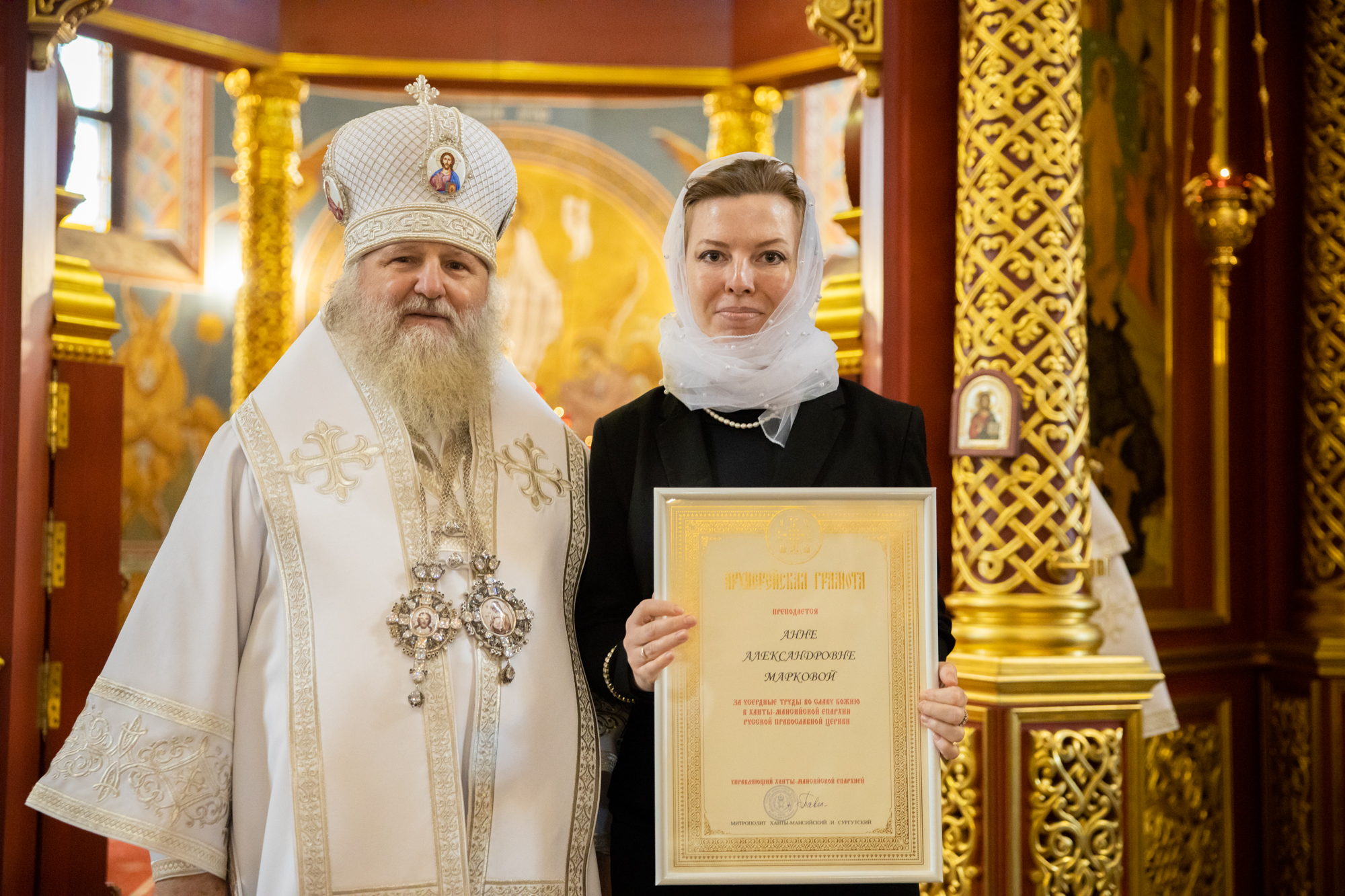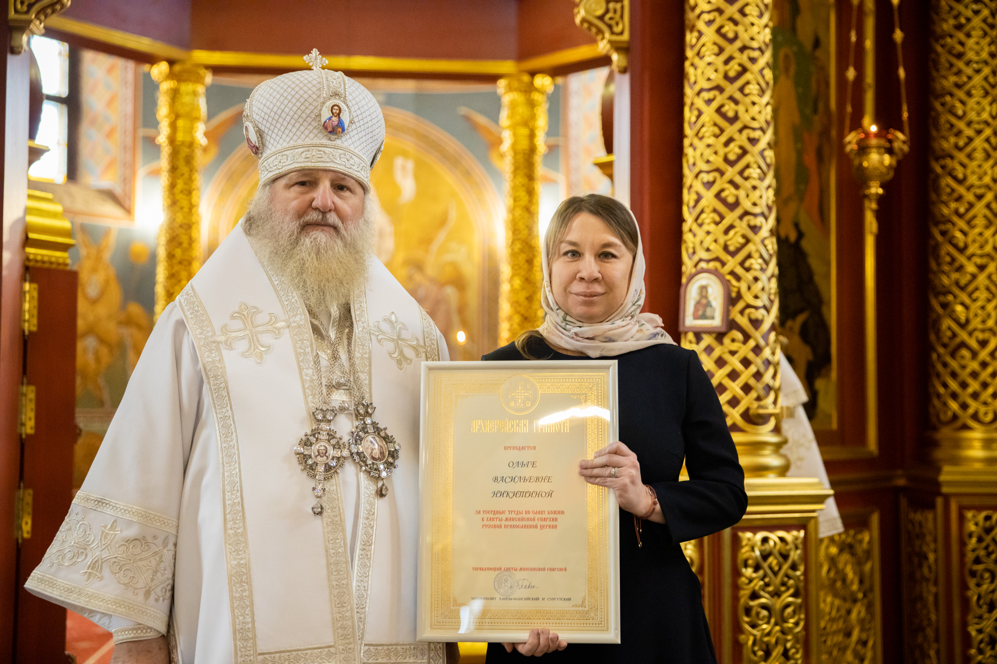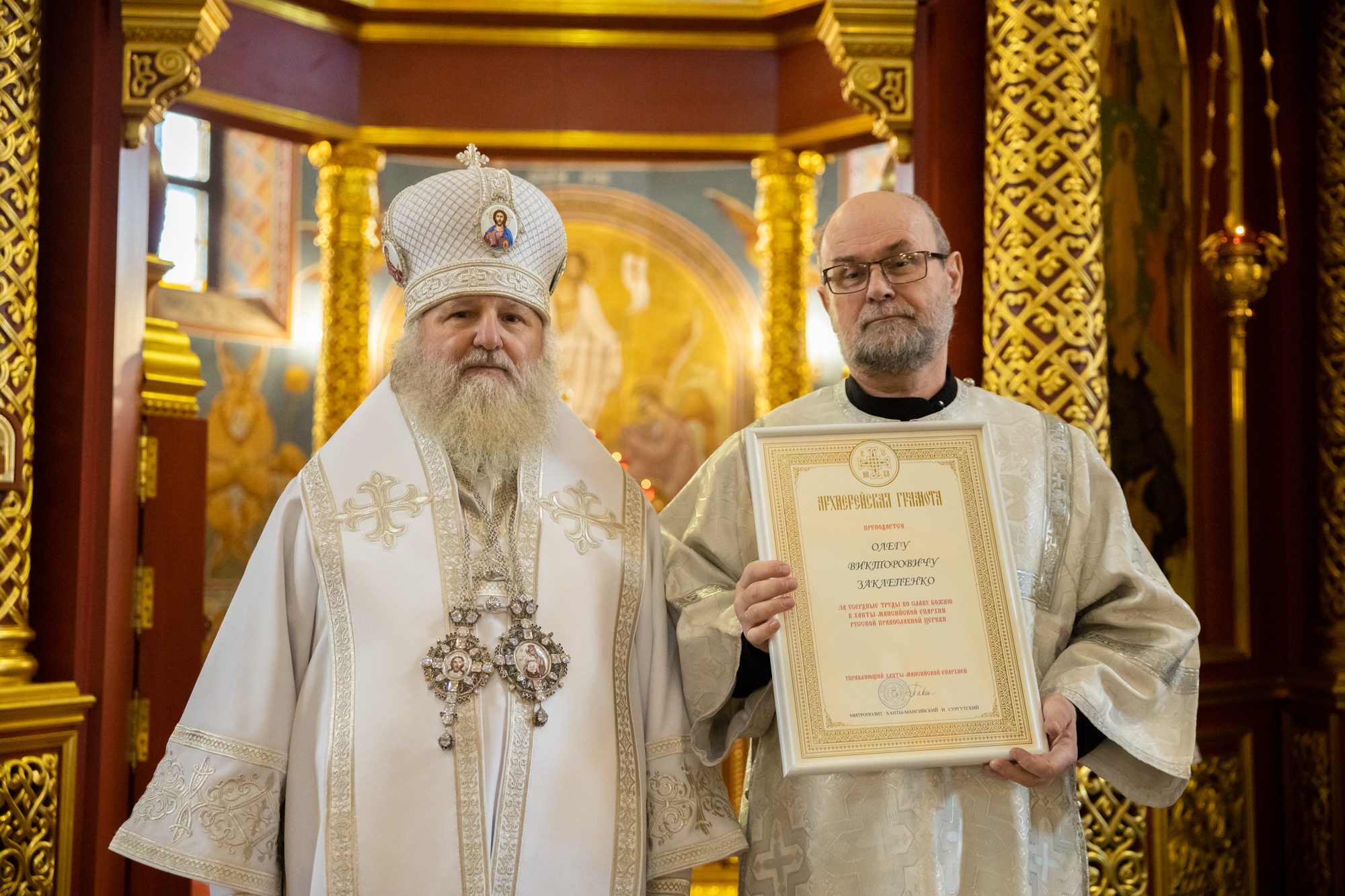 Указом митрополита Ханты-Мансийского и Сургутского Павла во внимание к трудам во благо Воскресенского кафедрального собора Ханты-Мансийской епархии. К празднику Святой Пасхи ряд сотрудников и тружеников кафедрального собора были удостоены Епархиальных наград.