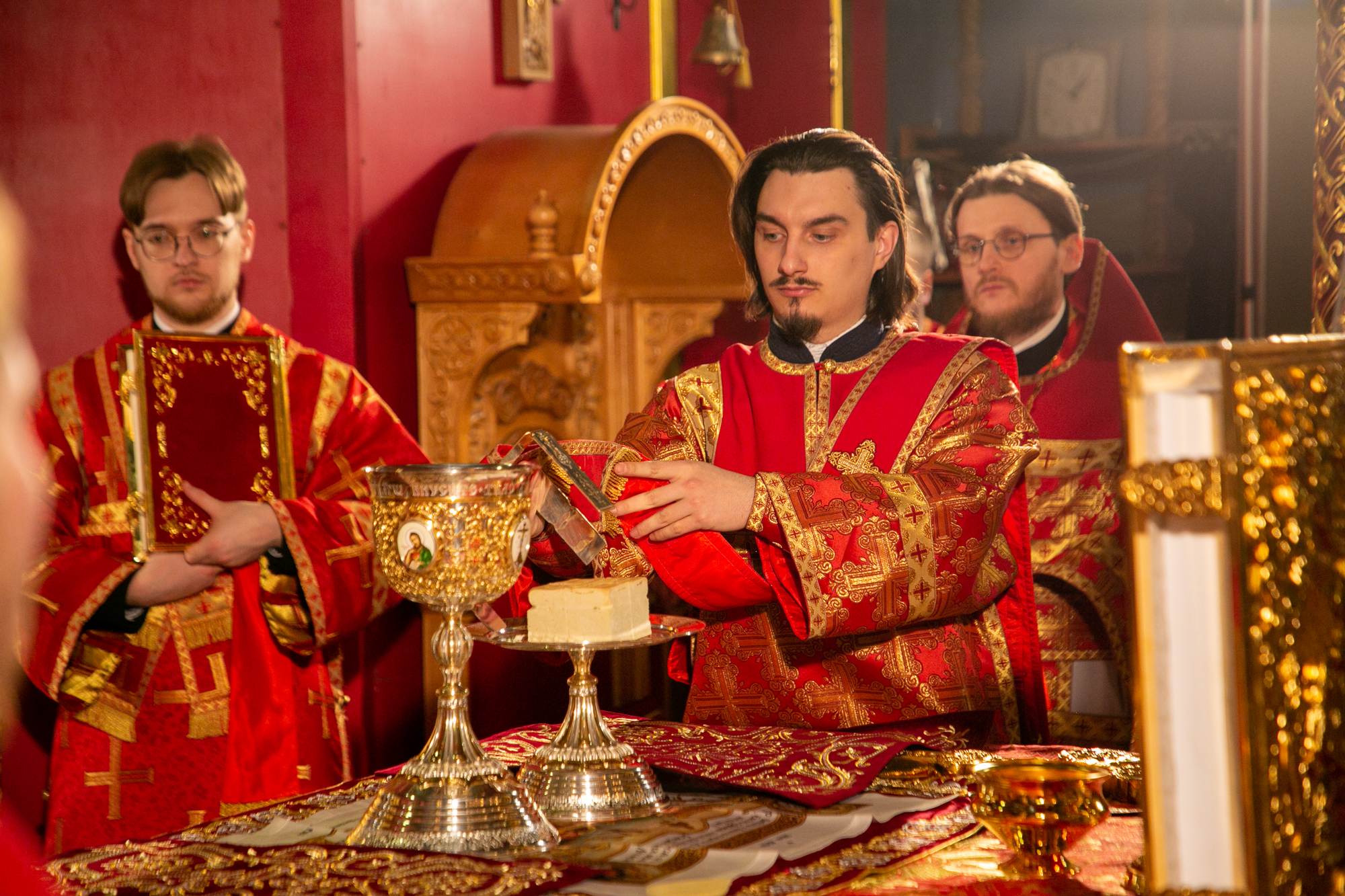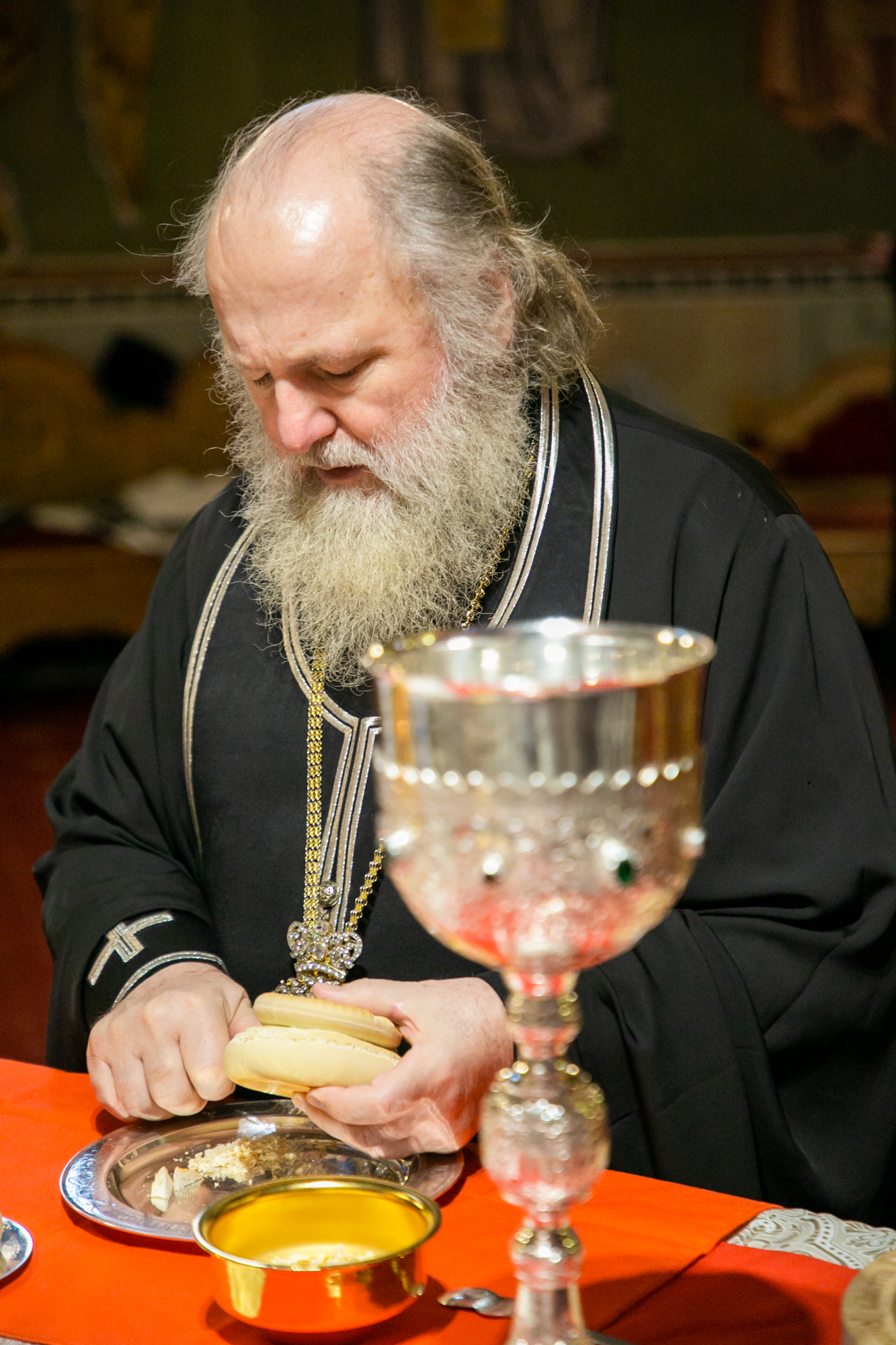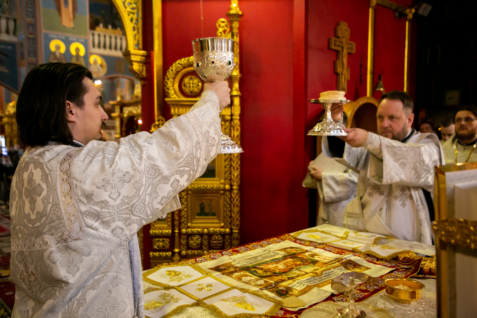 По заамвонной молитве Глава Ханты-Мансийской митрополии совершил освящение хлеба и вина.