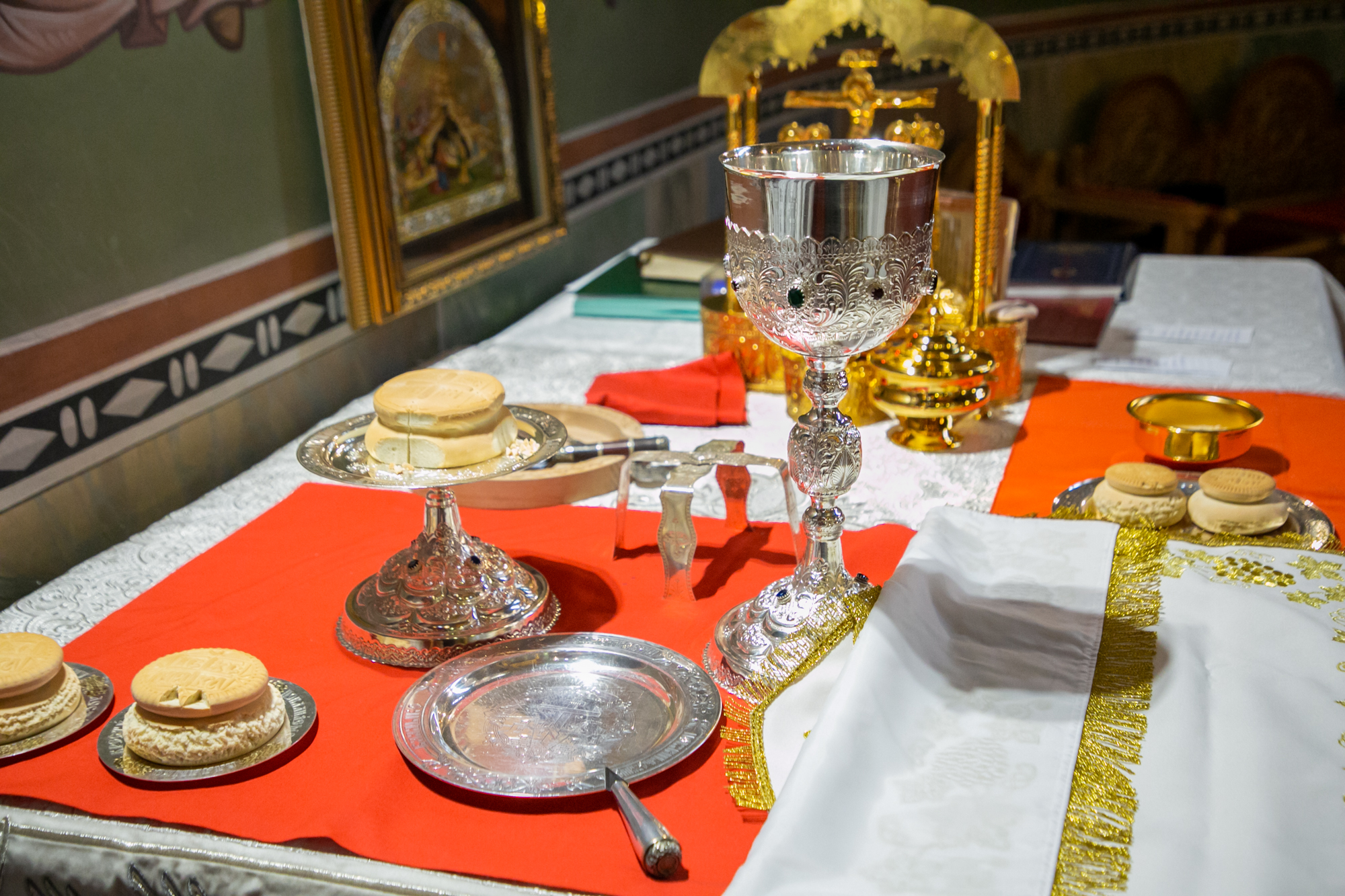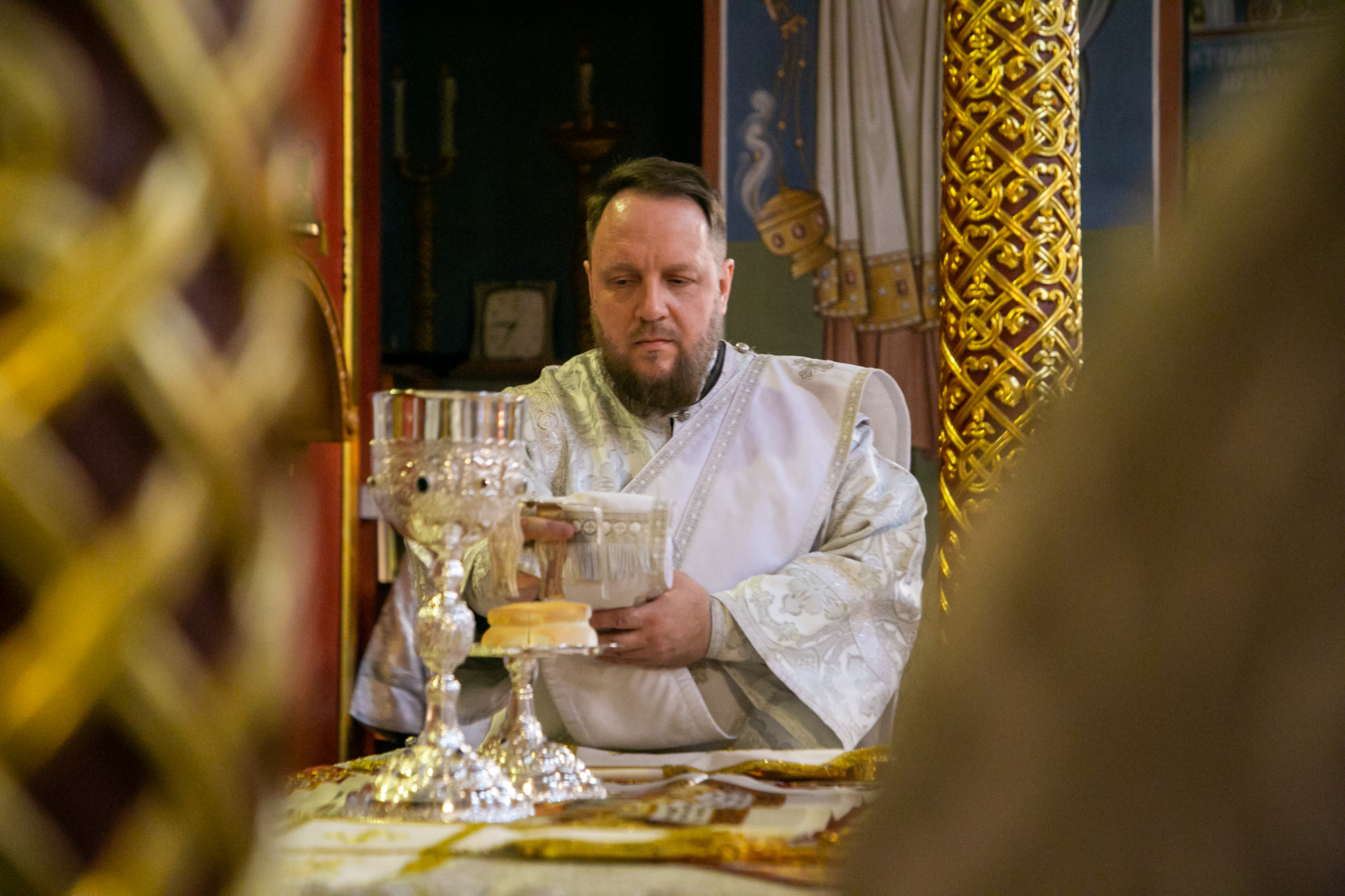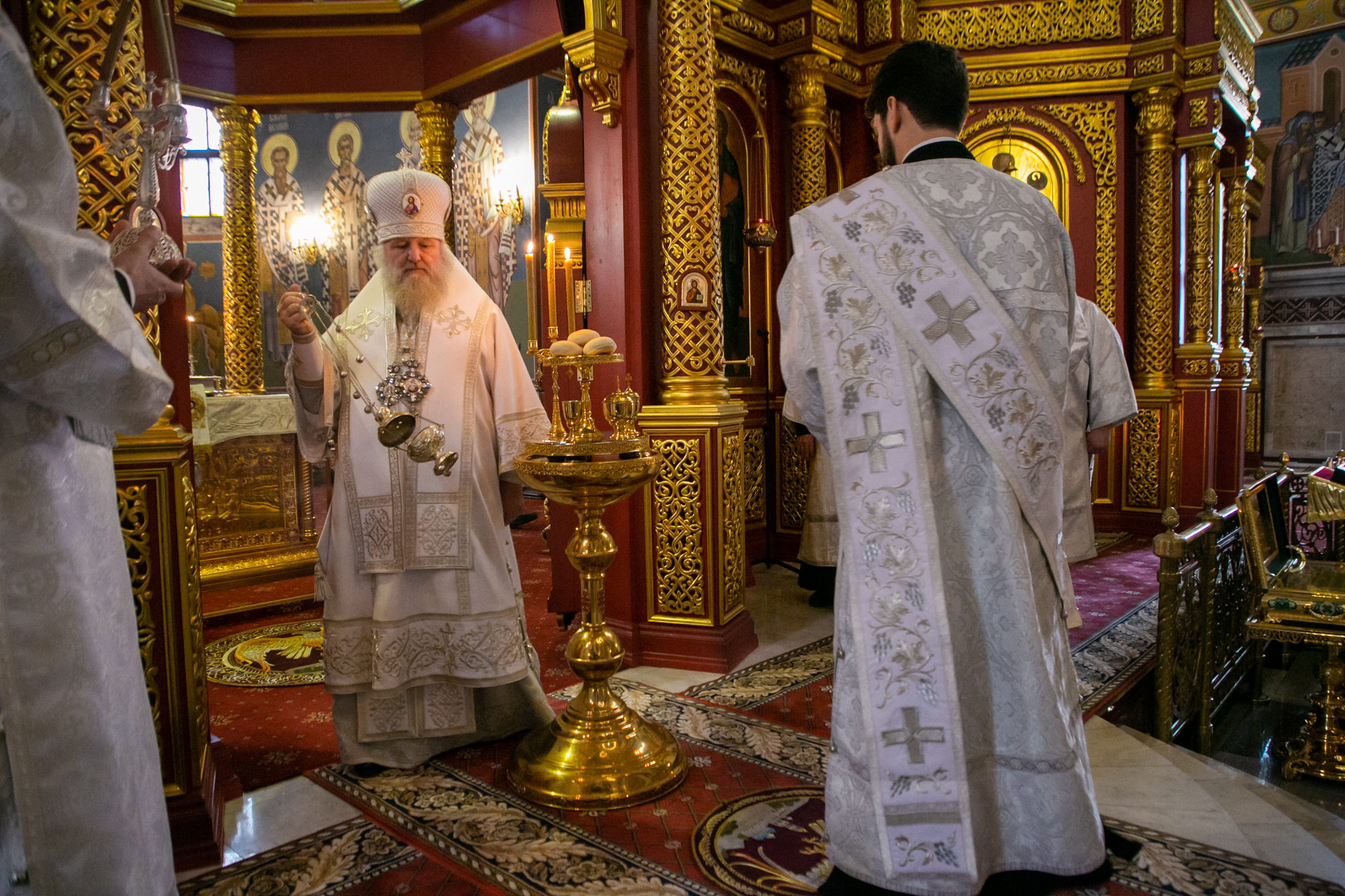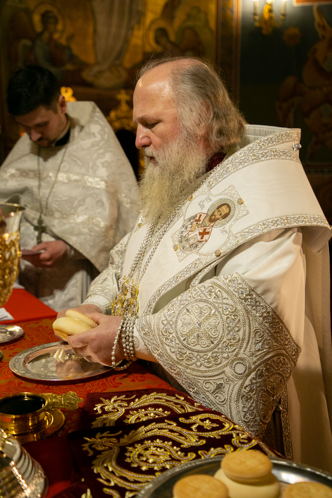 По заамвонной молитве Глава Ханты-Мансийской митрополии совершил освящение хлеба и вина.