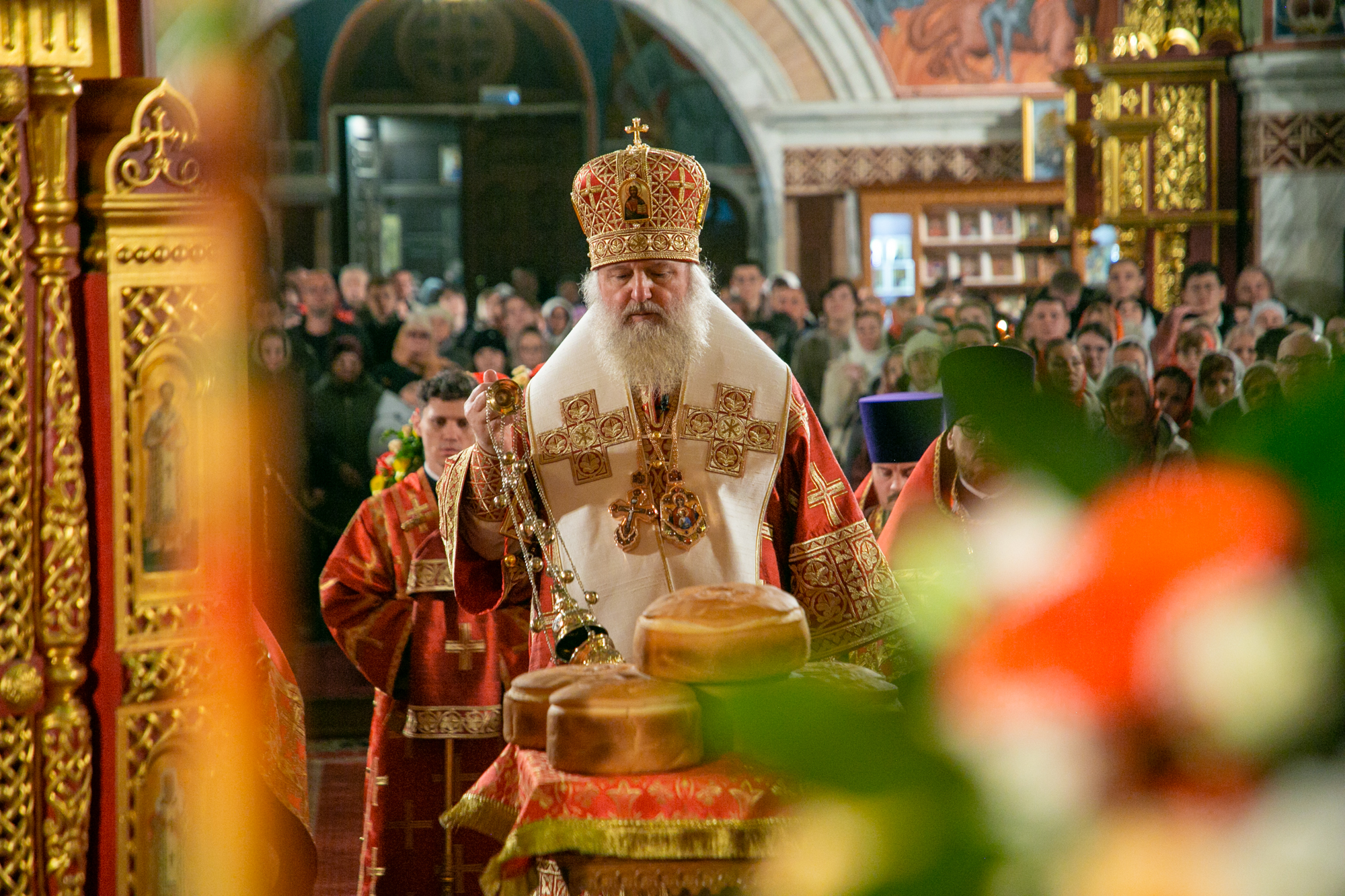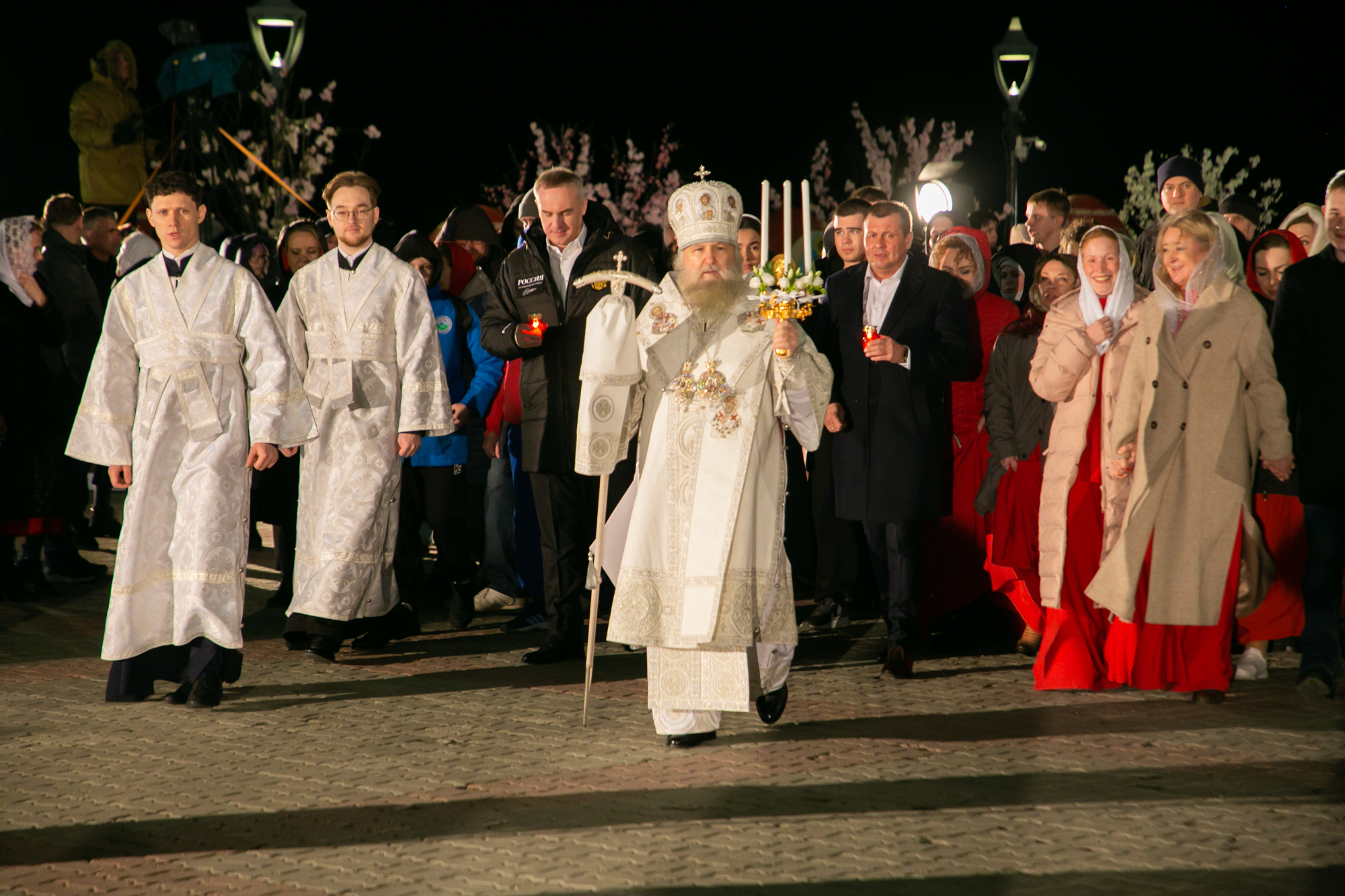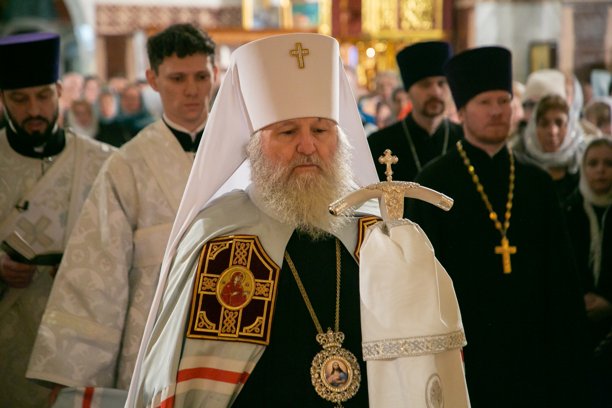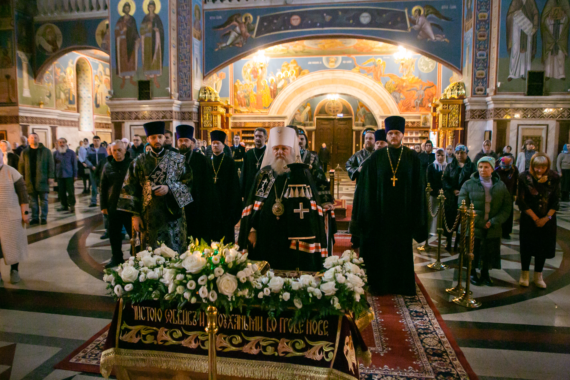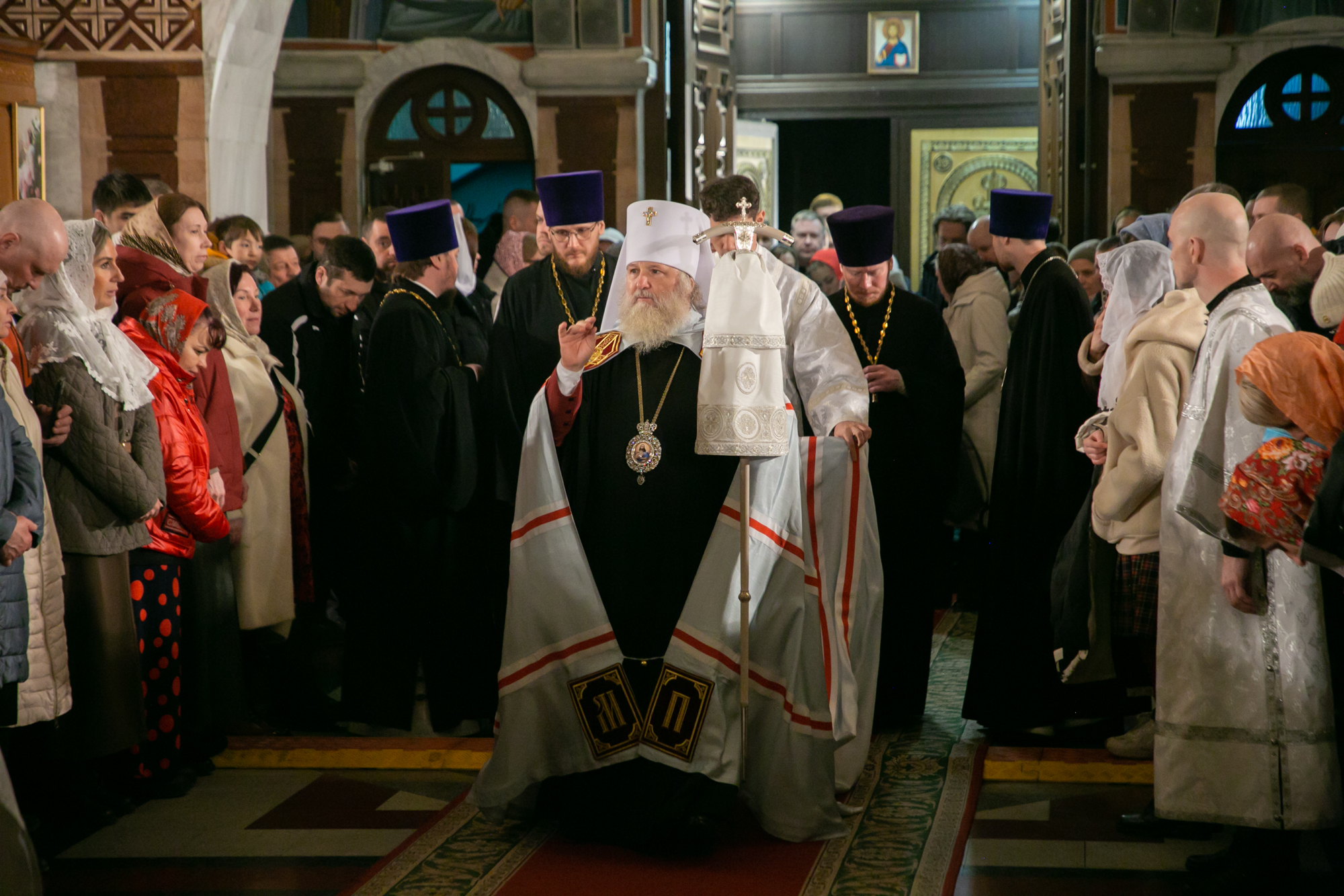 После чтения канона Великой субботы владыка Павел возглавил крестный ход со Святой Плащаницей. После крестного хода Плащаница была положена на середину храма для продолжения поклонения священнослужителей и богомольцев.