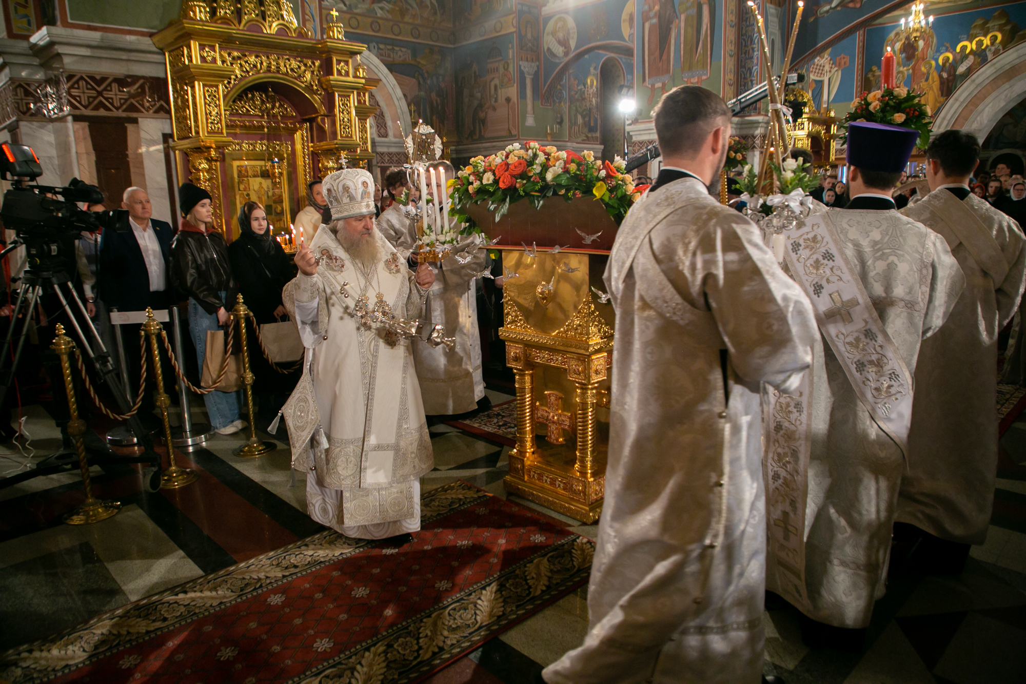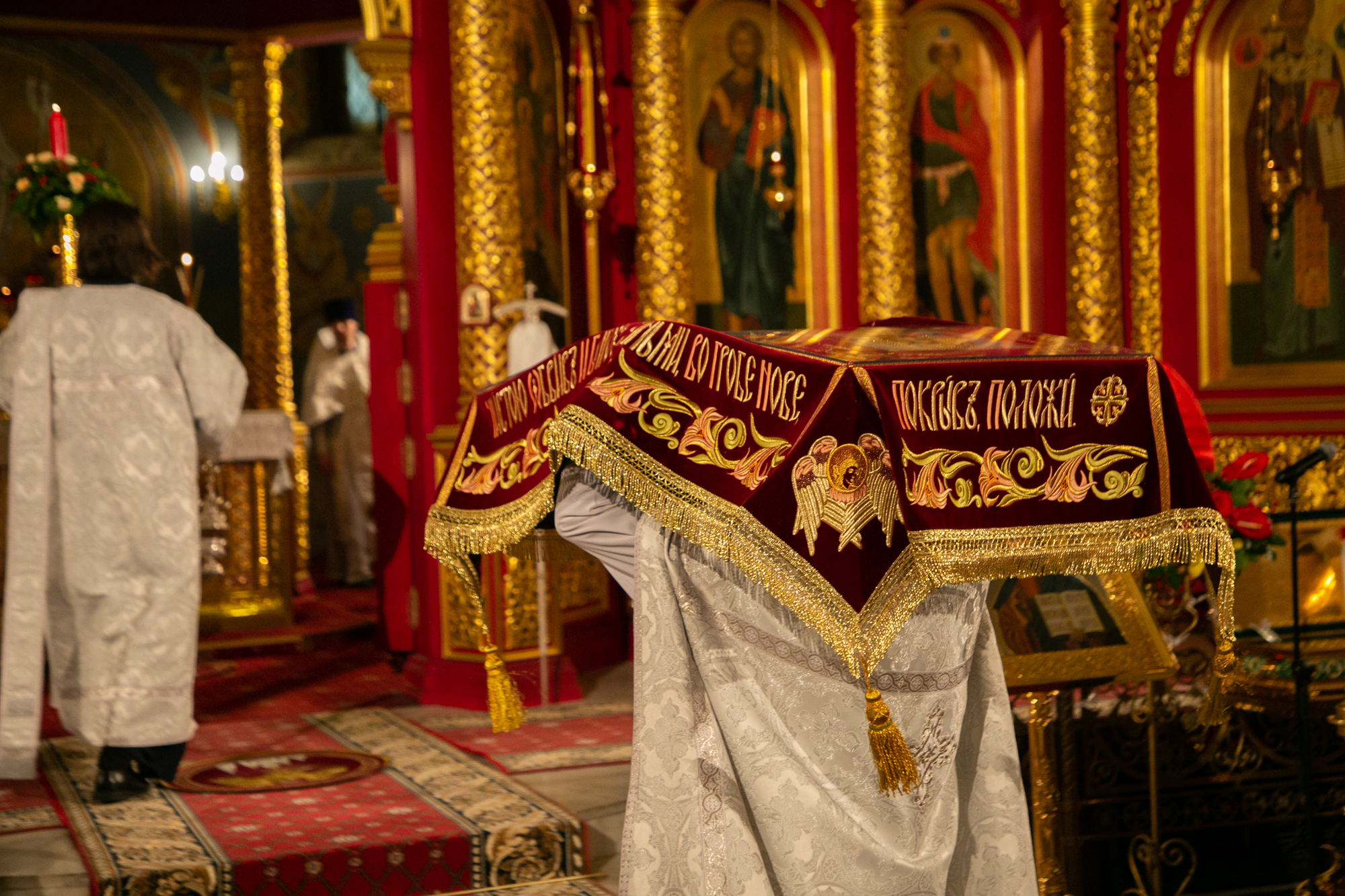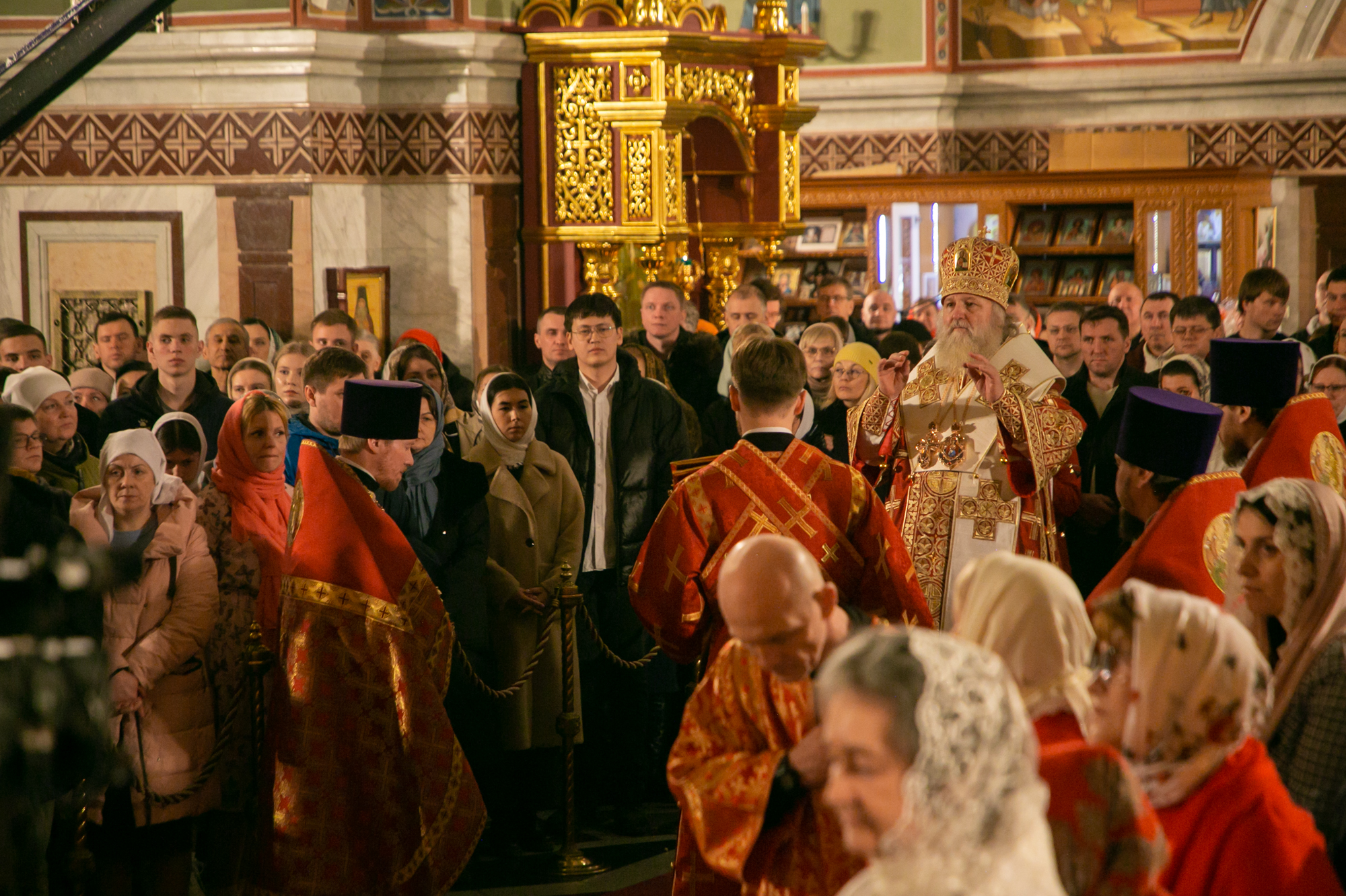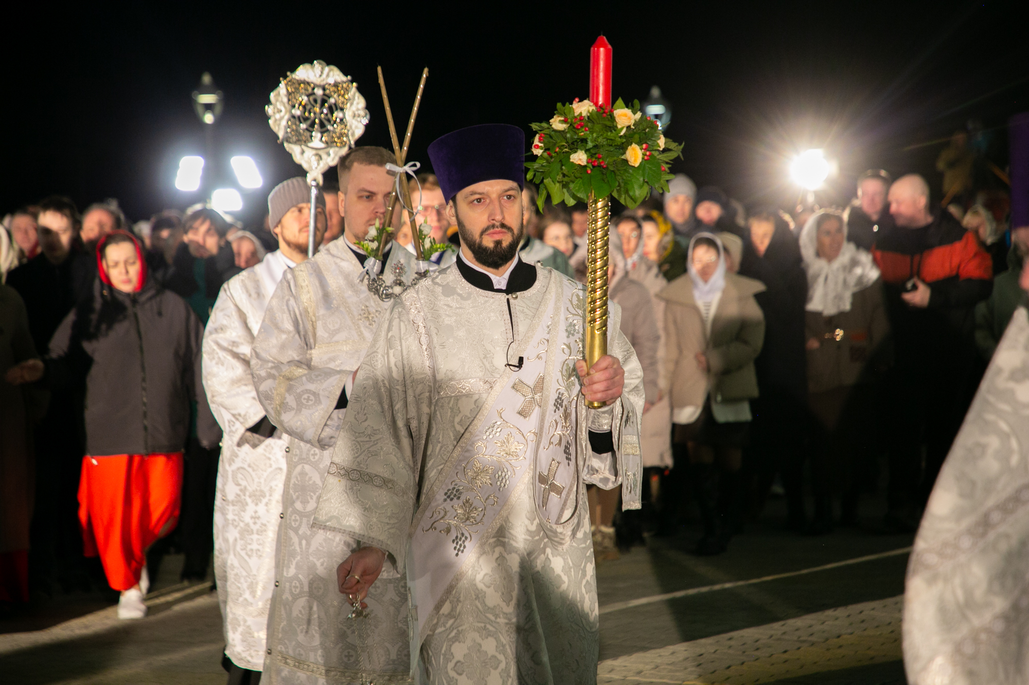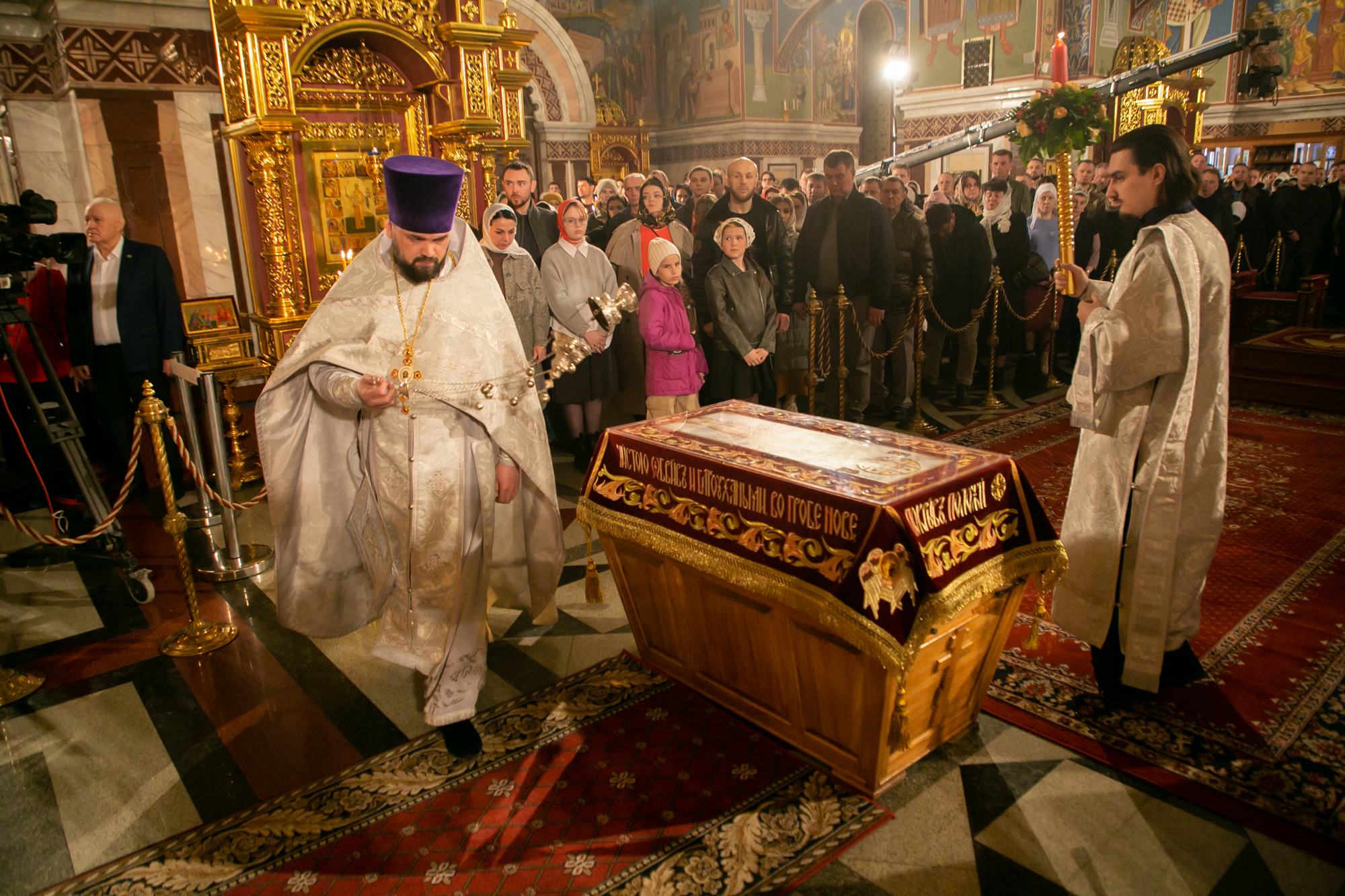 После чтения канона Великой субботы владыка Павел возглавил крестный ход со Святой Плащаницей. После крестного хода Плащаница была положена на середину храма для продолжения поклонения священнослужителей и богомольцев.