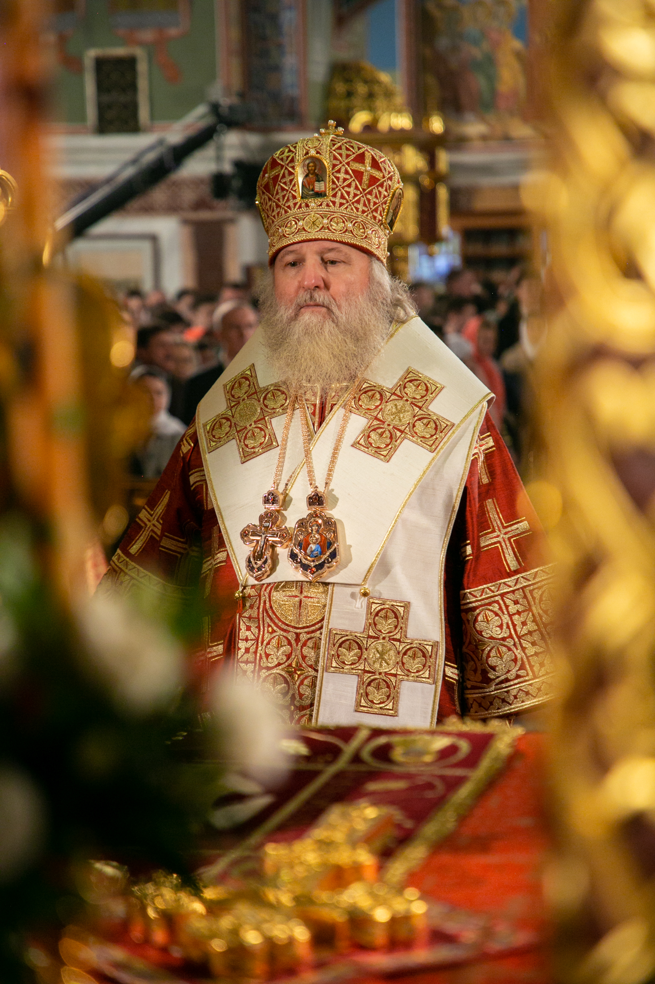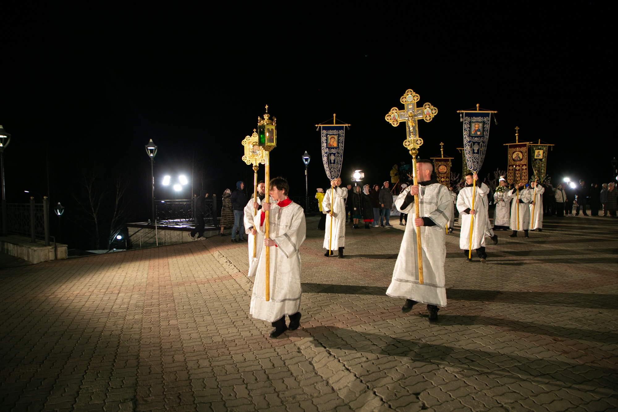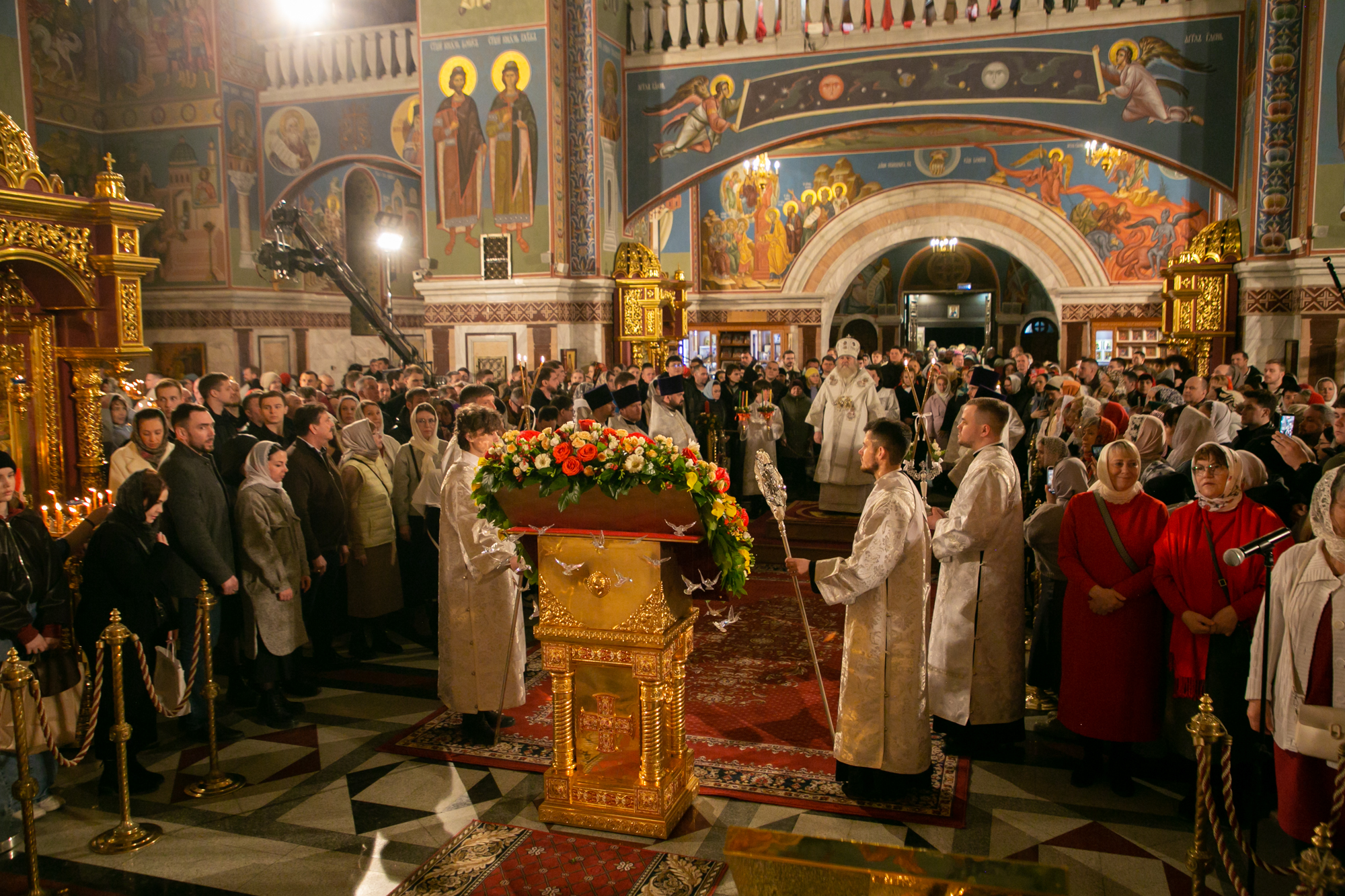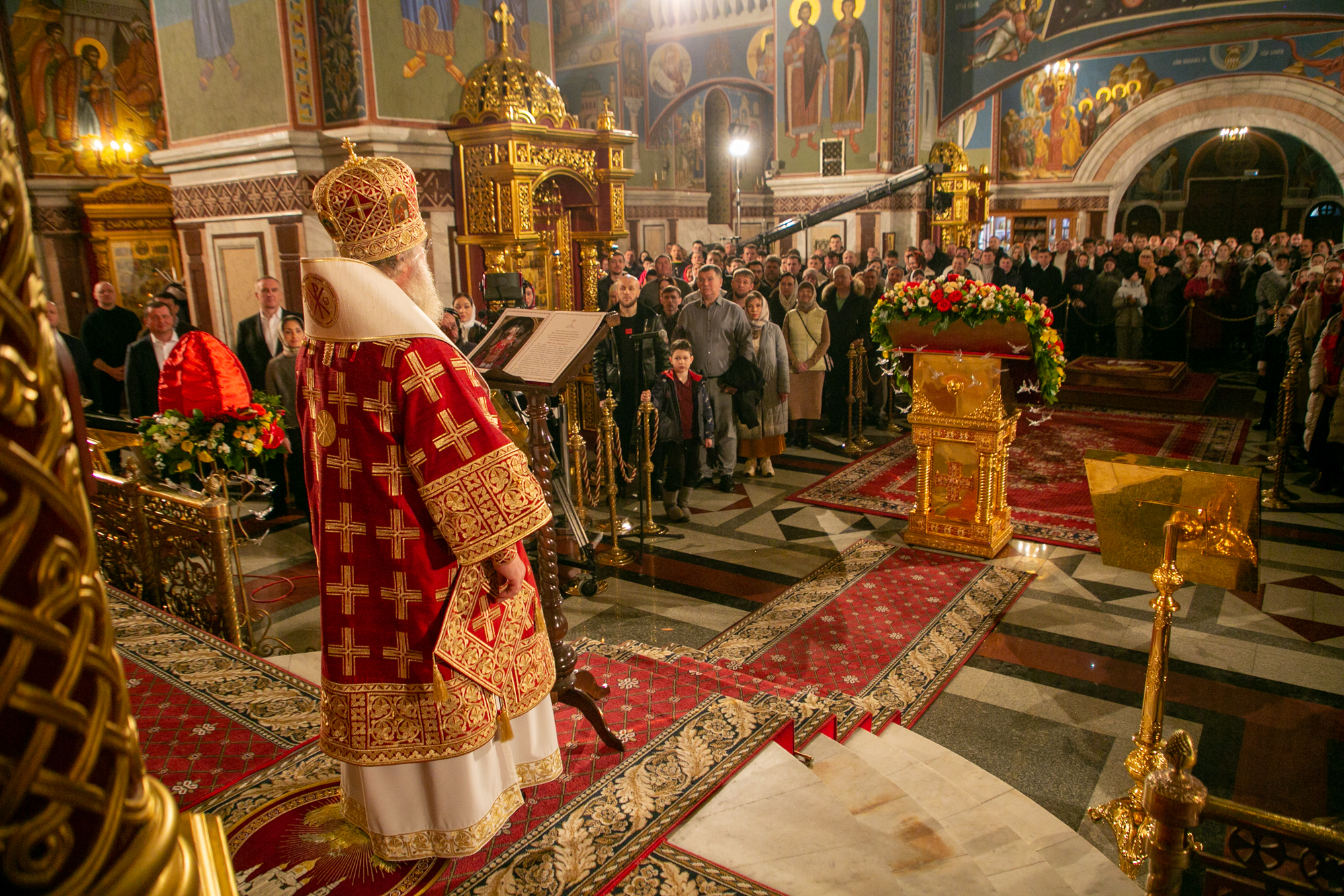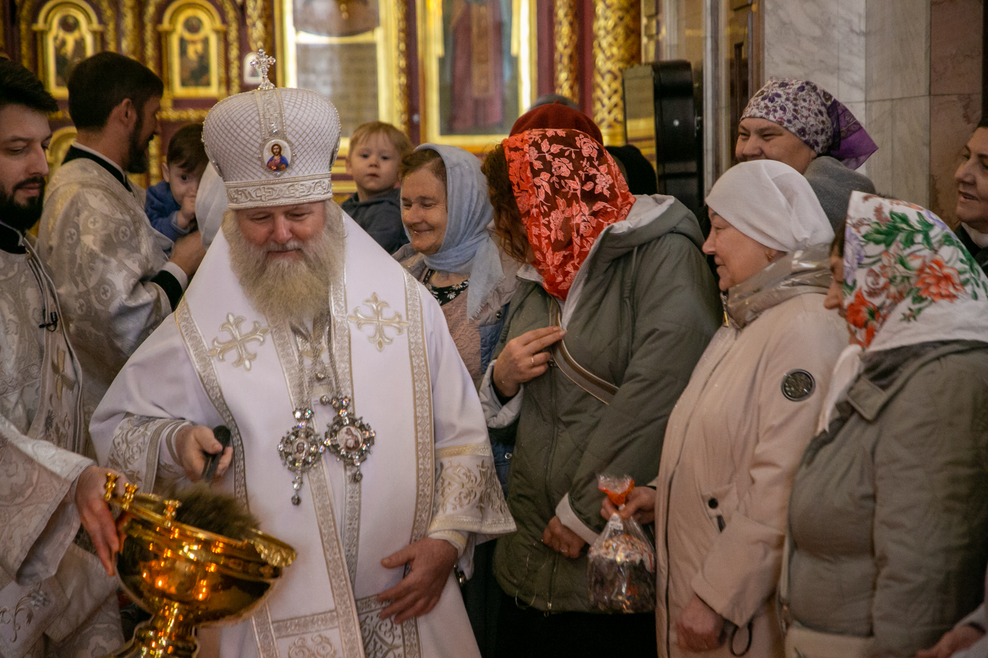 После чтения канона Великой субботы владыка Павел возглавил крестный ход со Святой Плащаницей. После крестного хода Плащаница была положена на середину храма для продолжения поклонения священнослужителей и богомольцев.