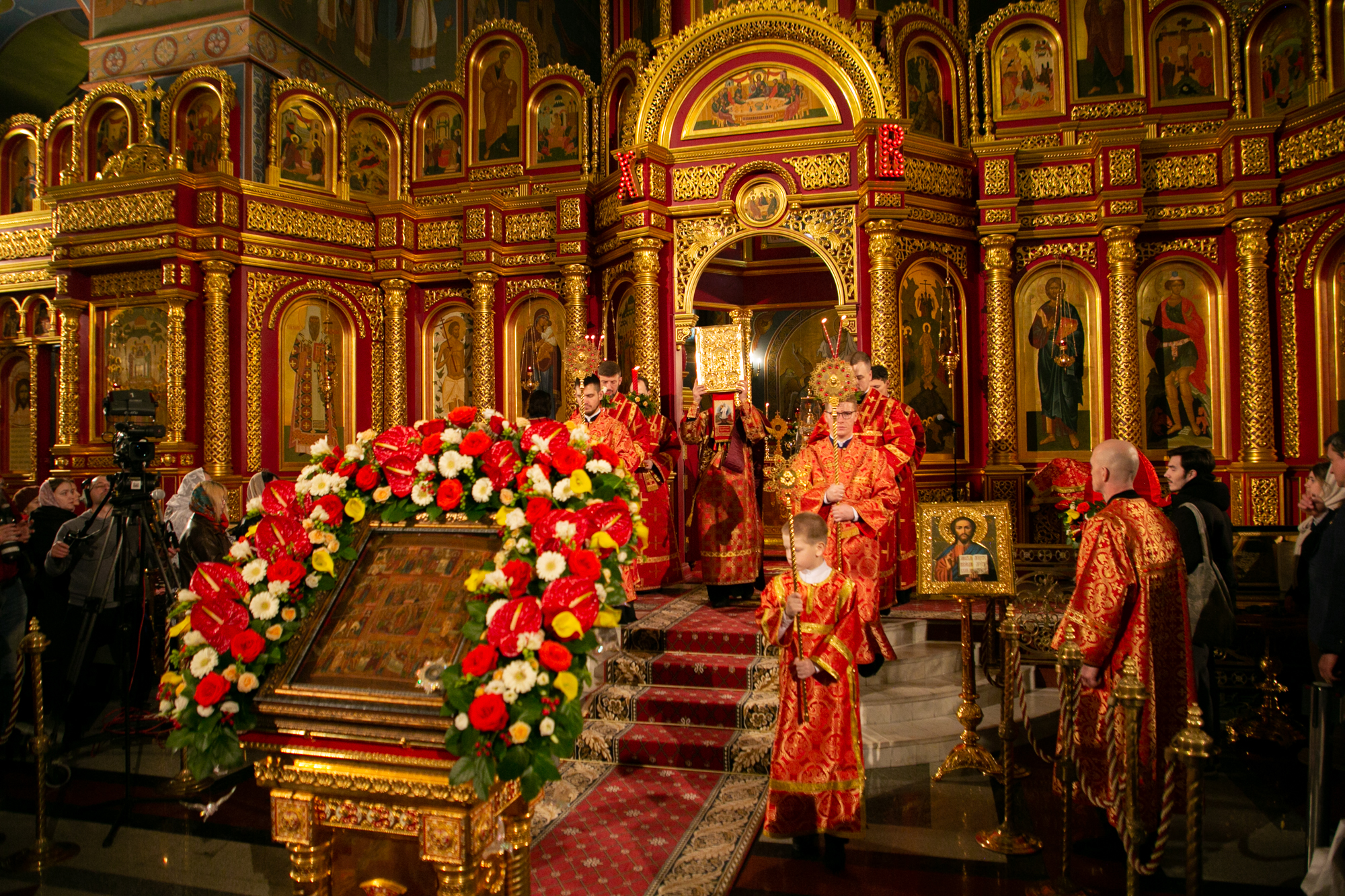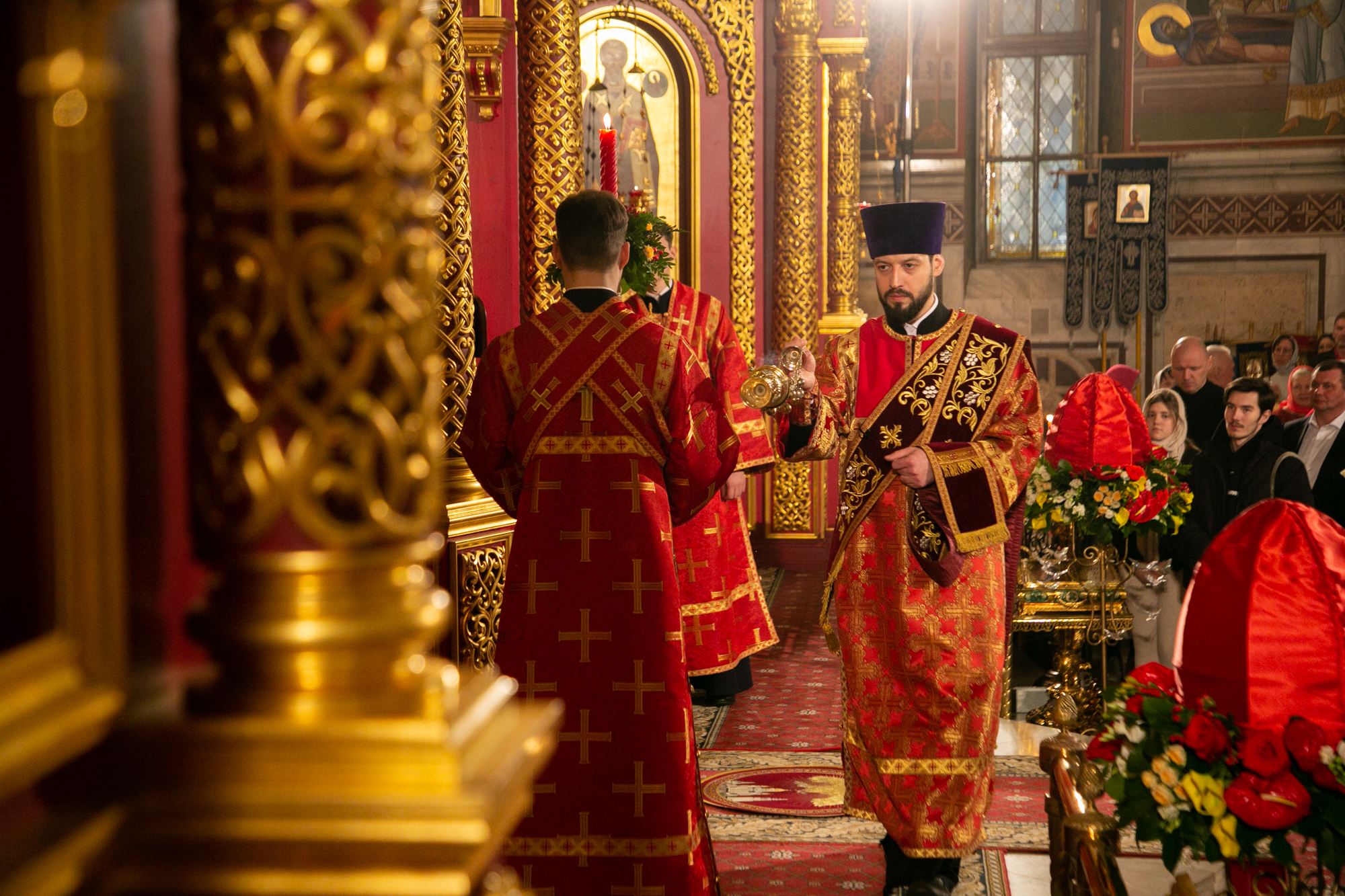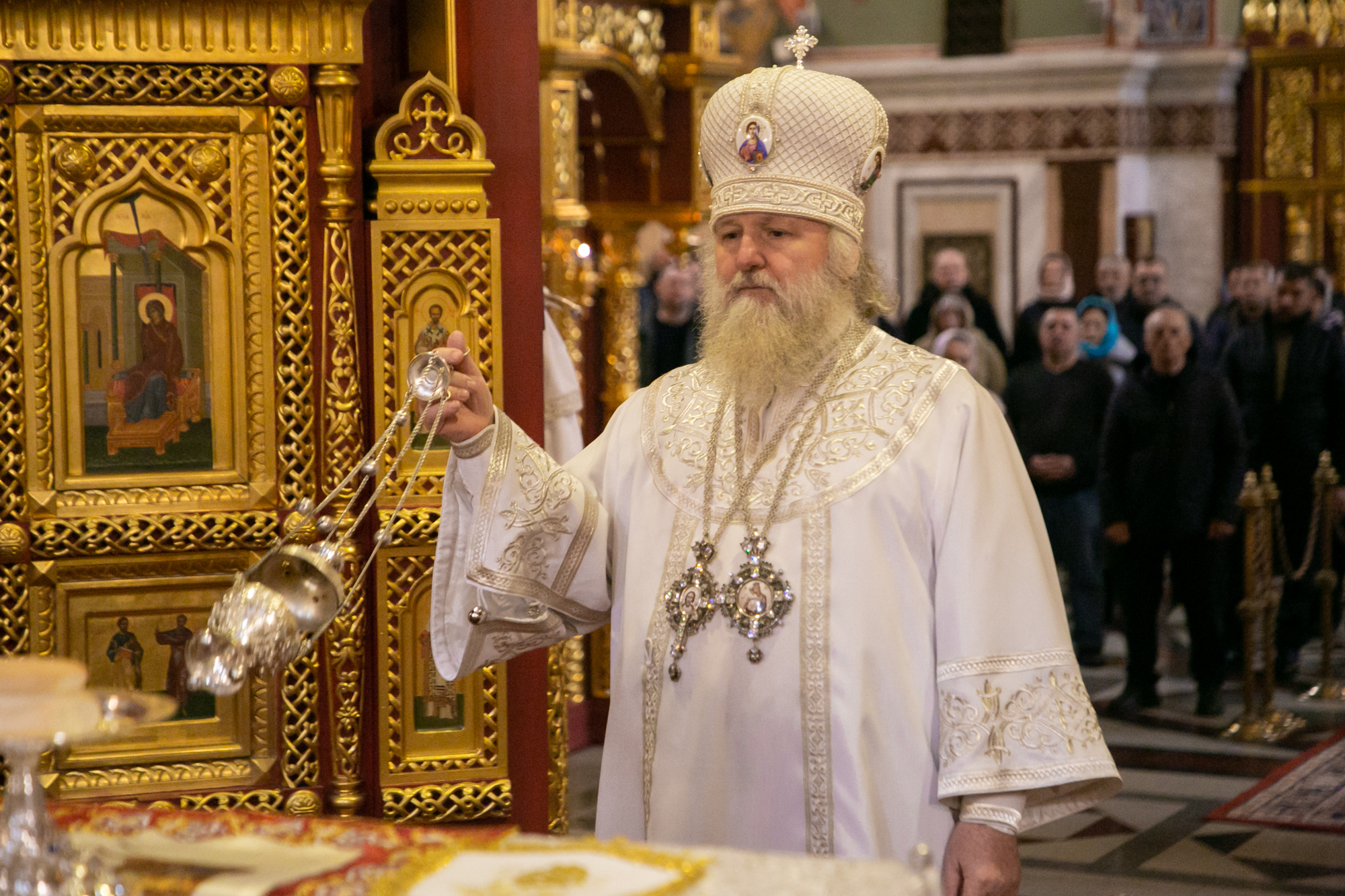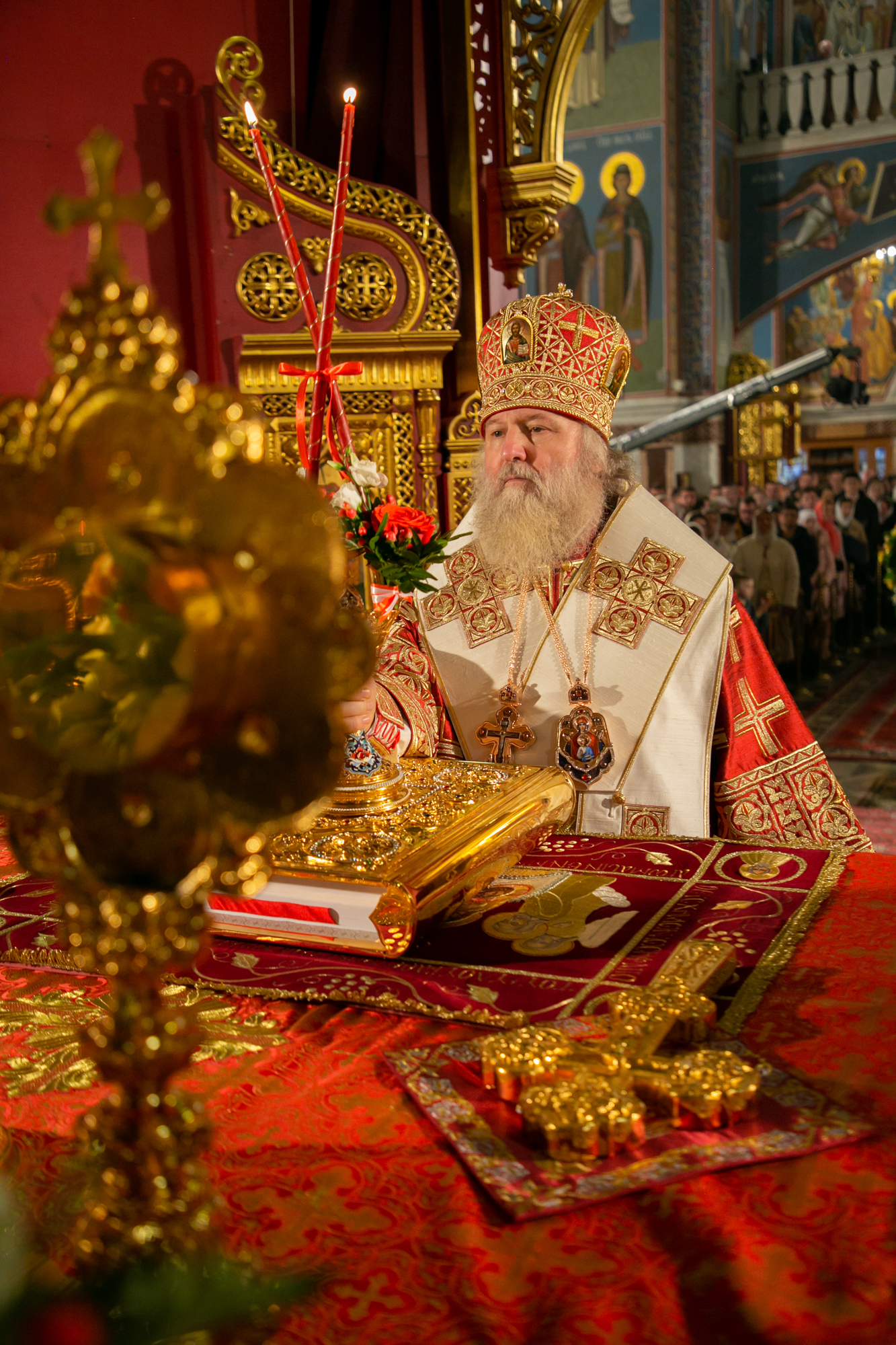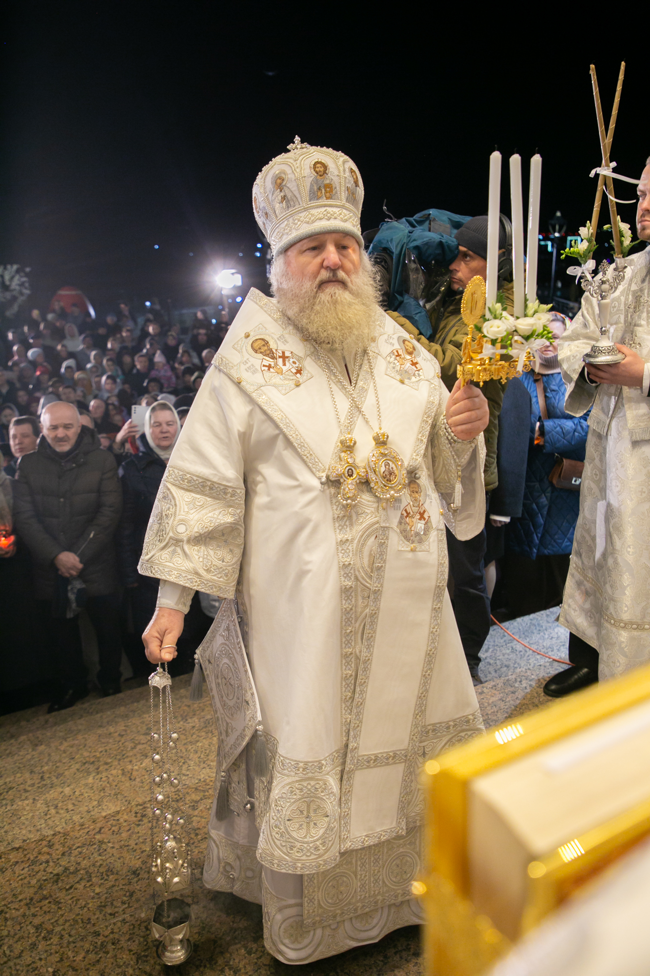 После чтения канона Великой субботы владыка Павел возглавил крестный ход со Святой Плащаницей. После крестного хода Плащаница была положена на середину храма для продолжения поклонения священнослужителей и богомольцев.