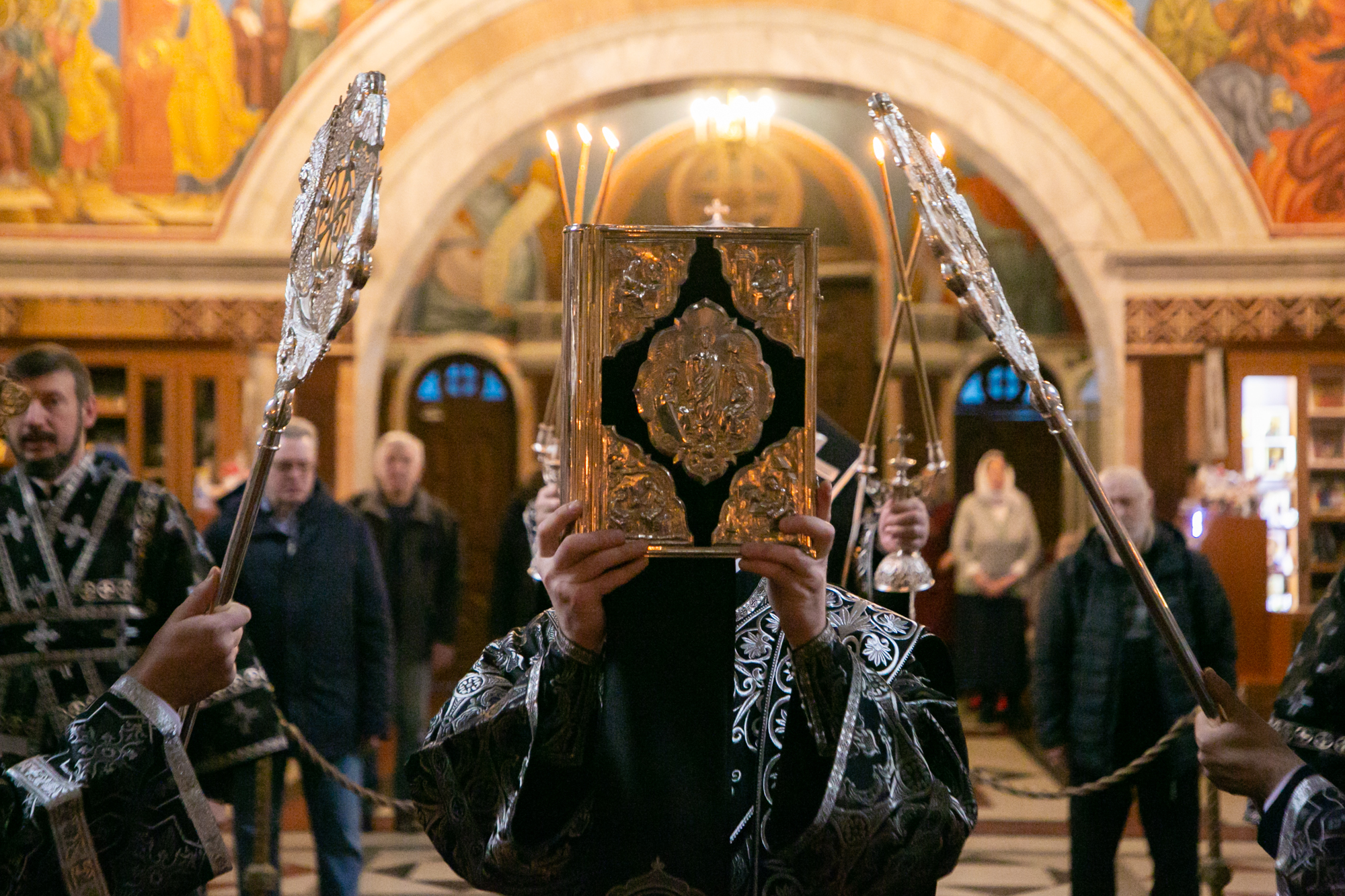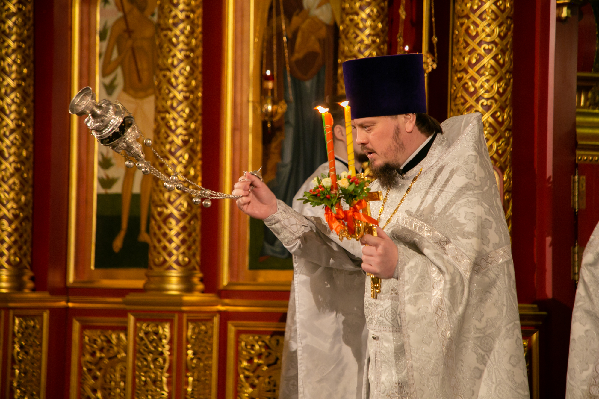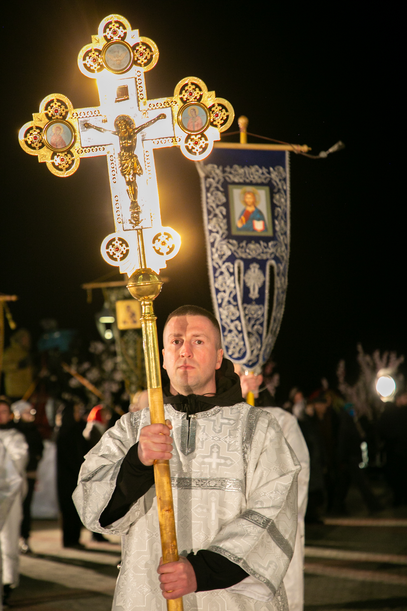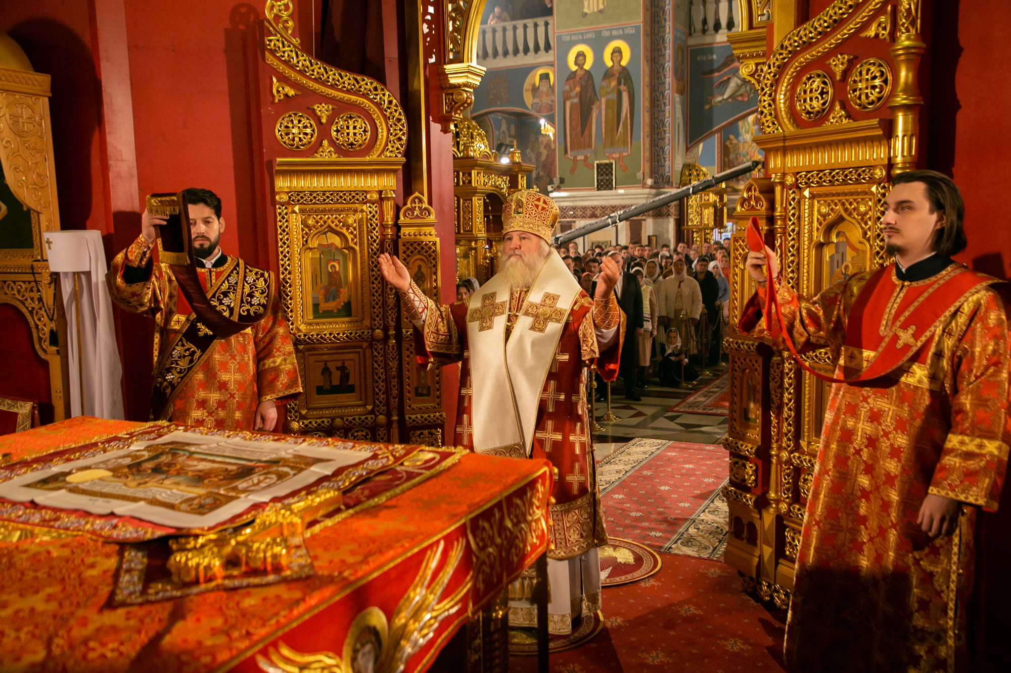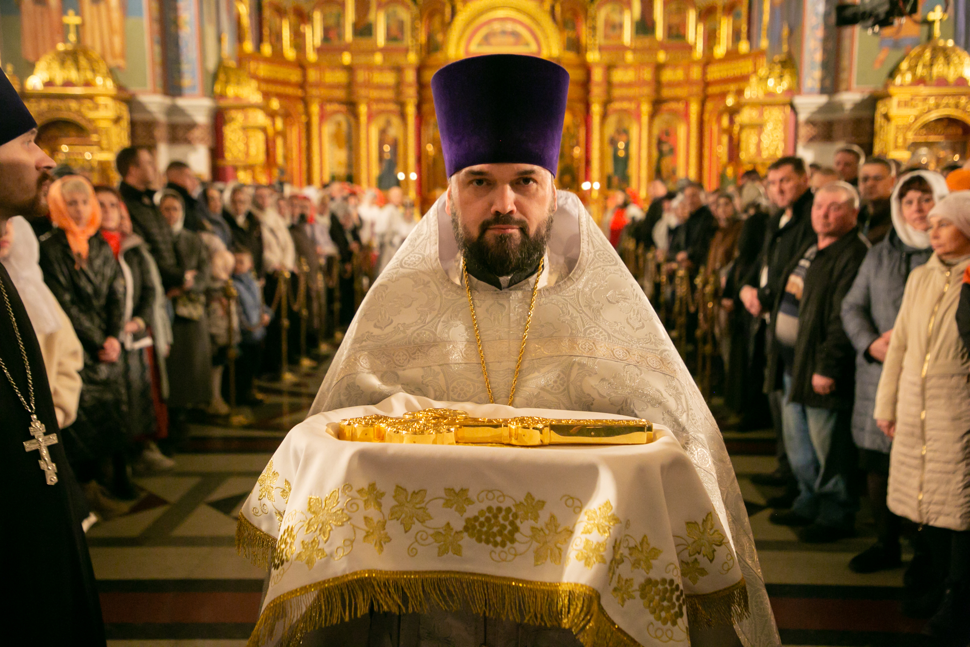 После чтения канона Великой субботы владыка Павел возглавил крестный ход со Святой Плащаницей. После крестного хода Плащаница была положена на середину храма для продолжения поклонения священнослужителей и богомольцев.