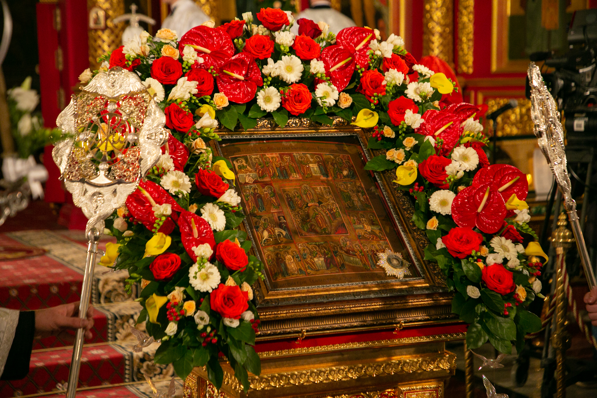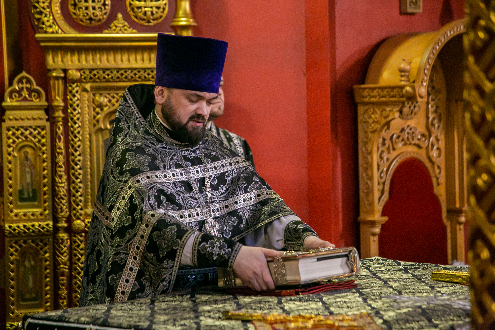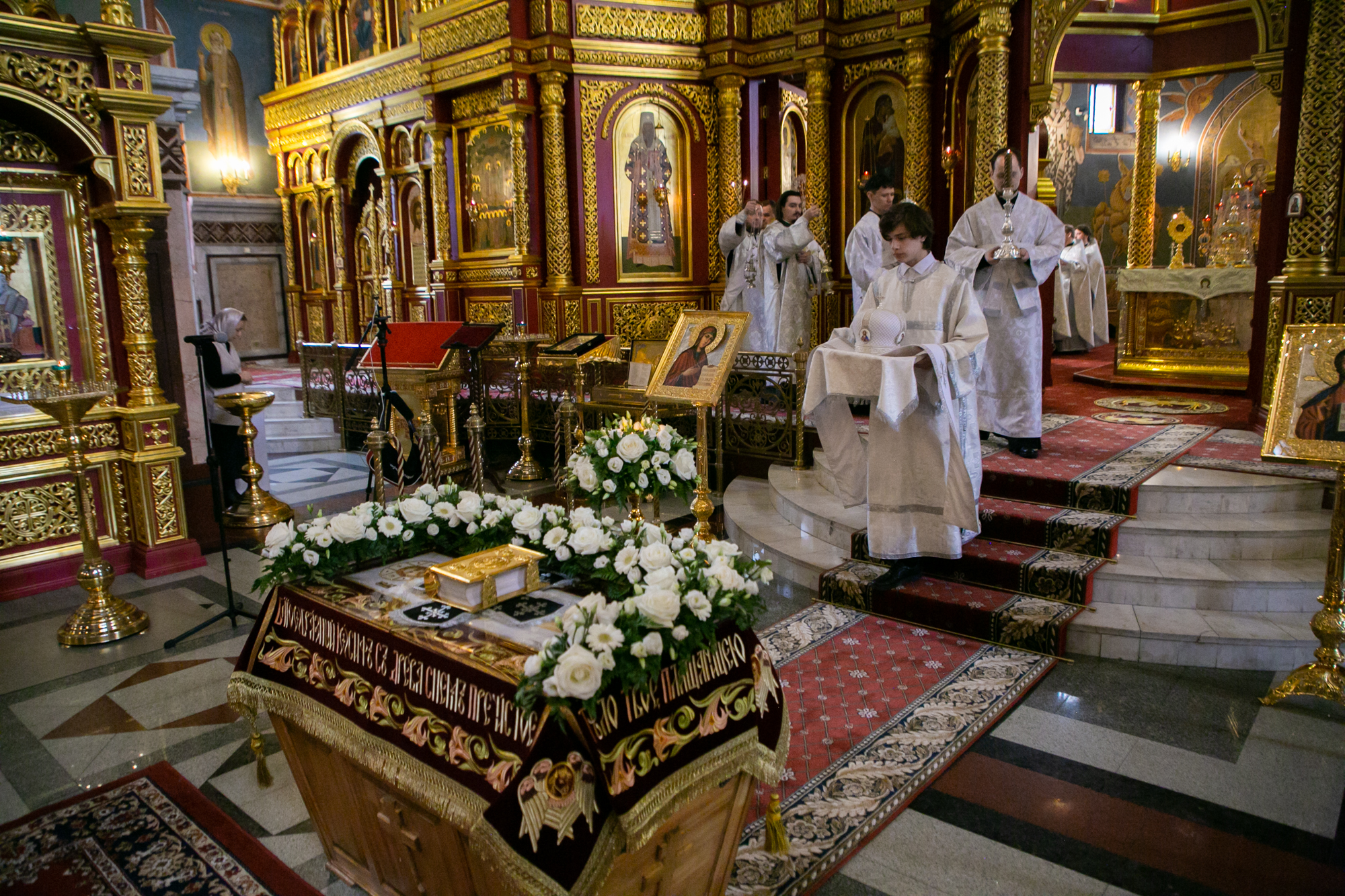 За богослужением пел хор. В храме молились прихожане. На тропарях «Благообразный Иосиф» отец Иоанн Дарий вынес Плащаницу на специально уготованную и украшенную цветами гробницу в середине храма, произнёс проповедь, стоя у Плащаницы, затем был пропет умилительный канон на Плач Богоматери.