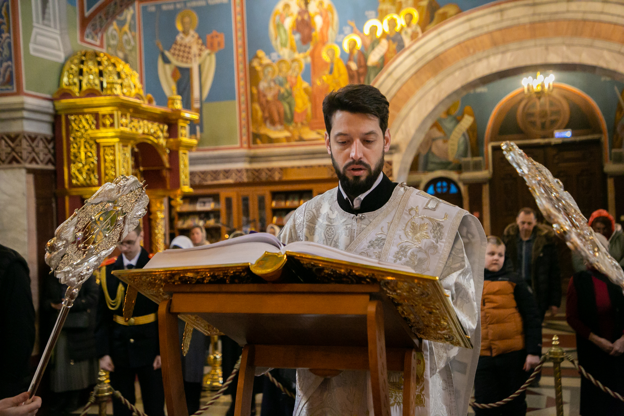 Вечером 9 апреля 2026 года в храме Святого Духа г.Нефтеюганска прошло Вечернее Богослужение, которое провели иерей Георгий Полуянов и иерей Иоанн Рассудов. В этот день совершается чтение 12-ти Евангелий, последование Святых Спасительных Страстей Господа нашего Иисуса Христа. Эти отрывки повествуют о страданиях Спасителя, начиная с последней беседы Его с учениками на Тайной Вечере и кончая погребением Его и приставлением воинской стражи к Его гробу. Согласно указанию современного русского Типикона, христиане зажигают свечи на каждом Евангелии. По окончании службы прихожане храма, по традиции, с трепетом несут зажженные лампадки из храма в свои дома. Выходя из храма эта река огня разделяется на отельные ручейки и капли, которые принесут весть о страданиях Христа во все уголки нашего города.