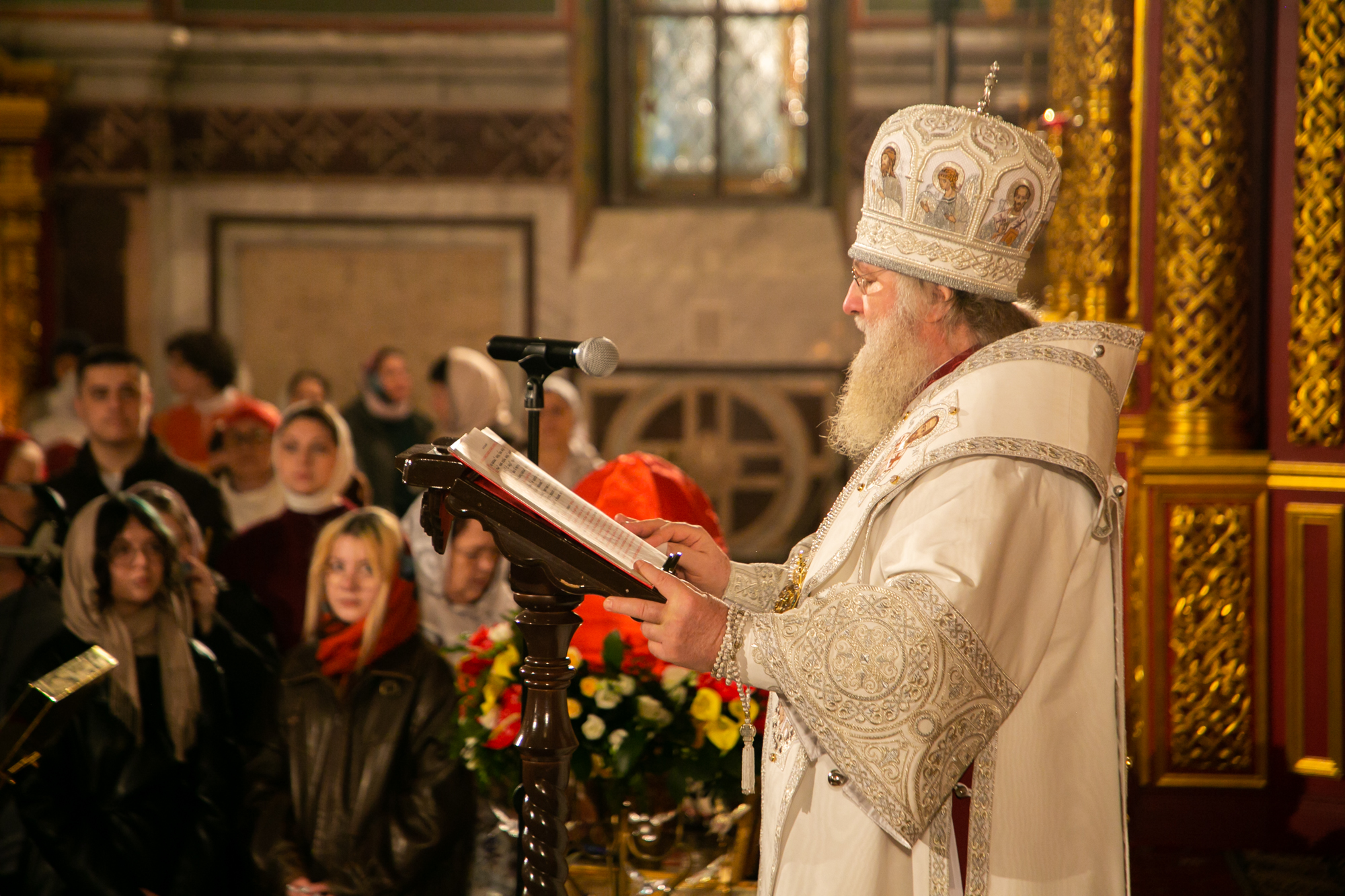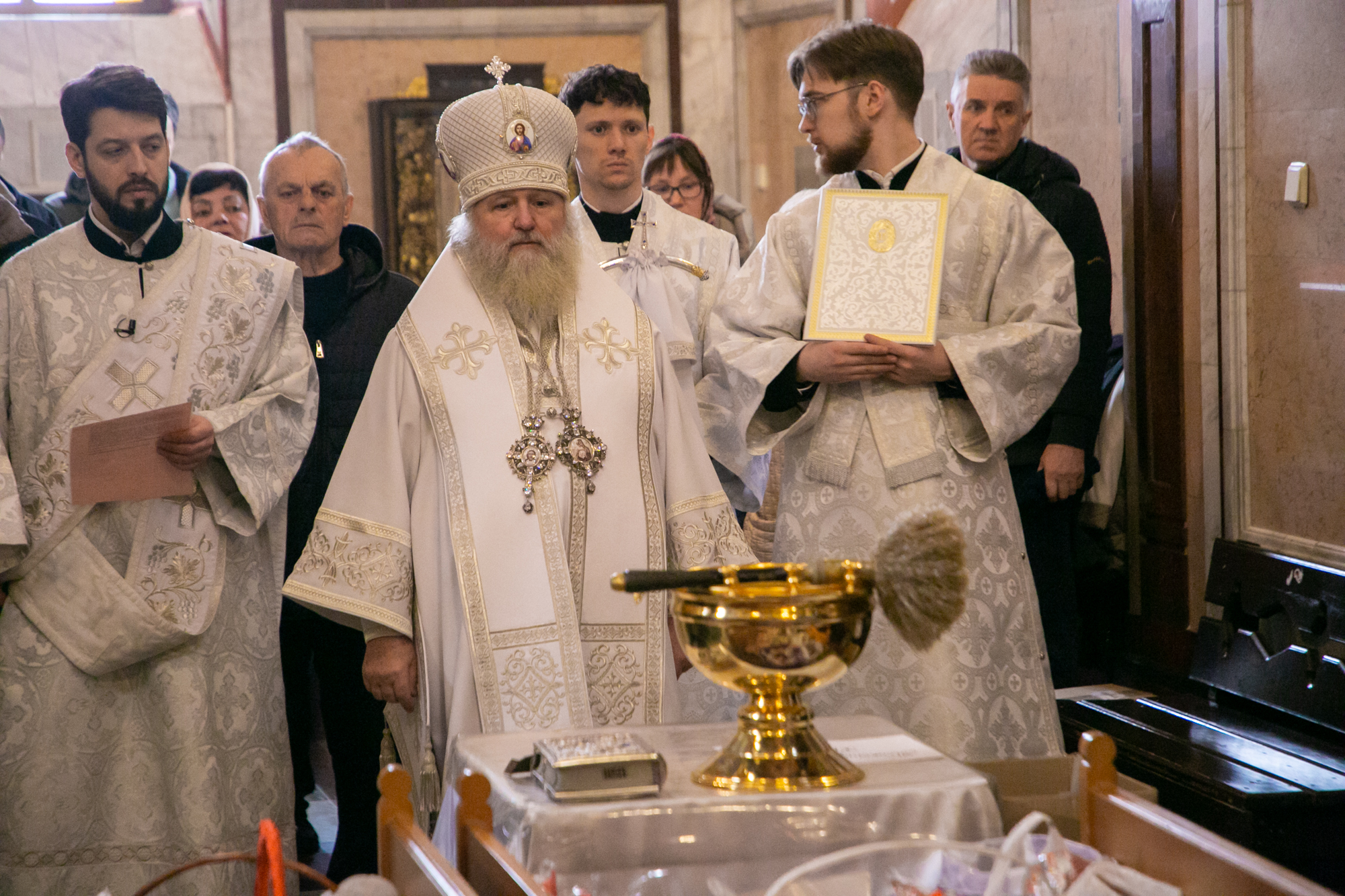 «Дорогие братья и сёстры, позвольте от сердца, от души всех поблагодарить за общие молитвы и поздравить с Преблагословенной Субботой! Совсем мы подошли к празднику Пасхи Господней! И уже и облачение сменилось на белое, видимый знак уже говорит об этом, уже даже песнопения и сама служба — подготовительная, к самому главному празднику.