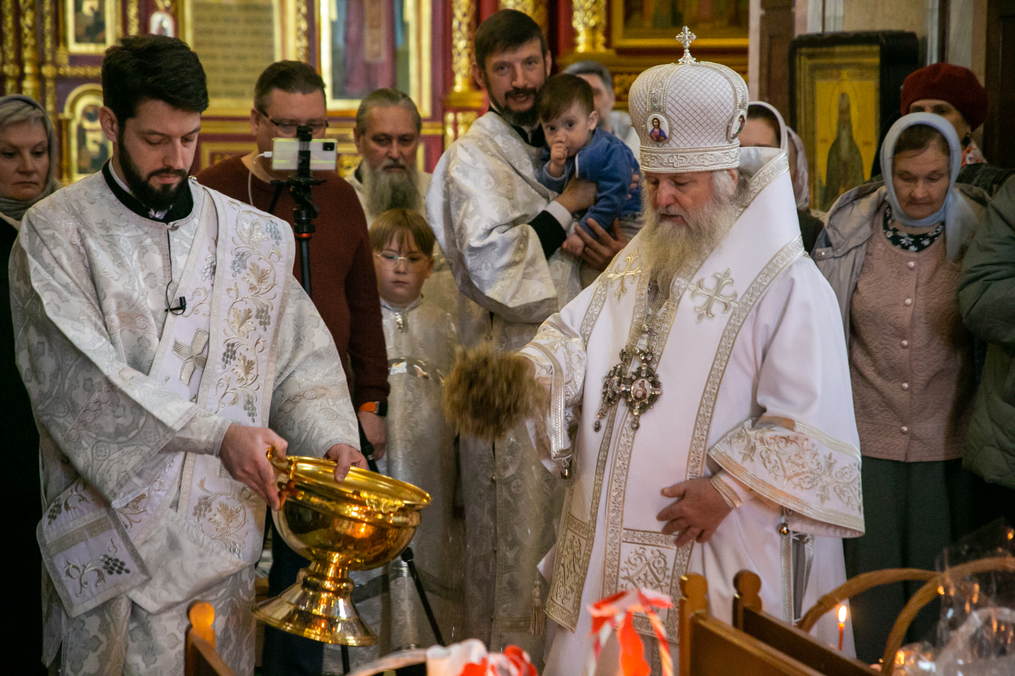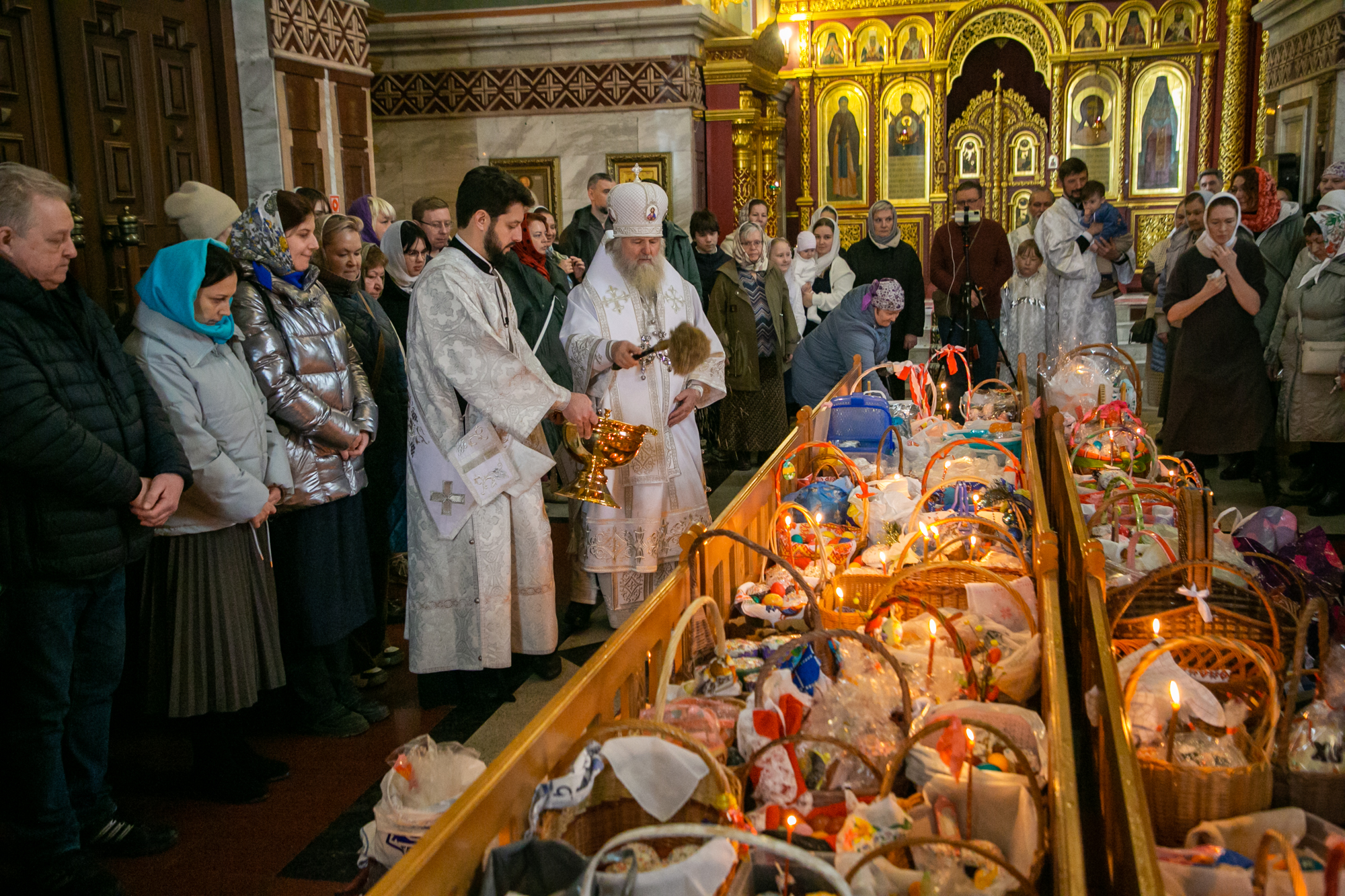 По традиции по завершении богослужения владыка Павел освятил пасхальные куличи.