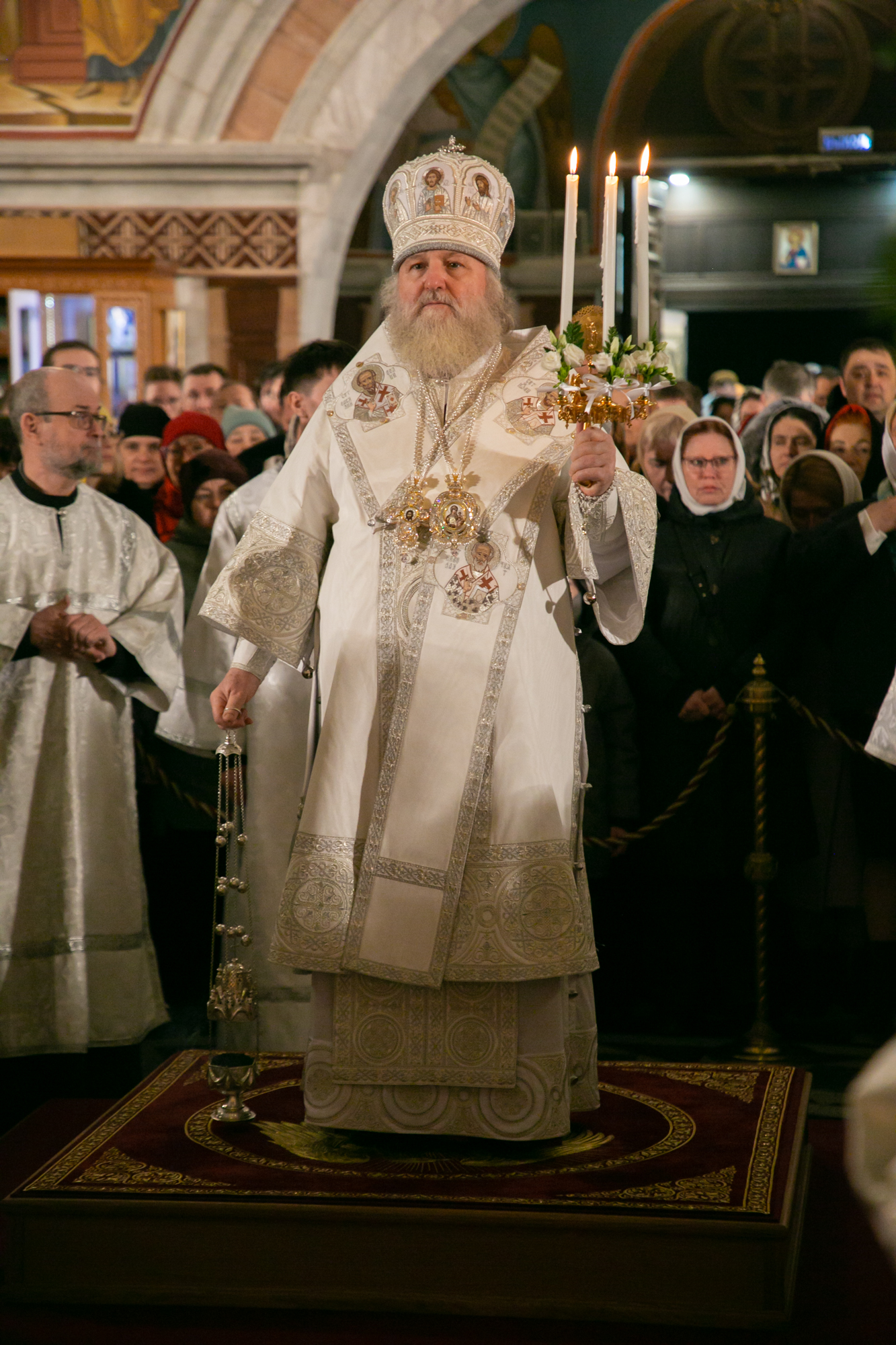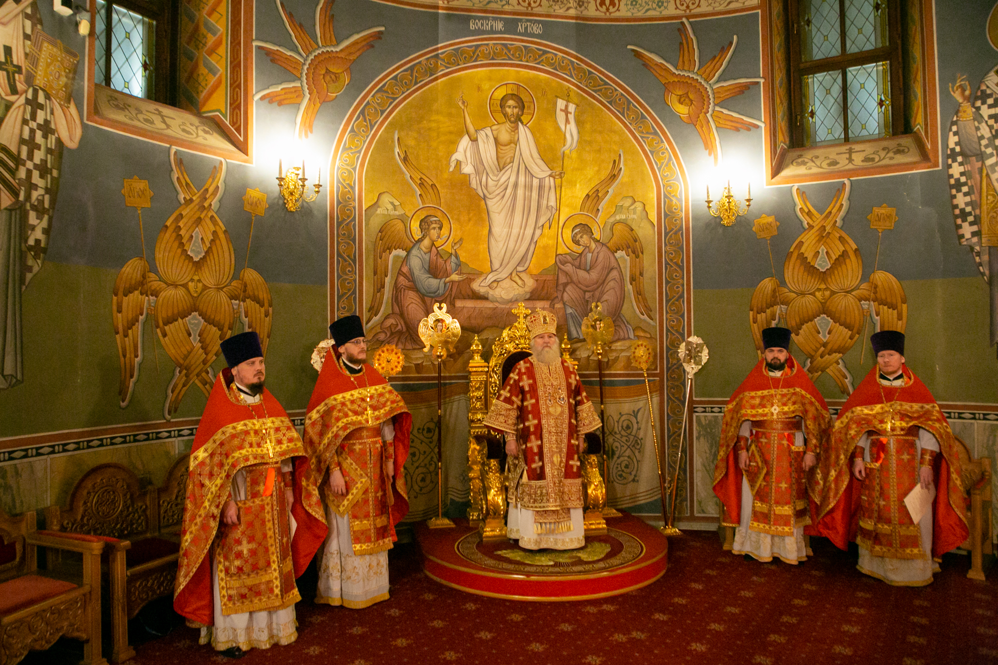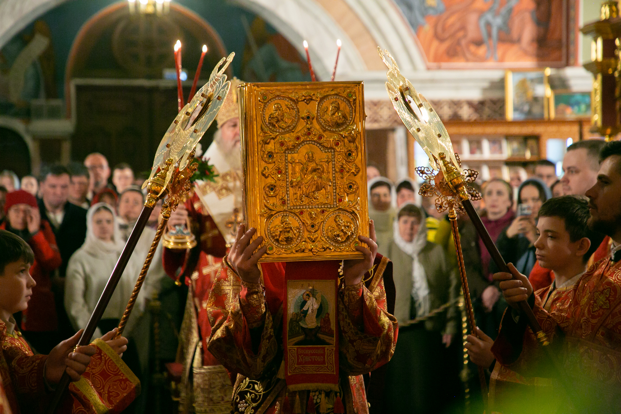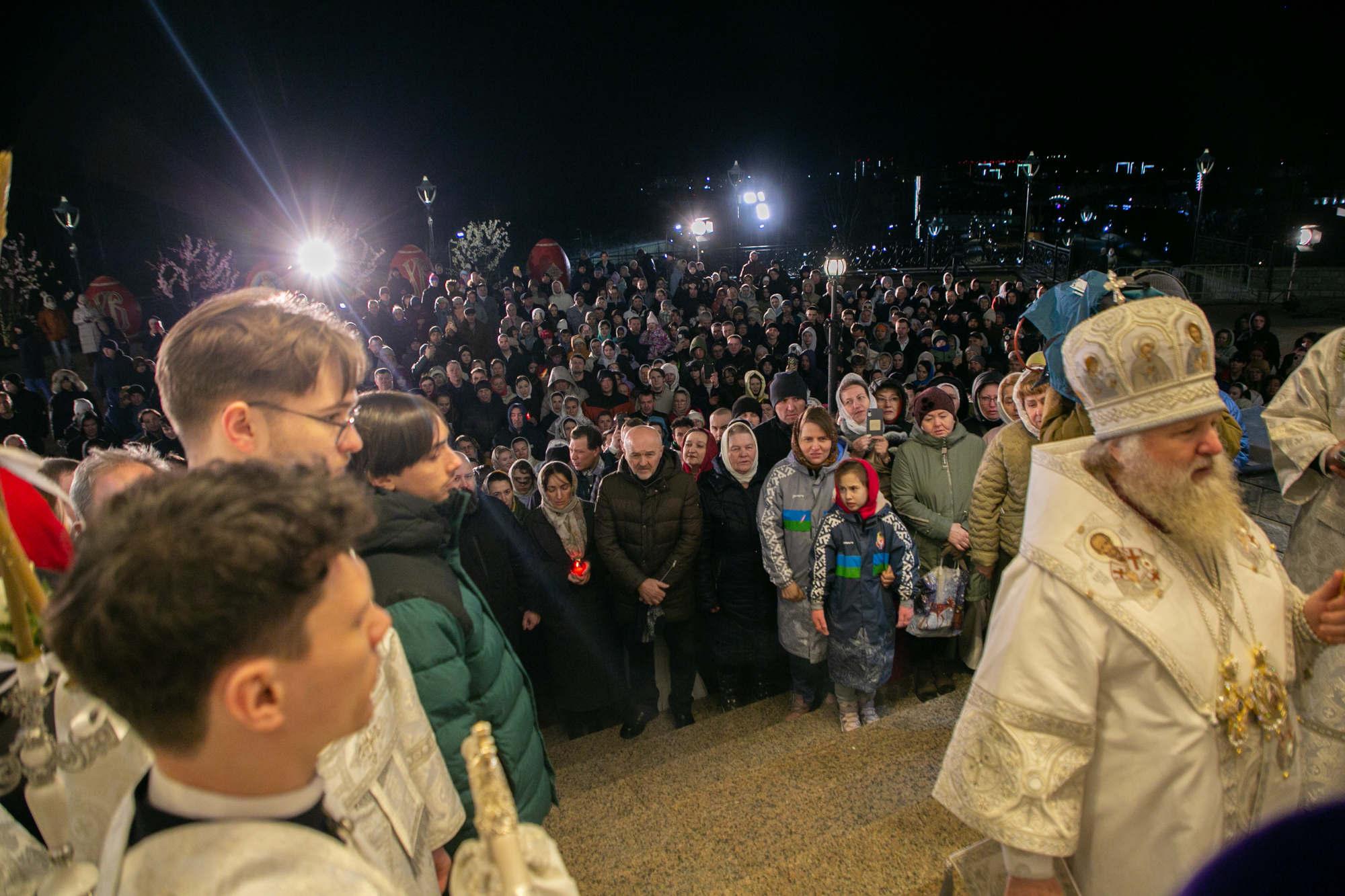 Под пение стихиры «Воскресение Твое, Христе Спасе» был совершен крестный ход вокруг Воскресенского кафедрального собора. По традиции за Пасхальной заутреней владыка Павел, прочитал Слово огласительное святителя Иоанна Златоуста на Святую Пасху. Пасхальное Евангелие (Ин. 1:1-17) читалось на 5 языках. После заамвонной молитвы архипастырь освятил артос.