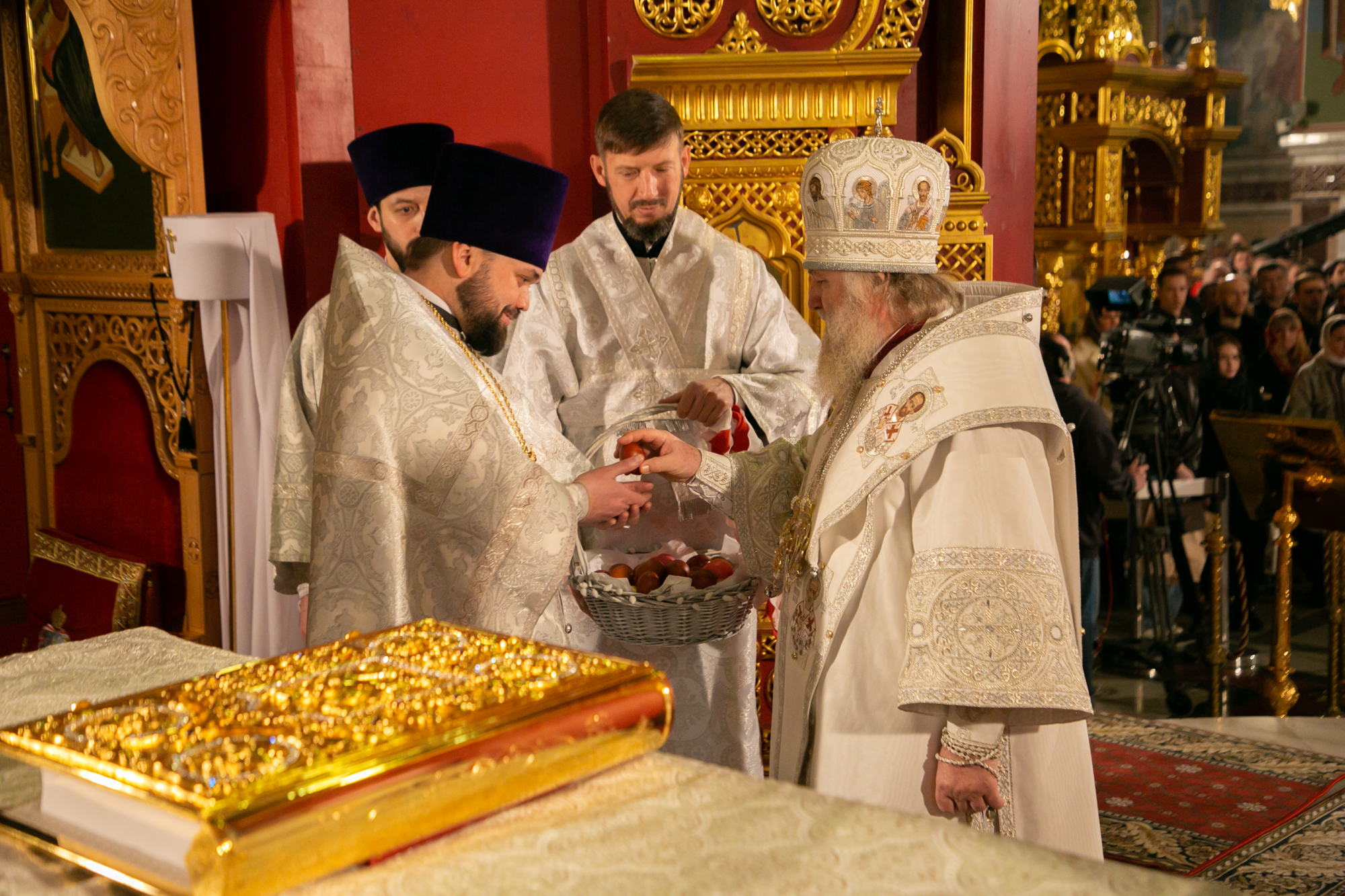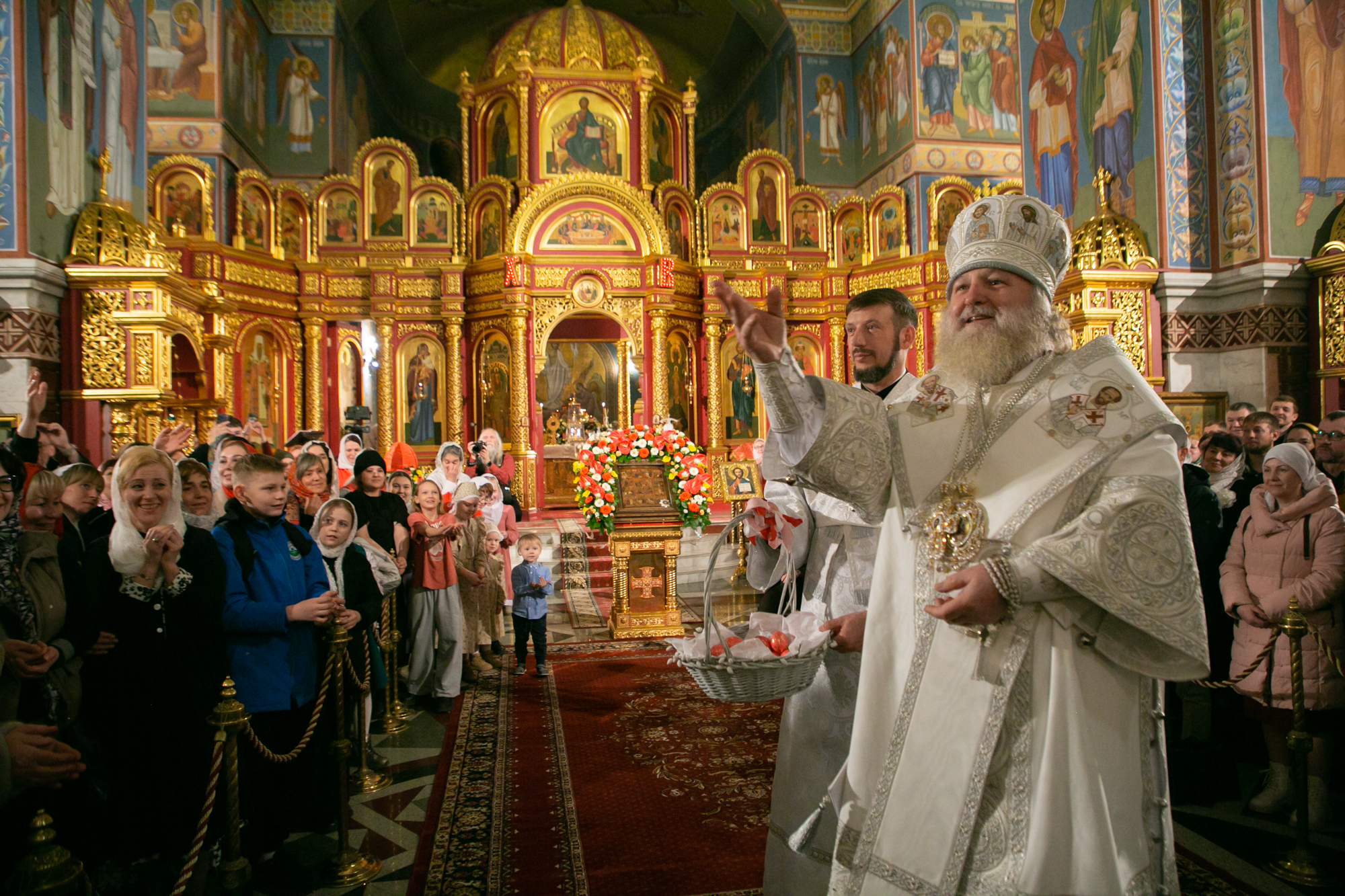 В день Святой Пасхи и всей Светлой седмицы мы призваны к тому, чтобы как можно чаще посещать храм и причащаться Христовых Тайн, чтобы Воскресший Господь вселился в наши сердца, наполнил их благодатью, радостью и любовью ко всем людям. Причащаясь Святых Христовых Тайн, мы соединяемся со Христом не только духовно, но и становимся сотелесными Ему и должны как можно дольше хранить эту Божественную радость. И не просто хранить, но и делиться этой радостью с теми, кто сейчас особенно нуждается в нашей помощи, в реальных делах милосердия и живом проявлении любви.