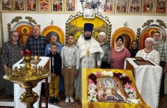 19 августа 2024 года настоятель храма в честь иконы Божией Матери «Знамение» г. Ханты-Мансийска иерей Леонид Бартков посетил в миссионерской поездке поселок Выкатной Ханты-Мансийского района, где в праздник Преображения Господня совершил Божественную Литургию в храме «Всех скорбящих Радость».