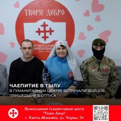 О солдатских буднях и нуждах передовой беседовали за чаем с бойцами, пришедшими в отпуск, наши сестры милосердия. Артём и Александр, старые знакомцы, связывающие для нас территорию мира и территорию войны, вернулись отдохнуть от боев и навестили православный гуманитарный центр «Твори Добро».