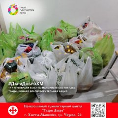 17 и 18 февраля в Ханты-Мансийске прошла традиционная благотворительная акция #ДариДоброХМ. Сбор осуществлялся в субботу и в воскресенье двумя разными командами волонтеров. 17 февраля работали студенты из волонтёрского сообщества «Колобок» под руководством доцента Высшей школы гуманитарных наук ЮГУ Юлианы Крисальной. 18 февраля эстафету подхватили сестры милосердия Ханты-Мансийска.