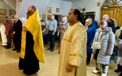 13 февраля в день памяти св. бессребреников Кира и Иоанна в д. Согом Ханты-Мансийского района прот. Сергий Кравцов, благочинный Ханты-Мансийского благочиния, настоятель храма святых благоверных князей Петра и Февронии,