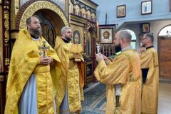 22 июня 2025 года, в Неделю 2-ю по Пятидесятнице, Всех святых, в земле Русской просиявших, иерей Андрей Зотов в сослужении иерея Тарасия Борозенца и диакона Алексия Полянцева совершил Божественную Литургию.