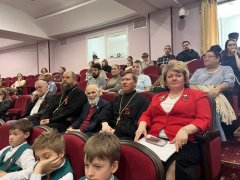 25 мая 2025 года в Центре образования №7 им. Дунина-Горкавича А.А. состоялся отчетный концерт воскресной школы Знаменского храма, в котором приняли участие воспитанники воскресной школы, вокальный ансамбль «Гармония», а также прихожане и певчие православных приходов города. Приветственное слово прозвучало от настоятеля храма в честь иконы Божией Матери «Знамение» иерея Леонида Барткова.