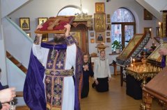 В канун Недели Крестопоклонной в Знаменском храме священник совершил всенощное бдение с чином выноса Креста