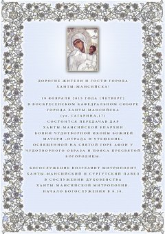 19 февраля передача в дар Ханты-Мансийской митрополии иконы Божией Матери "Отрада и утешение"