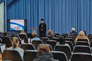 Затем слово предоставили отцу Тарасию, который обратил внимание слушателей на важность знания основ православной традиции не только для верующих, но и для неверующих людей, а также для представителей других традиционных религий. Это позволяет понять духовное содержание отечественной истории, сообщает человеку совершенные нравственные ценности и идеалы, даёт возможность жить полноценной и богатой личной, семейной и общественной жизнью, преисполненной верой, надеждой и любовью.