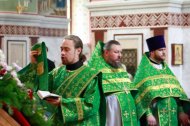 18 июля, в день обретения честных мощей прп. Сергия, игумена Радонежского, в Воскресенском Кафедральном Соборном Храме Воскресения Христова за Божественной литургией молились прихожание и духовенство города Ханты-Мансийска: ключарь Воскресенского Собора,заведующий епархиальной канцелярией иерей Сергий Нагорный, настоятель Знаменского храма Ханты-Мансийска, председатель отдела социального служения и благотворительности Ханты-Мансийской епархии иерей Леонид Бартков, председатель отдела по взаимодействию с казачеством и силовыми структурами иерей Андрей Зотов, заведующий архитектурно-строительным отделом Ханты-Мансийской епархии иерей Константин Мемячкин, диаконы Игорь Логвин и Георгий Лешков.