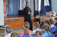 Затем отец Владимир направился в общеобразовательную школу п.Луговской и провел беседы с двумя группами учащихся: с 1 по 5 класс и с 6 по 11 класс.