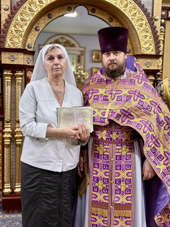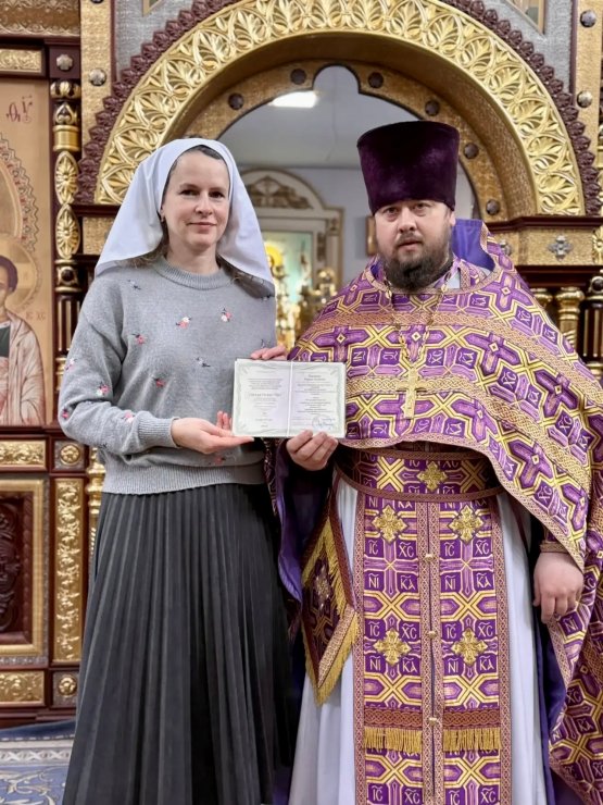 21 марта 2026 года после Божественной литургии в Знаменском храме состоялось значимое событие для прихода: настоятель храма, председатель Отдела по социальному служению и благотворительности Ханты-Мансийской епархии иерей Леонид Бартков совершил чин посвящения в кандидаты сестричества милосердия. Елена Ивановна Ситникова и Юлия Александровна Пушилова приняли на себя добровольное послушание - с христианской любовью и вниманием служить ближним, находящимся в болезни и скорбях.
